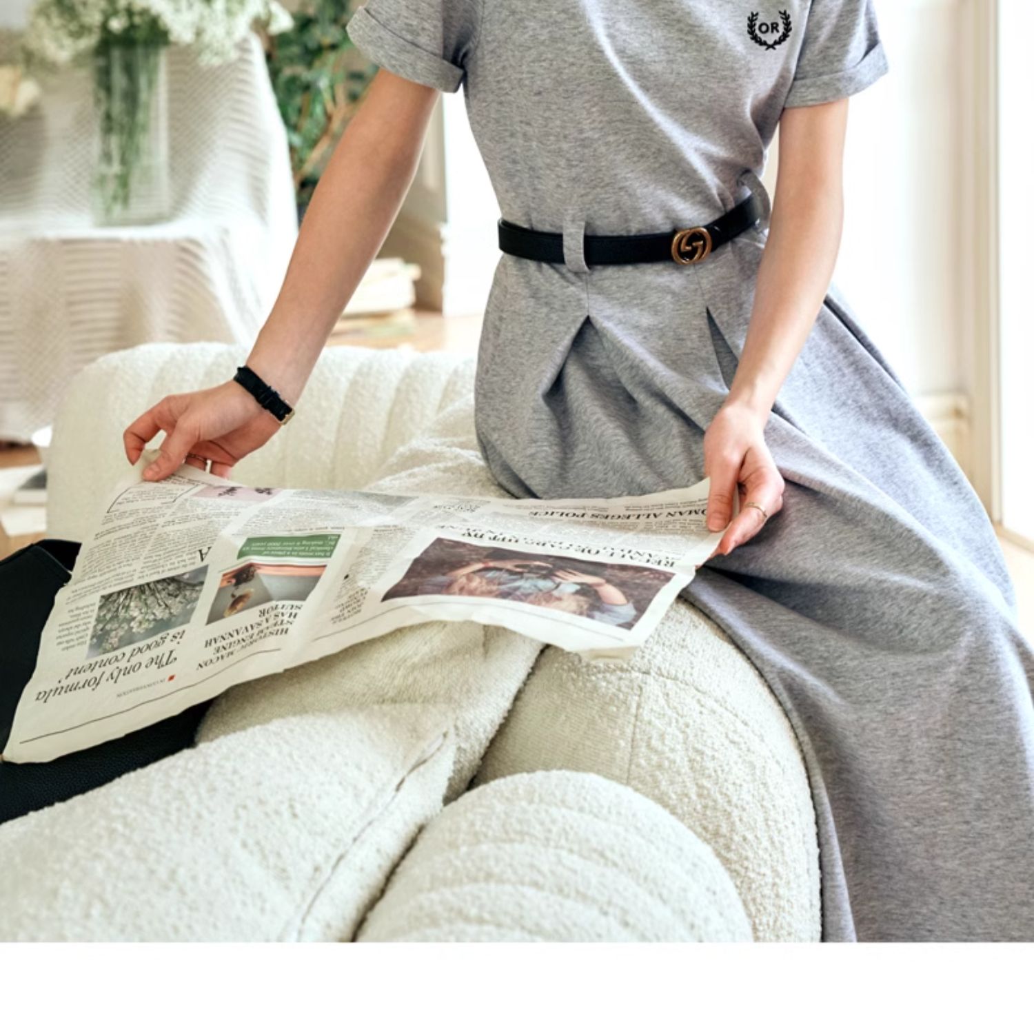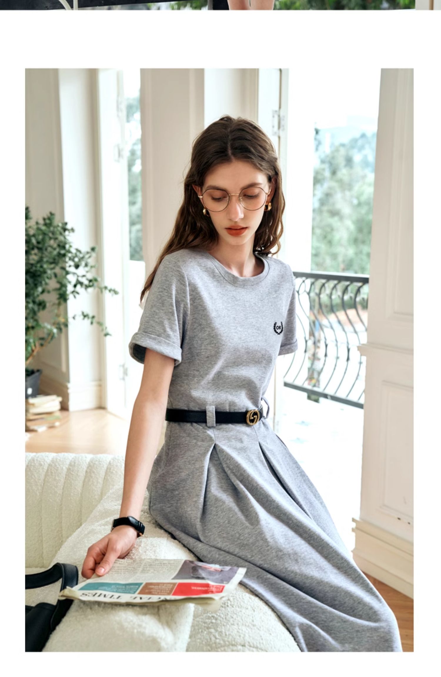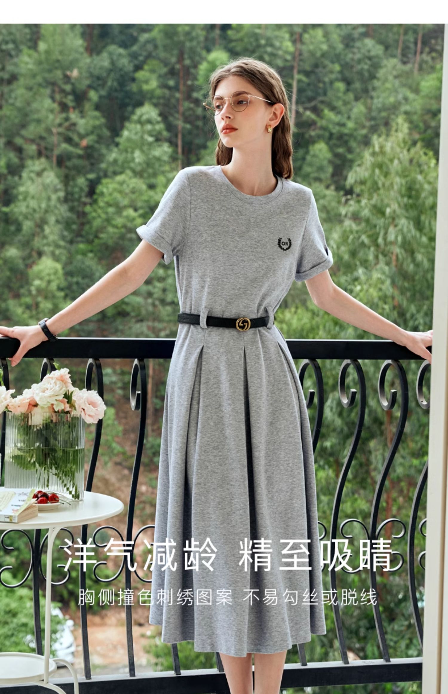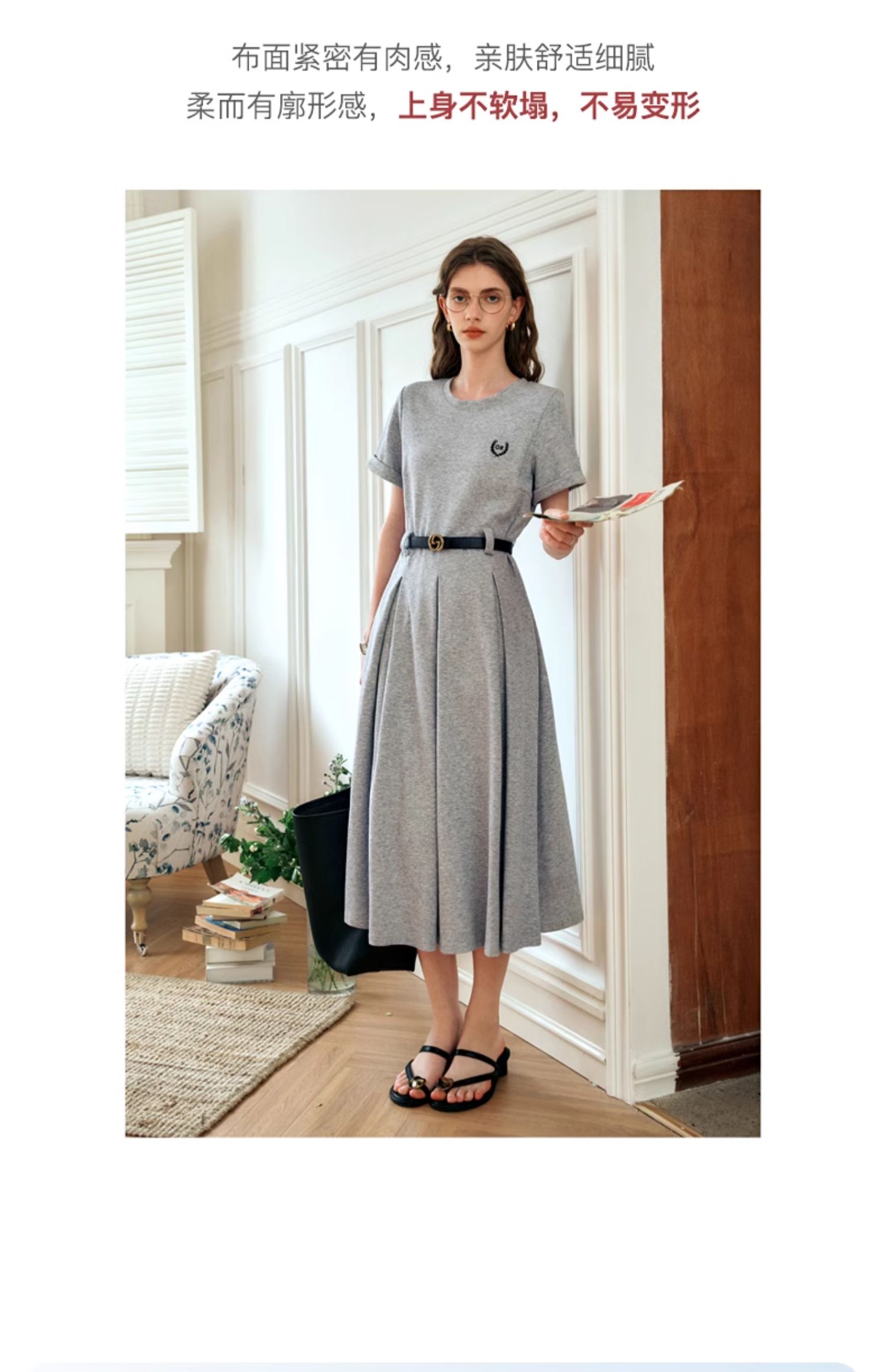OLrain欧芮儿针织连衣裙女夏季2024年新款通勤学院风休闲收腰长裙