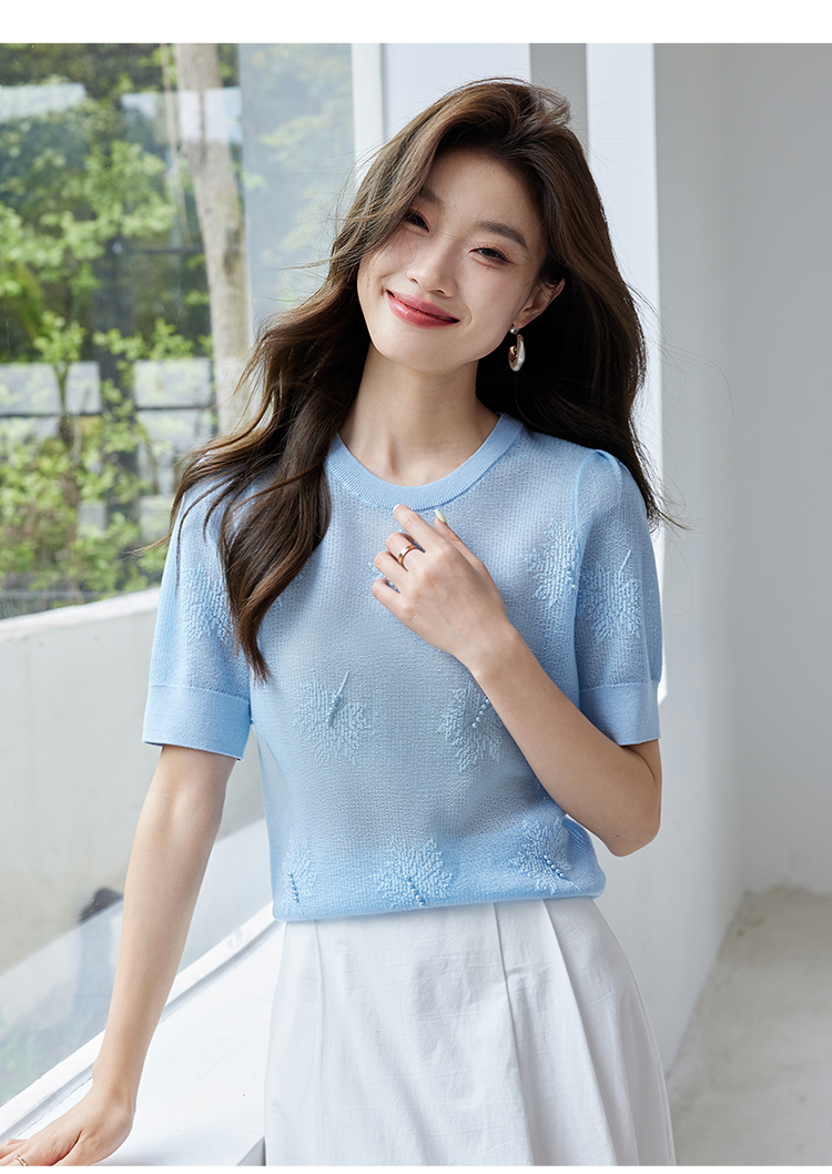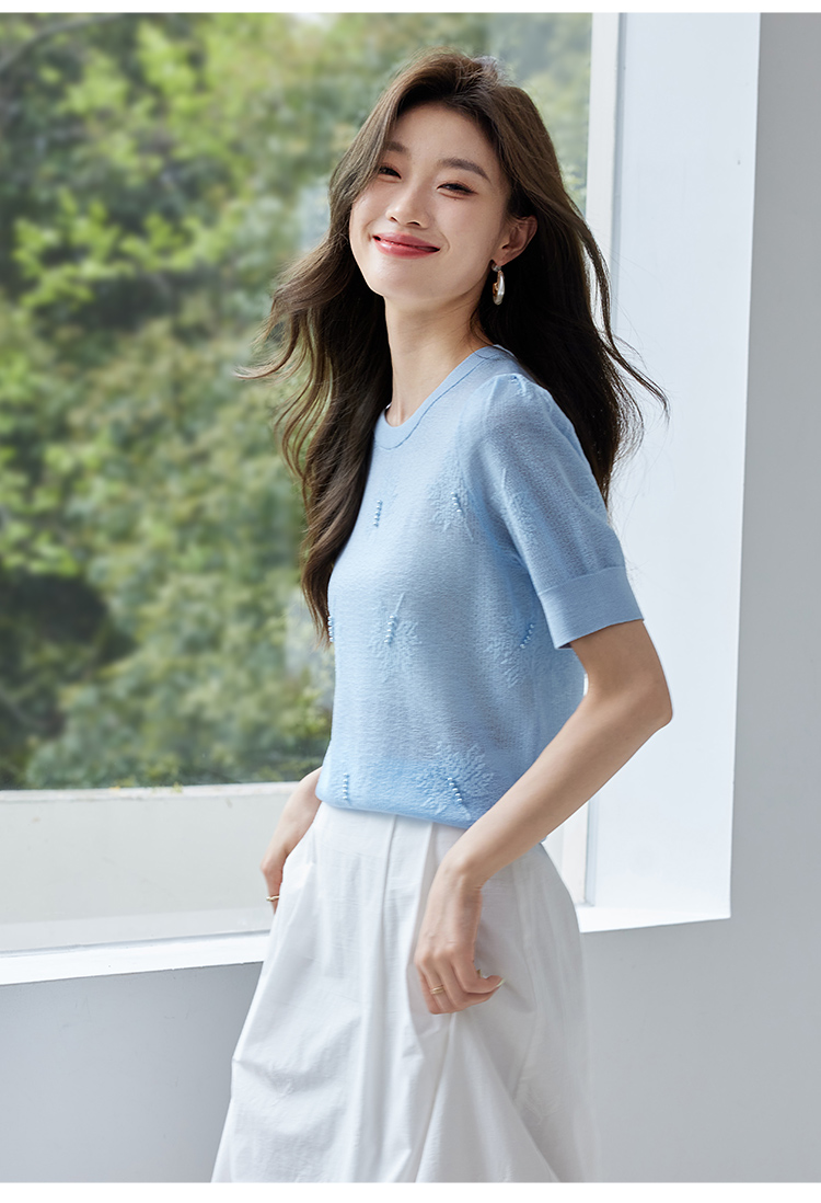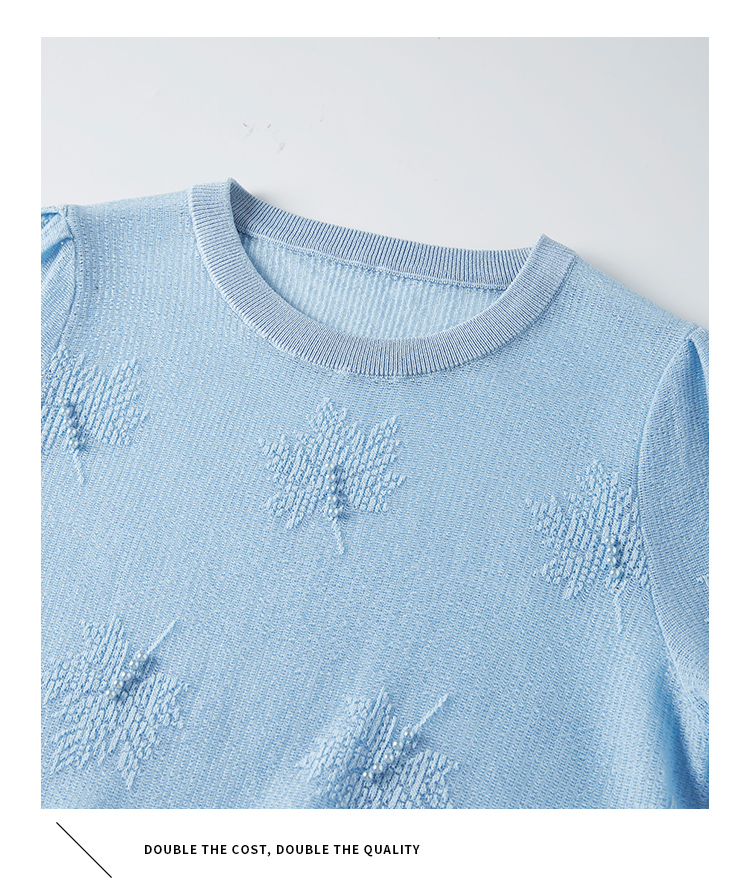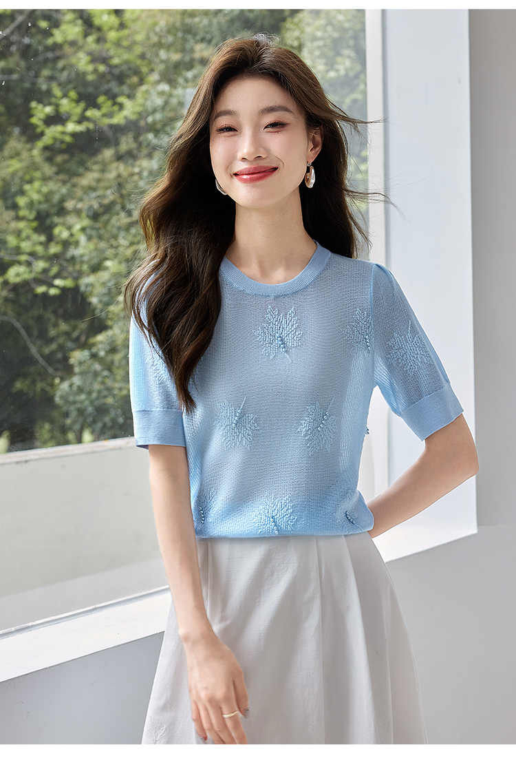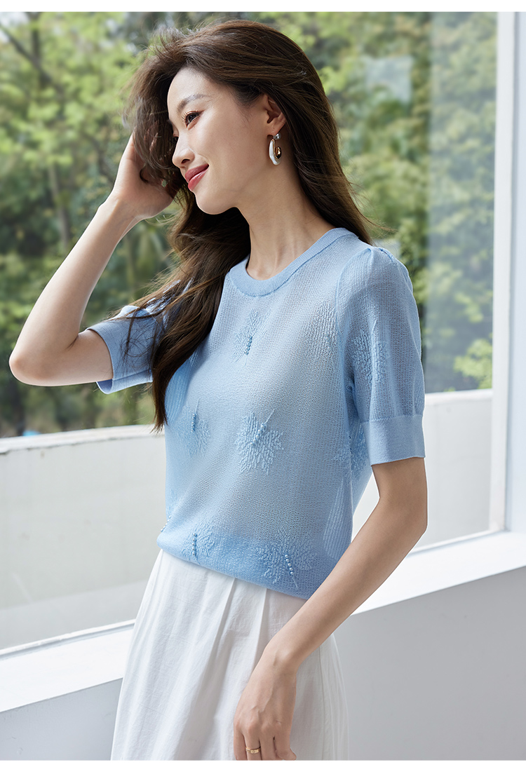 【专属特价】熙世界28支冰丝薄款针织衫设计感钉珠枫叶提花上衣2025夏季新款