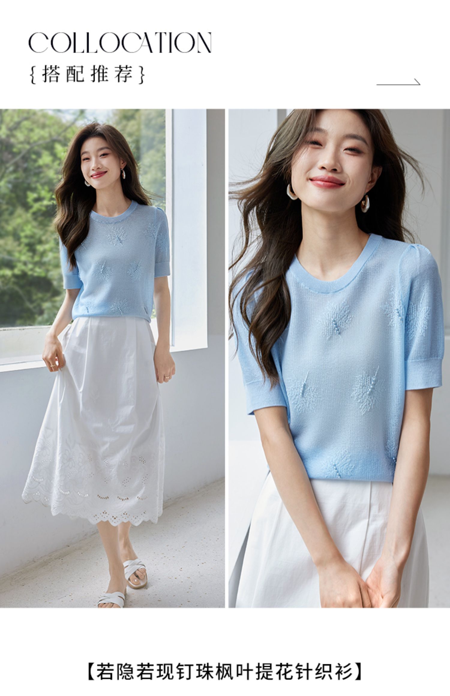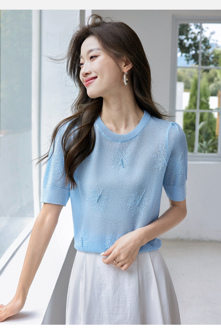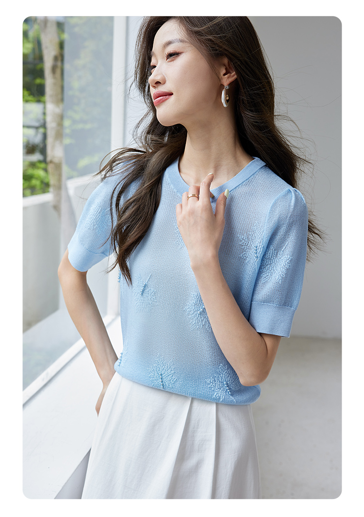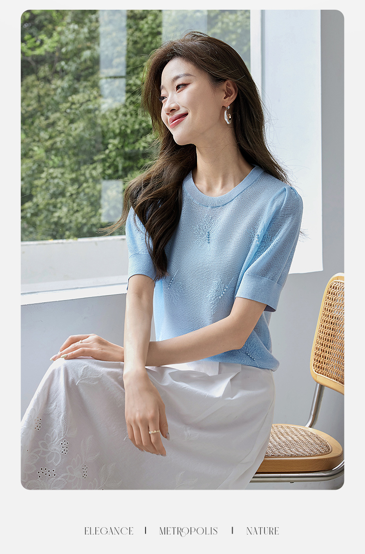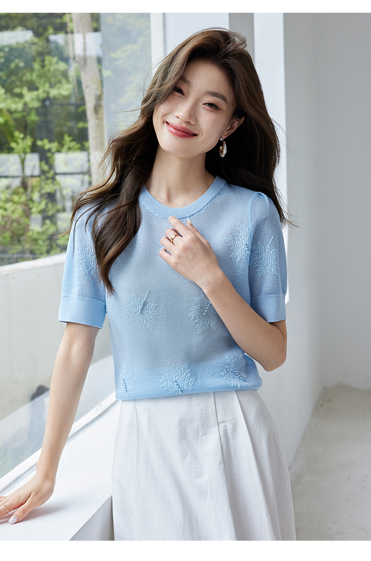 【专属特价】熙世界28支冰丝薄款针织衫设计感钉珠枫叶提花上衣2025夏季新款