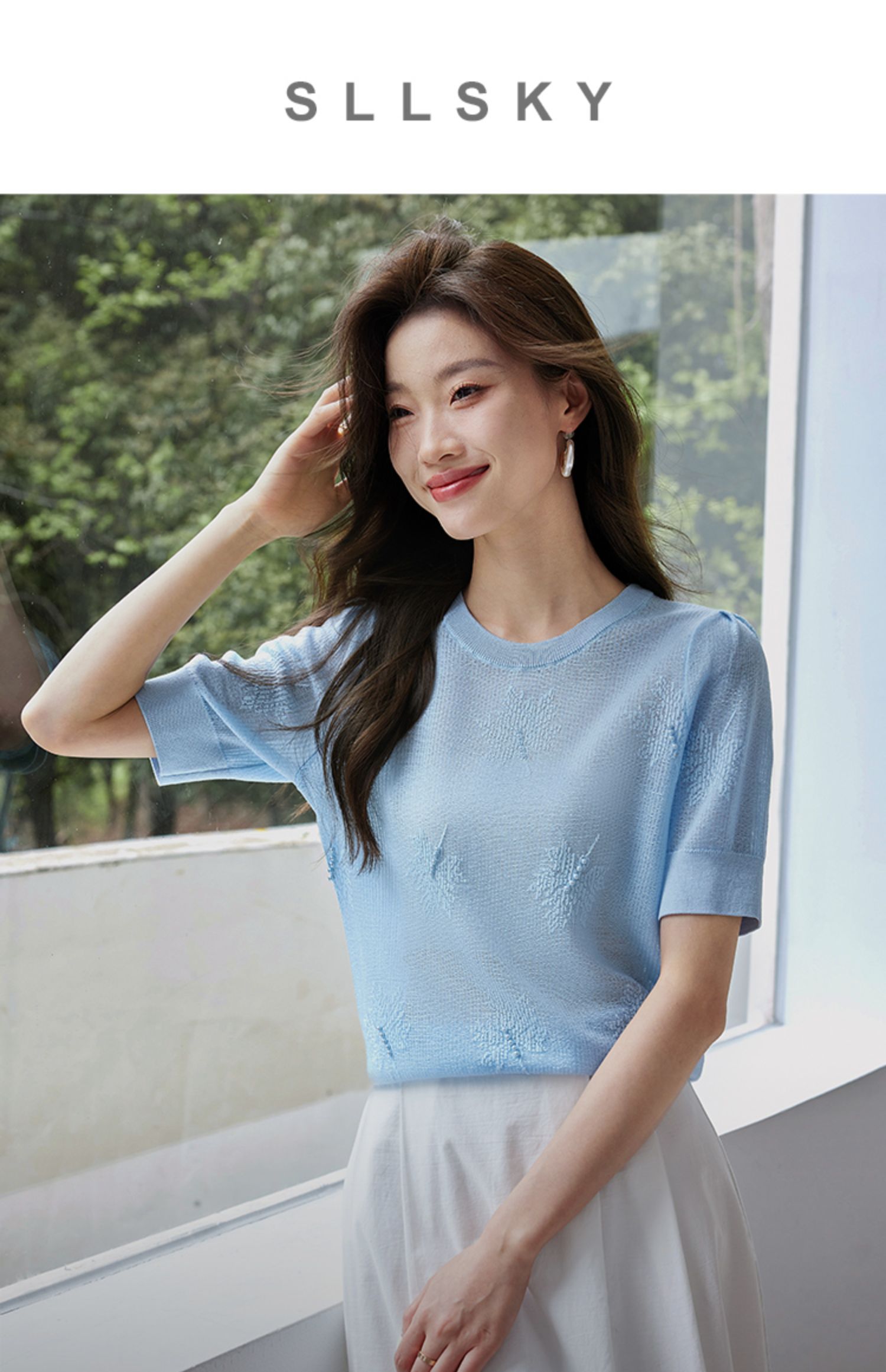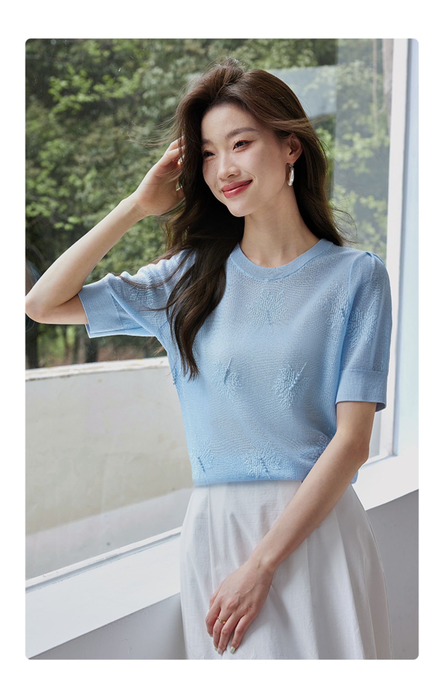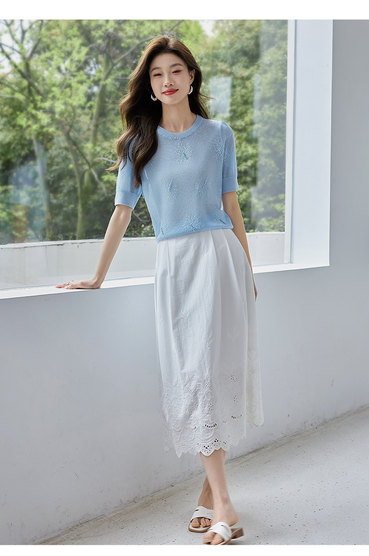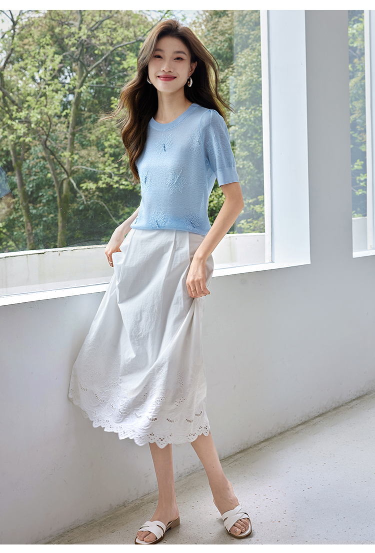 【专属特价】熙世界28支冰丝薄款针织衫设计感钉珠枫叶提花上衣2025夏季新款