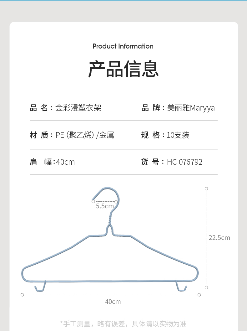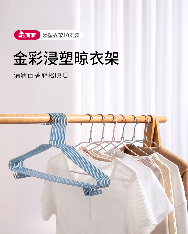 【批发】美丽雅金彩浸塑衣架中号10支入(40cm)