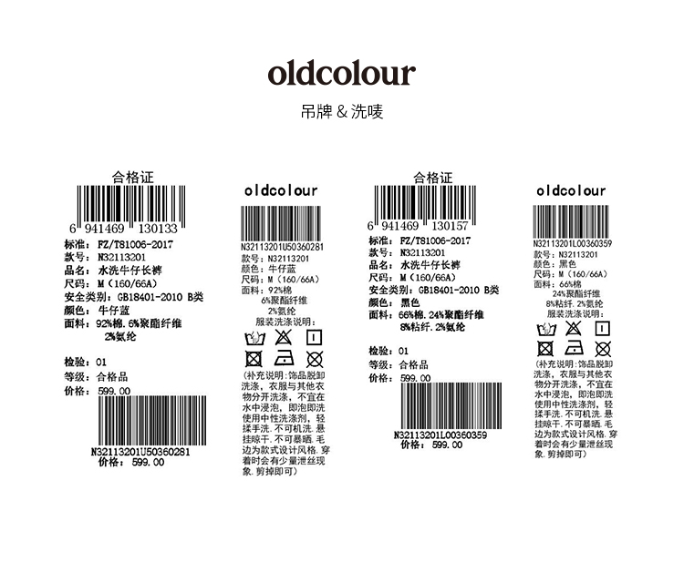 oldcolour2021秋季商场同款时尚显瘦水洗牛仔裤女N32113201