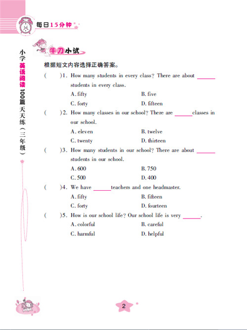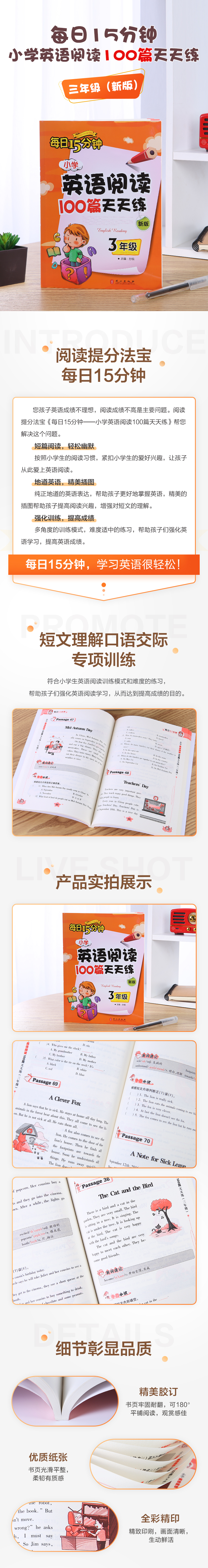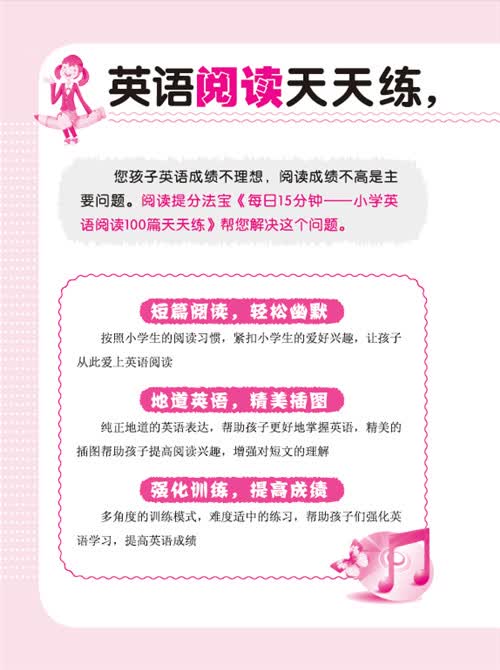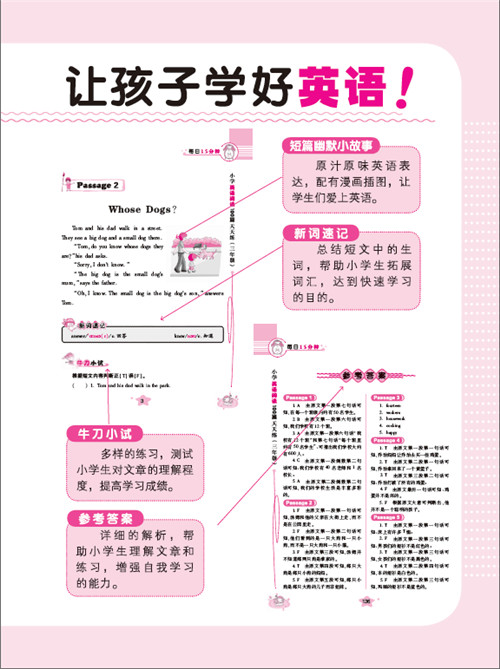 是否觉得看了很多阅读书,做了很多阅读试题,英语阅读的成绩还是不理想?英语阅读的特点就是成绩提高缓慢,根据英文老师的教学经验,学不好英语阅读有下面几个原因:一,故事不吸引人,缺少阅读兴趣。二,认识的单词和词组太少。三,练习模式和难度不符合小学生的特点。为解决这些问题,本书从分为四部分: