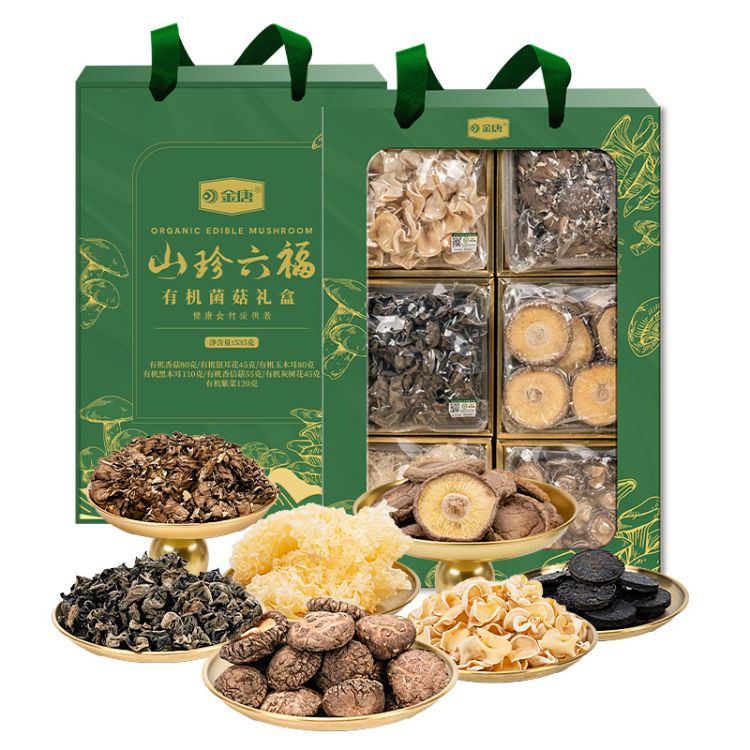 金唐有机山珍六福535克(香菇+信菇+玉耳+黑木耳+银耳+树花)