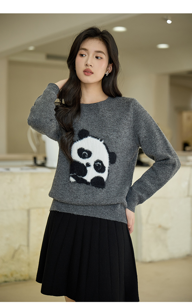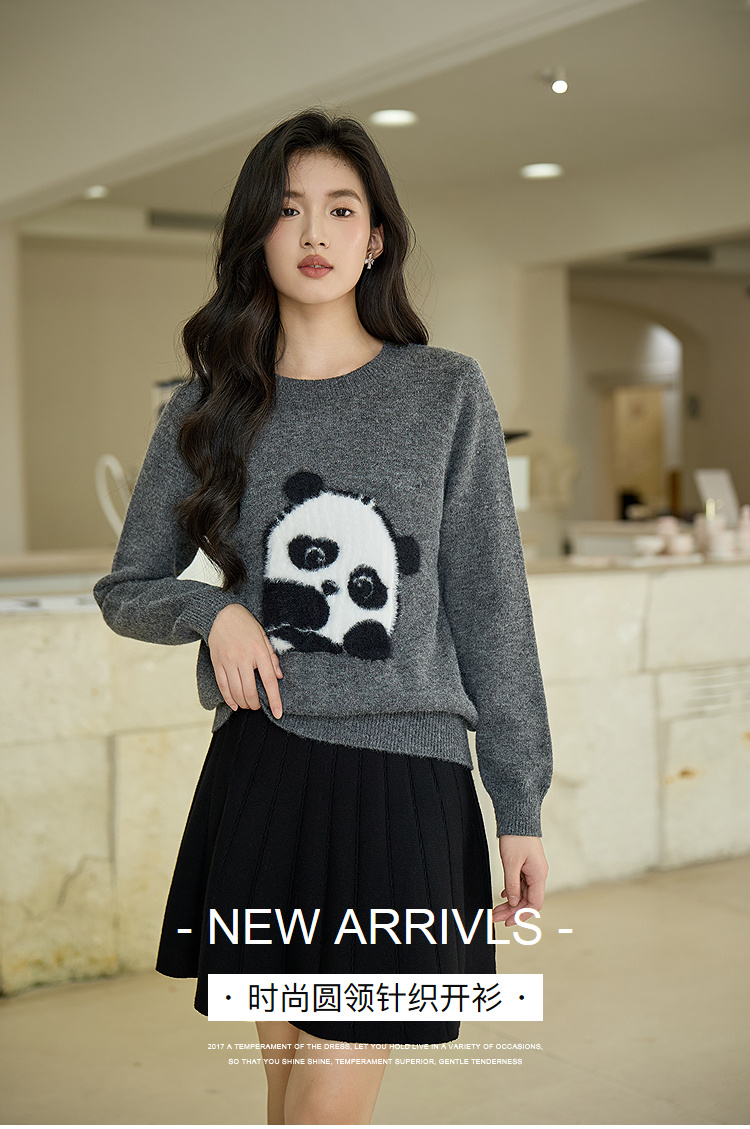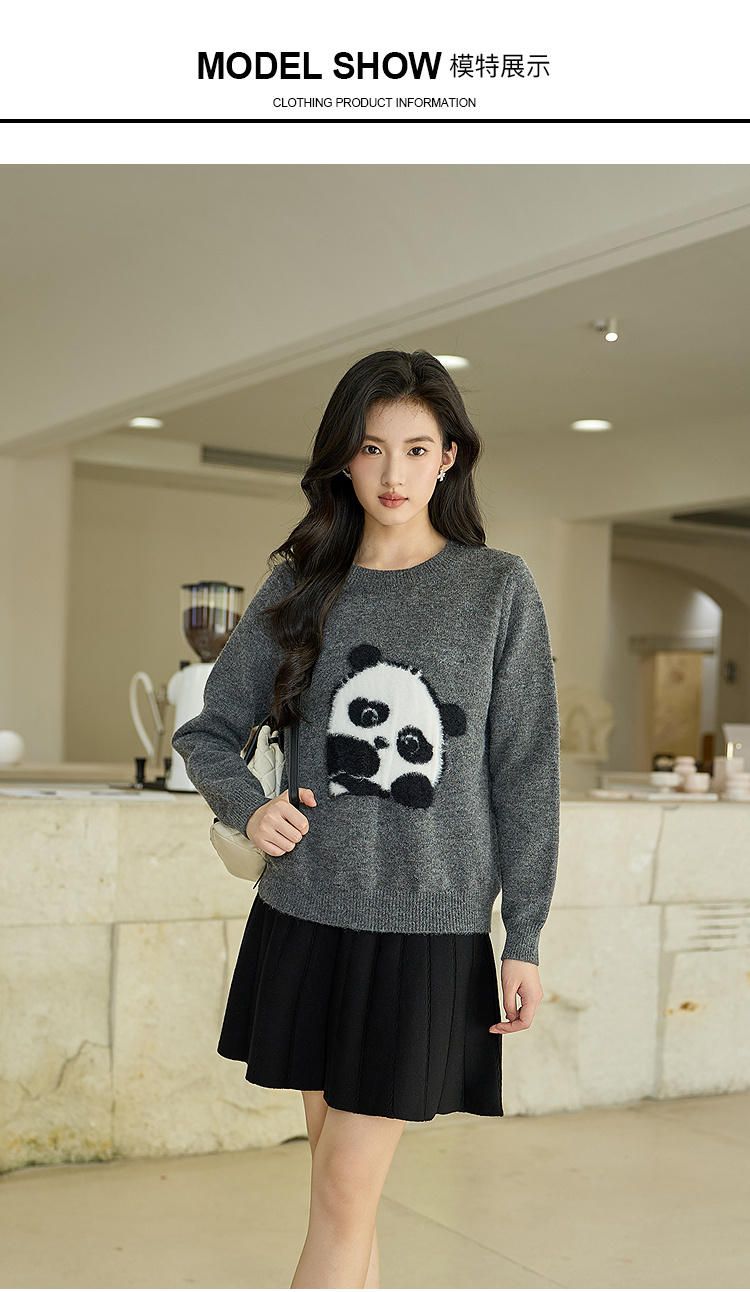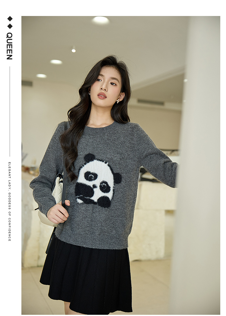 奢姿大码女装2025秋季气质可爱熊猫图案针织衫胖妹妹时尚圆领上衣9553669916