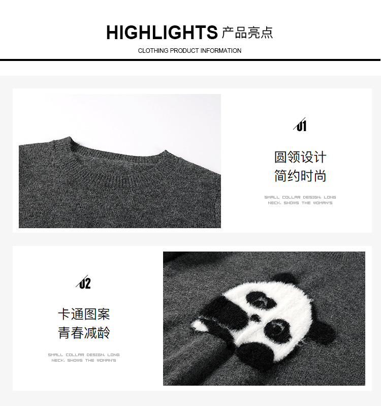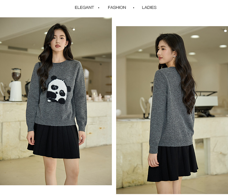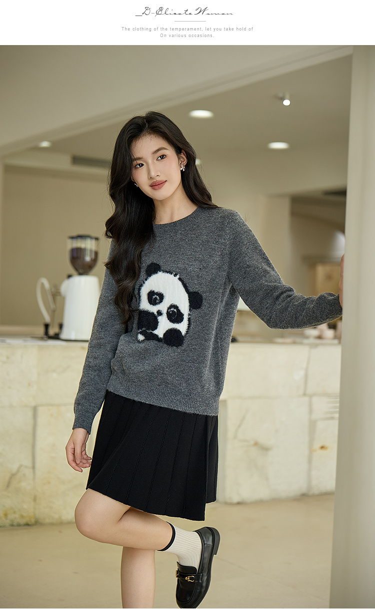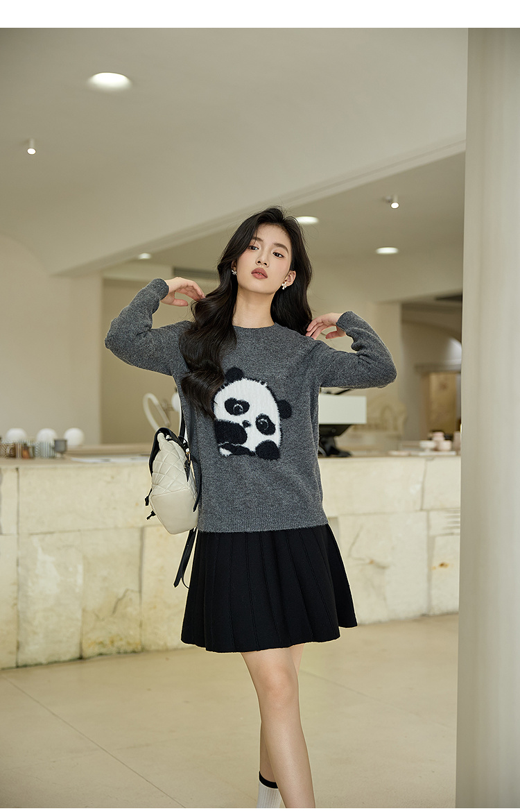 奢姿大码女装2025秋季气质可爱熊猫图案针织衫胖妹妹时尚圆领上衣9553669916