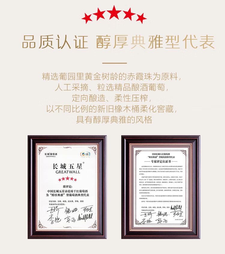 长城五星赤霞珠木盒干红 14度 750ml【本商城规格1件即为1瓶】