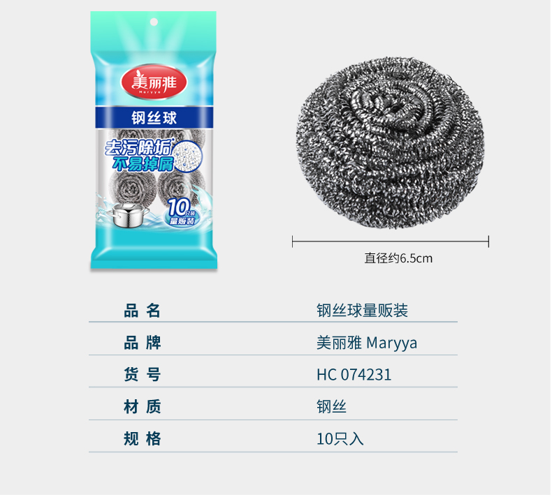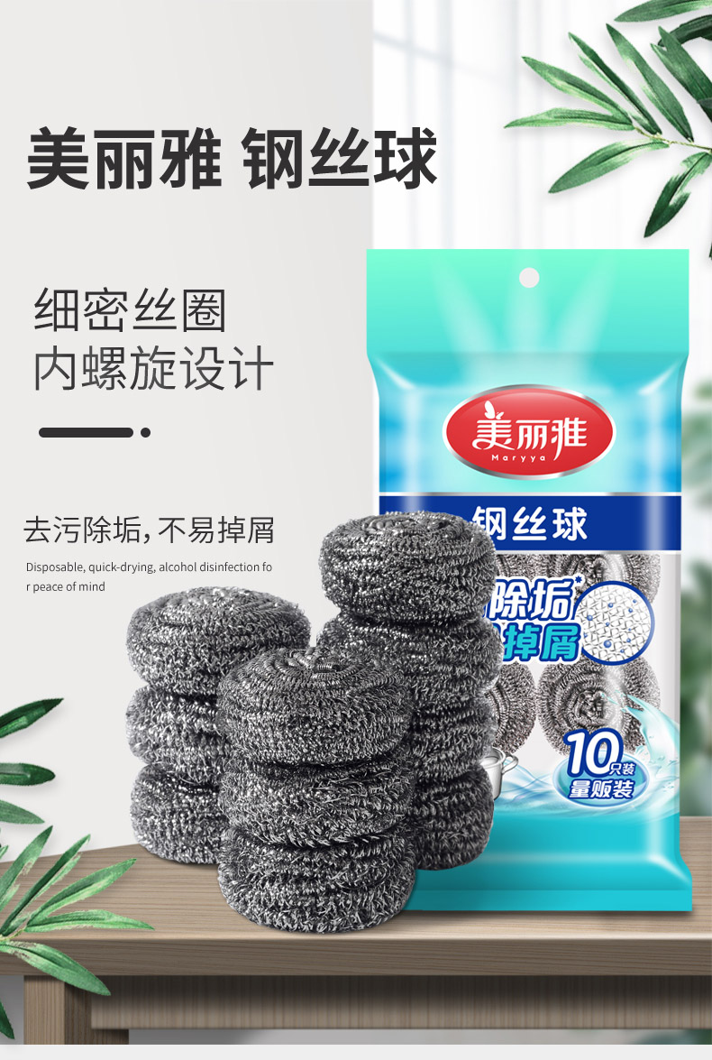 【批发】美丽雅不锈钢钢丝球厨房清洁神器不掉渣耐用10只入
