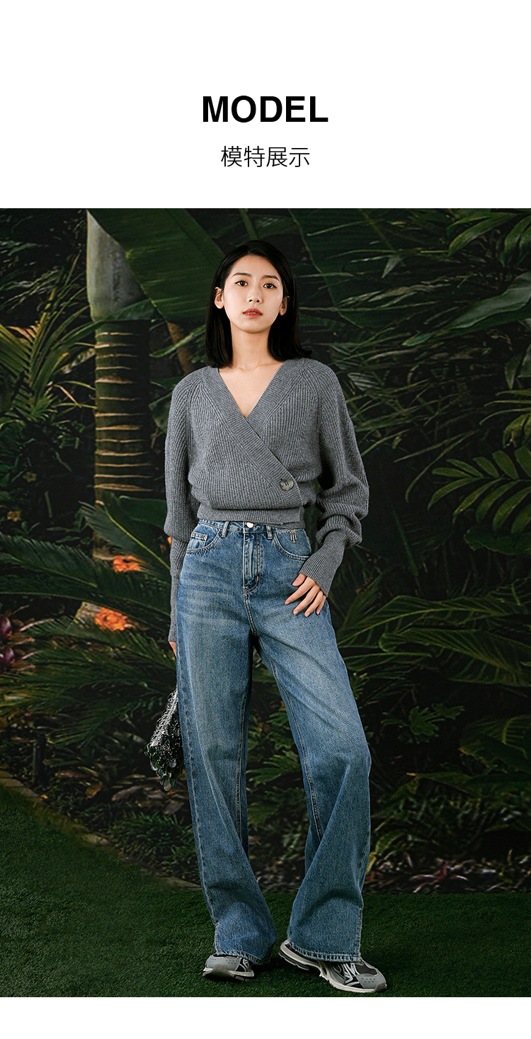 oldcolour秋季新款羊毛衫女100%纯绵羊毛V领长袖针织衫P340507A1