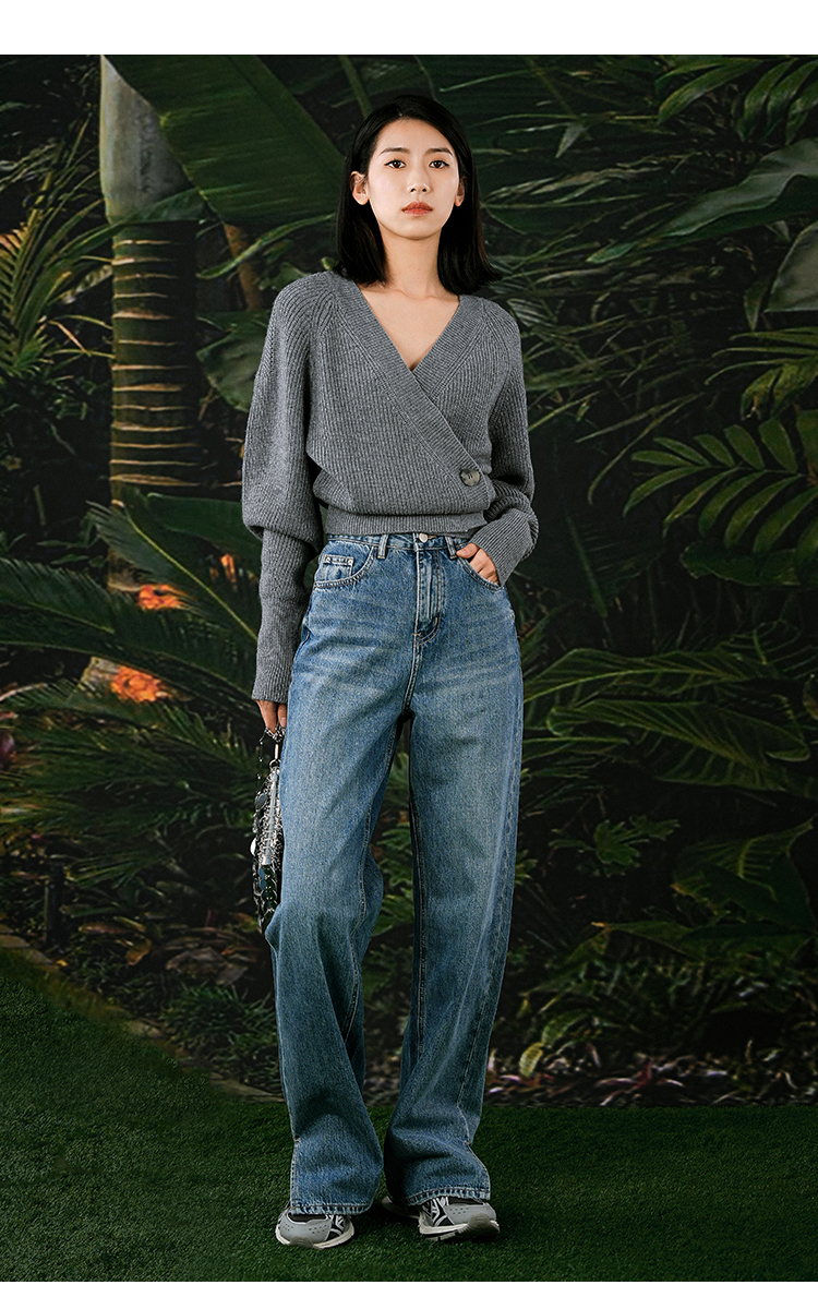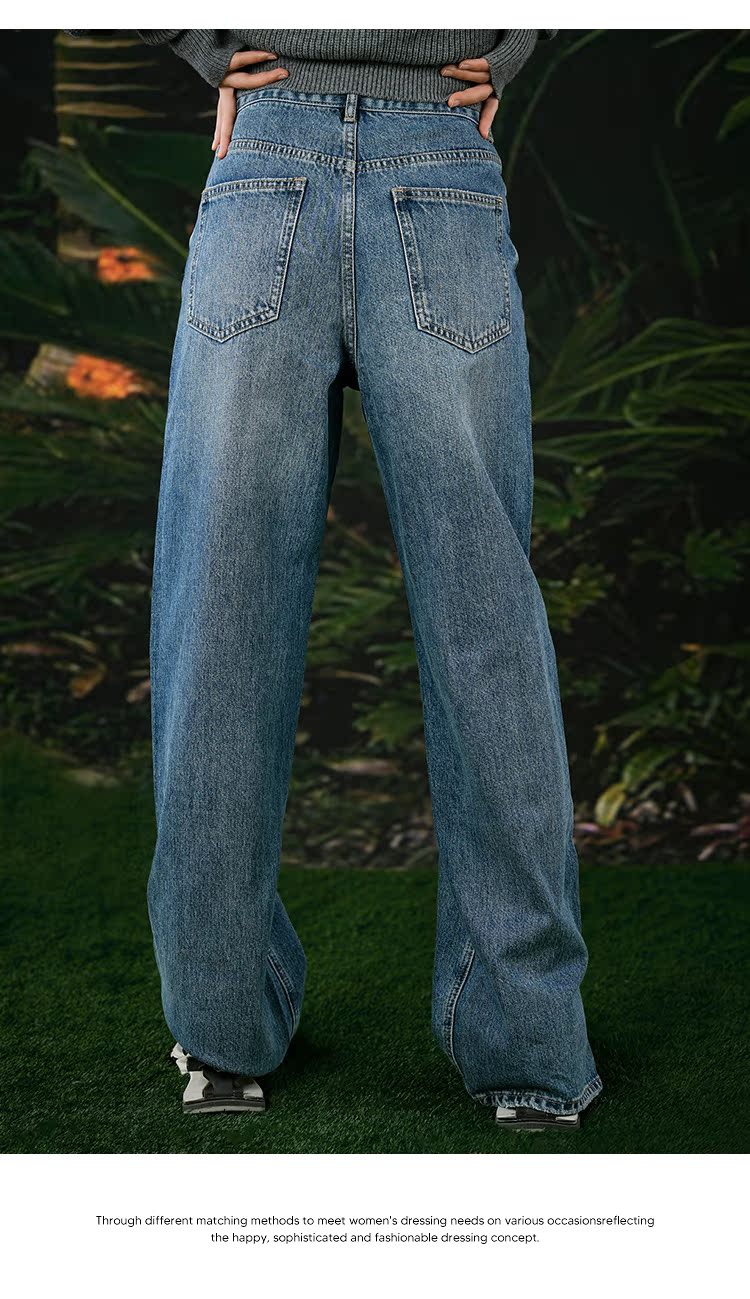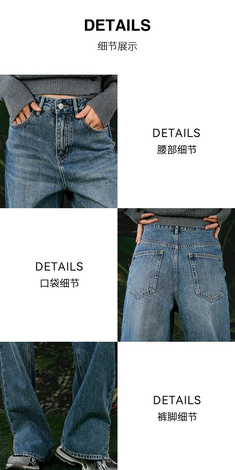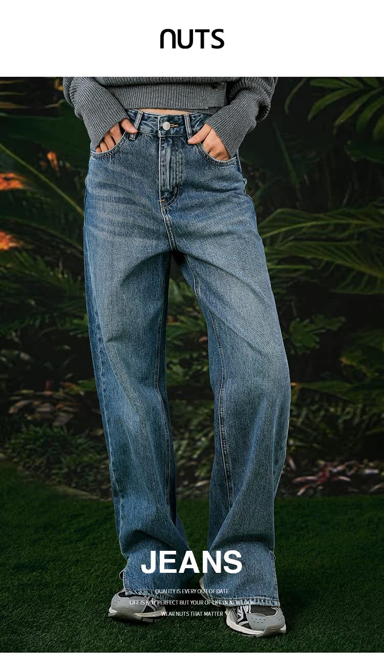 NUTS春秋季新款复古高腰直筒显瘦百搭长款牛仔裤女412113375