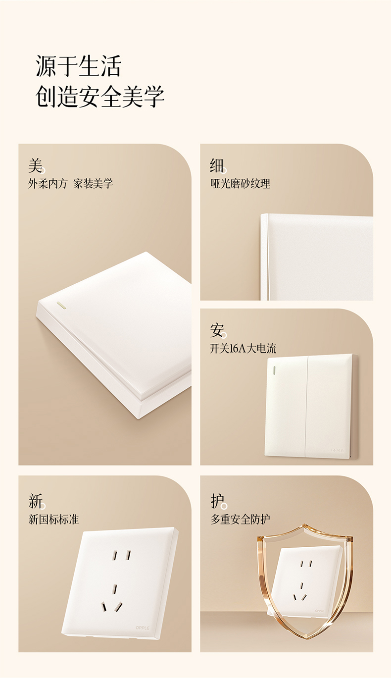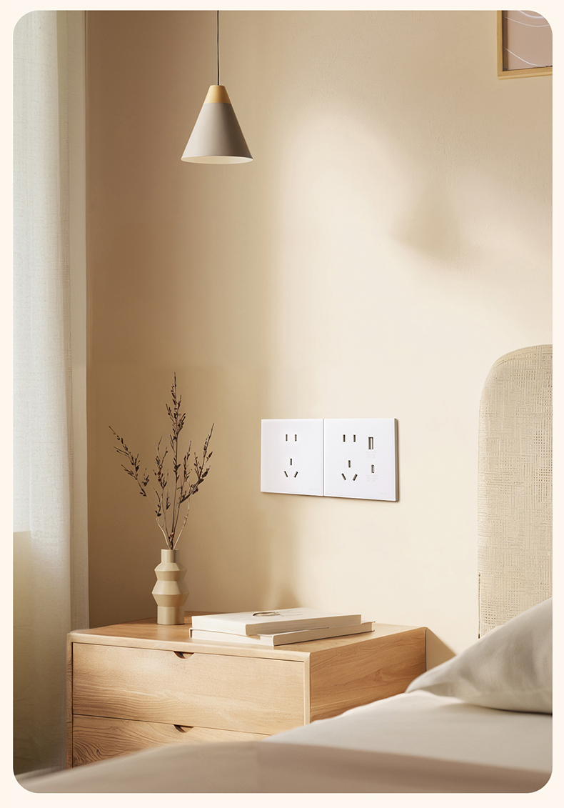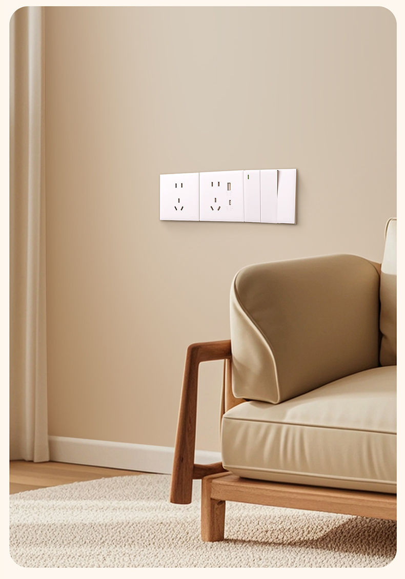 欧普(OPPLE)开关插座W18悦灵月光白usb空调16A插座五孔10A面板暗装二开多控