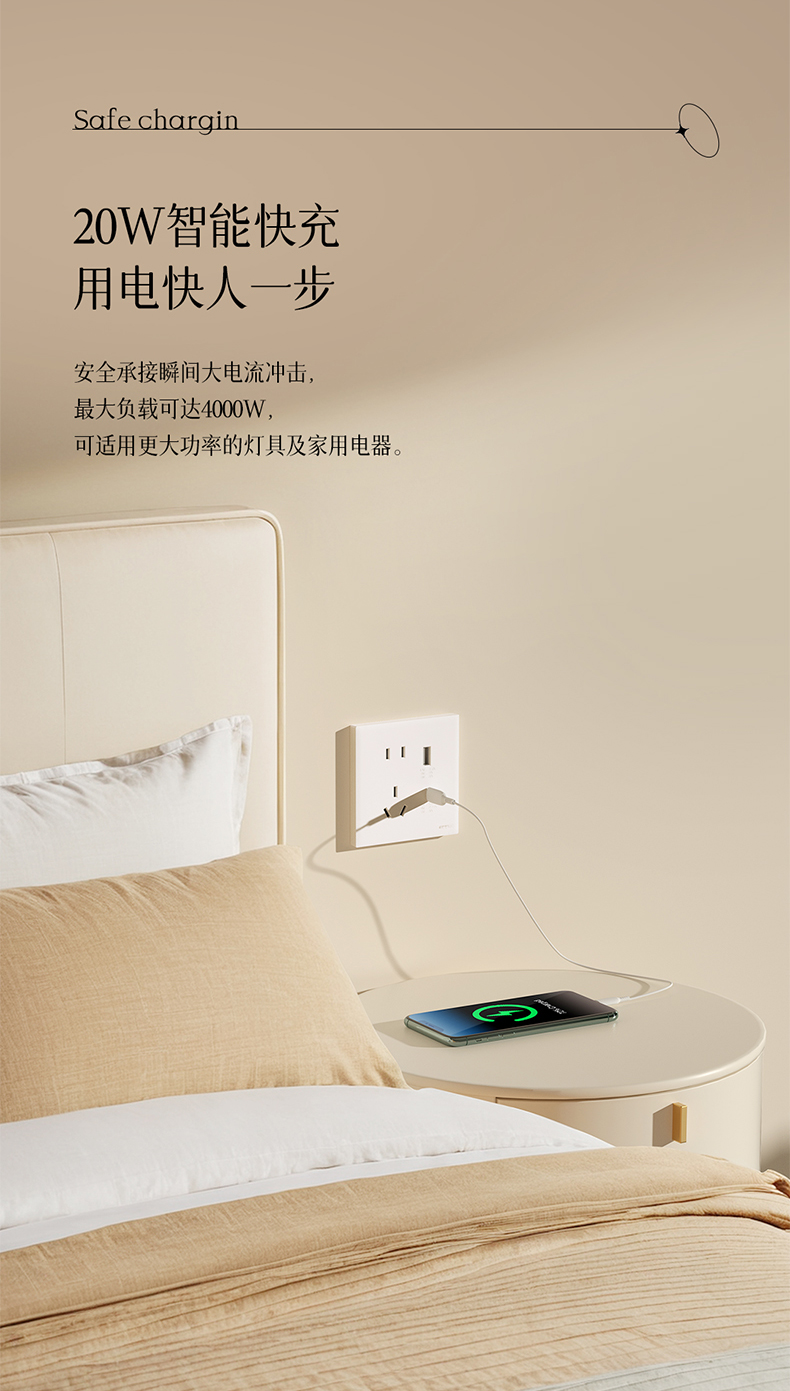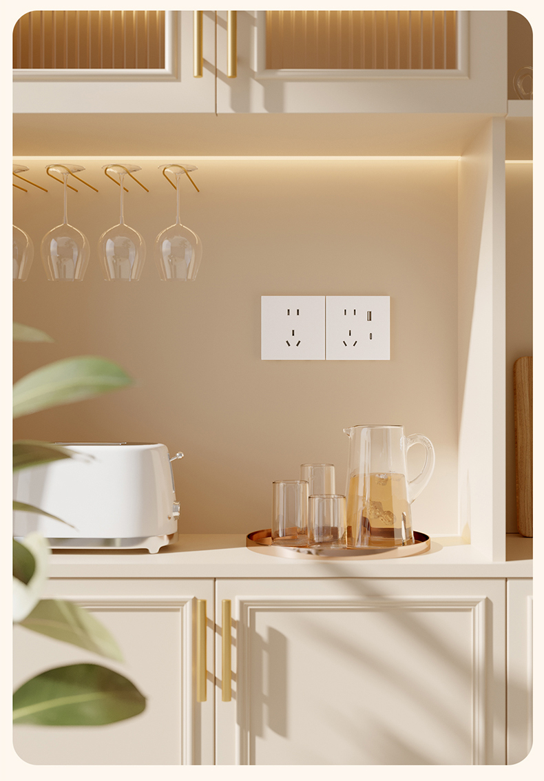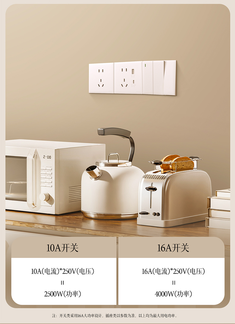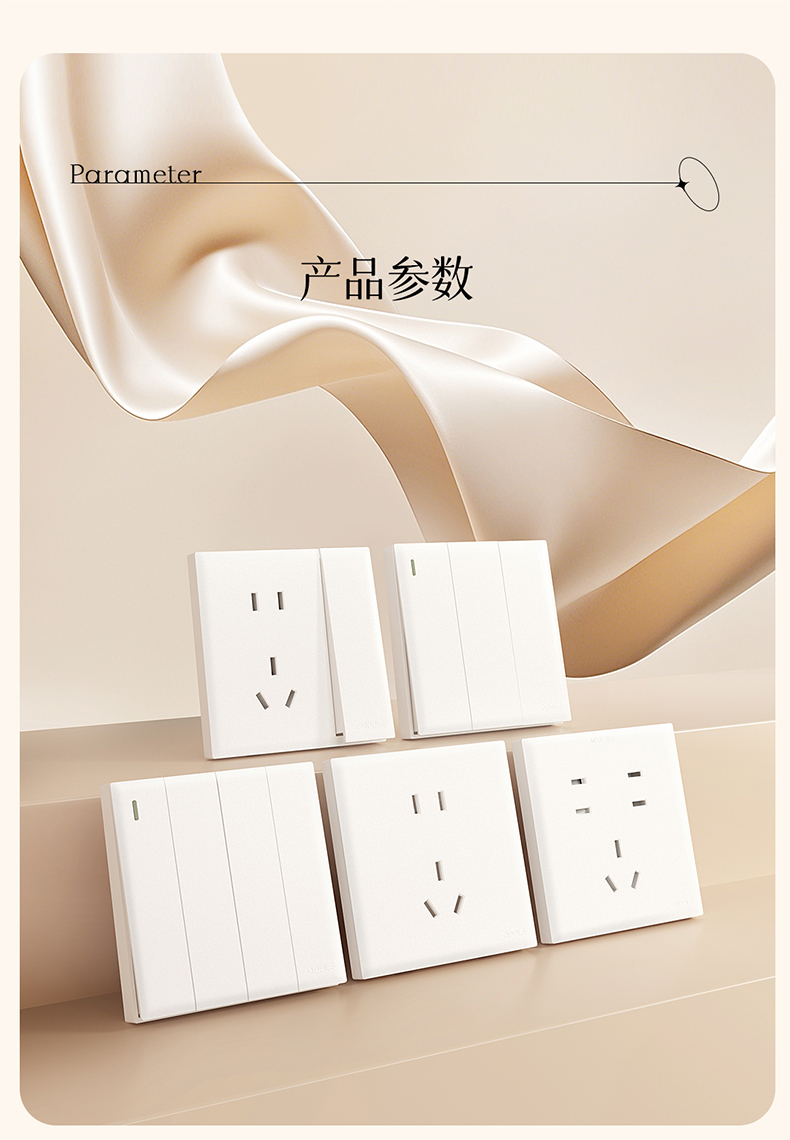欧普(OPPLE)开关插座W18悦灵月光白usb空调16A插座五孔10A面板暗装二开多控