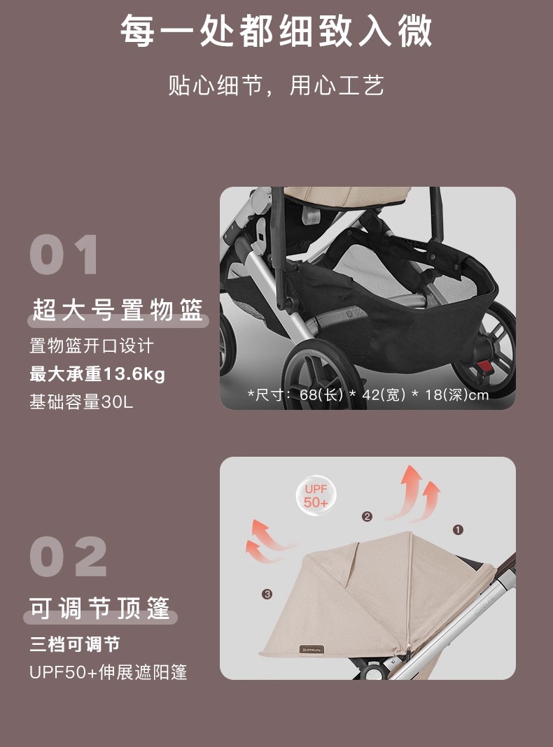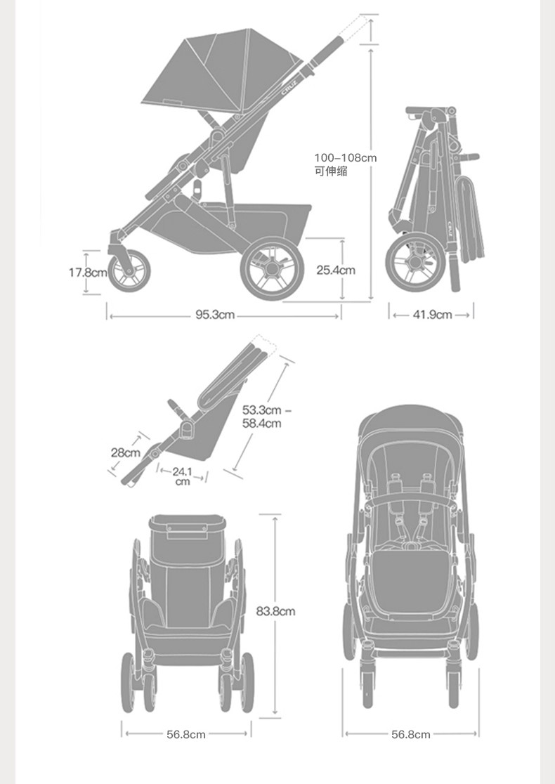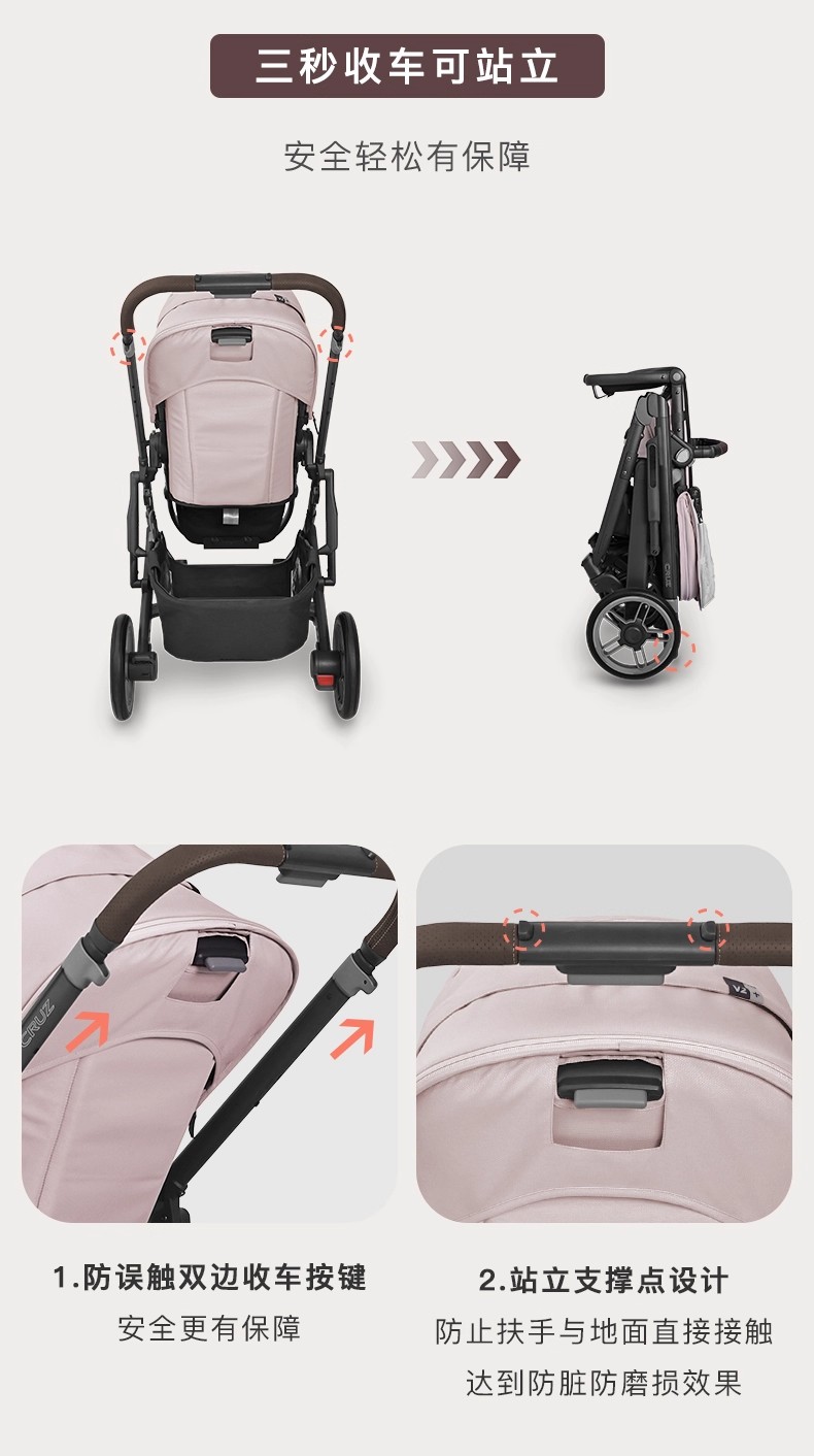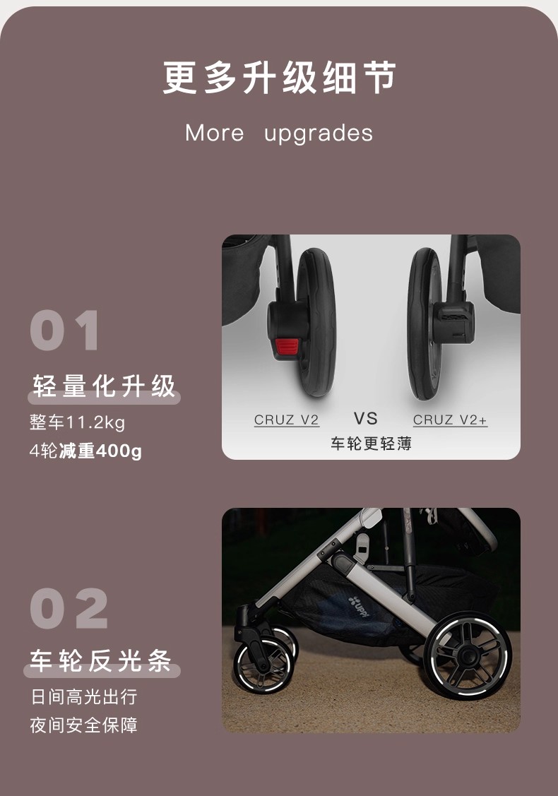 美国UPPAbaby Cruz V2+ 宝宝推车双向高景观可坐可躺儿童折叠新生婴儿推车