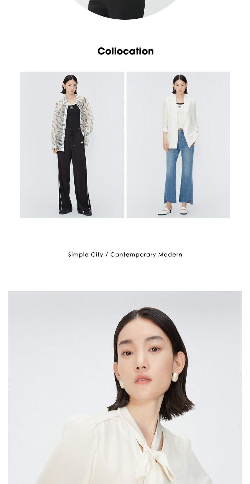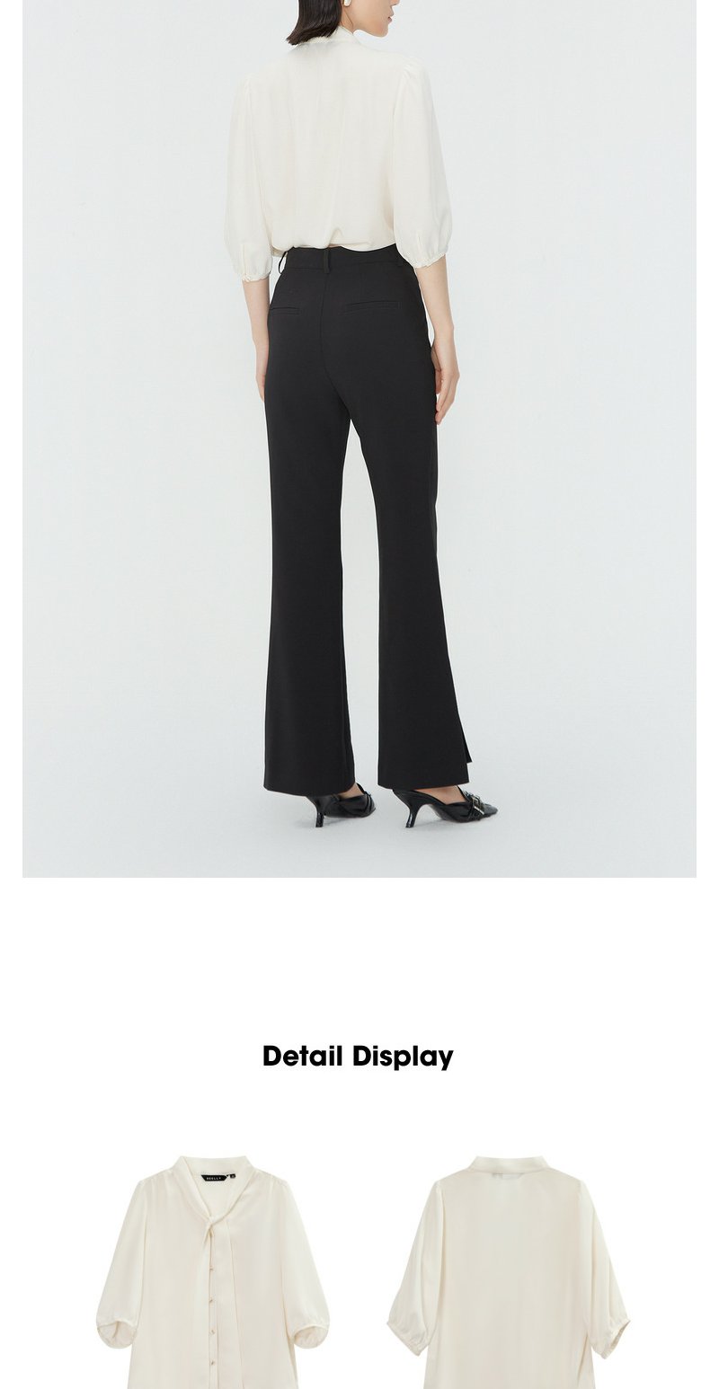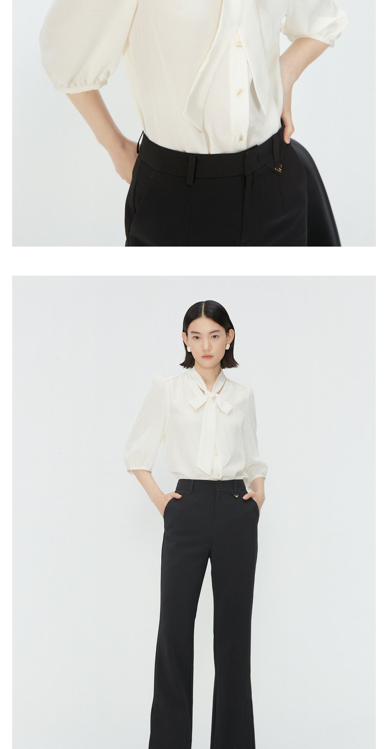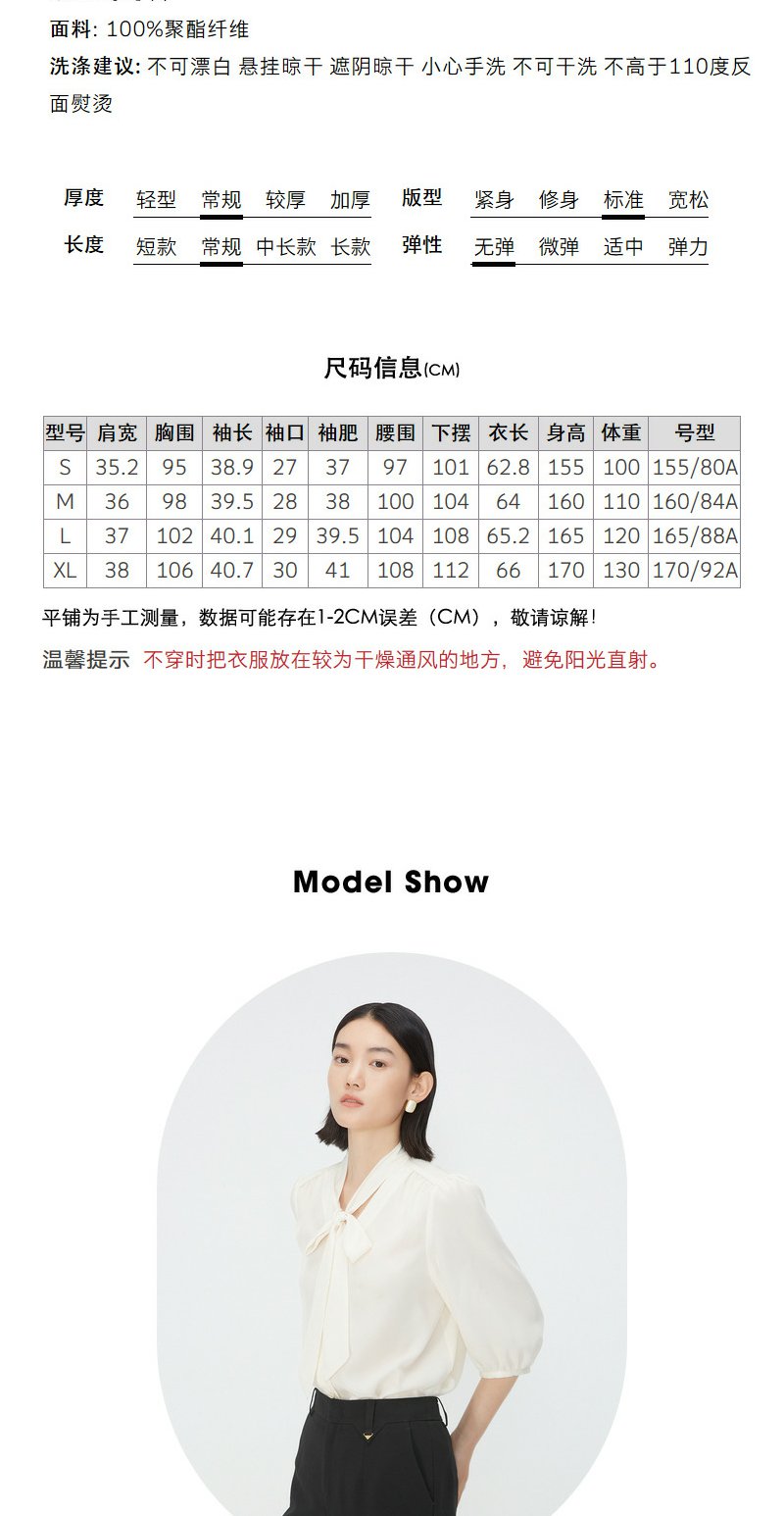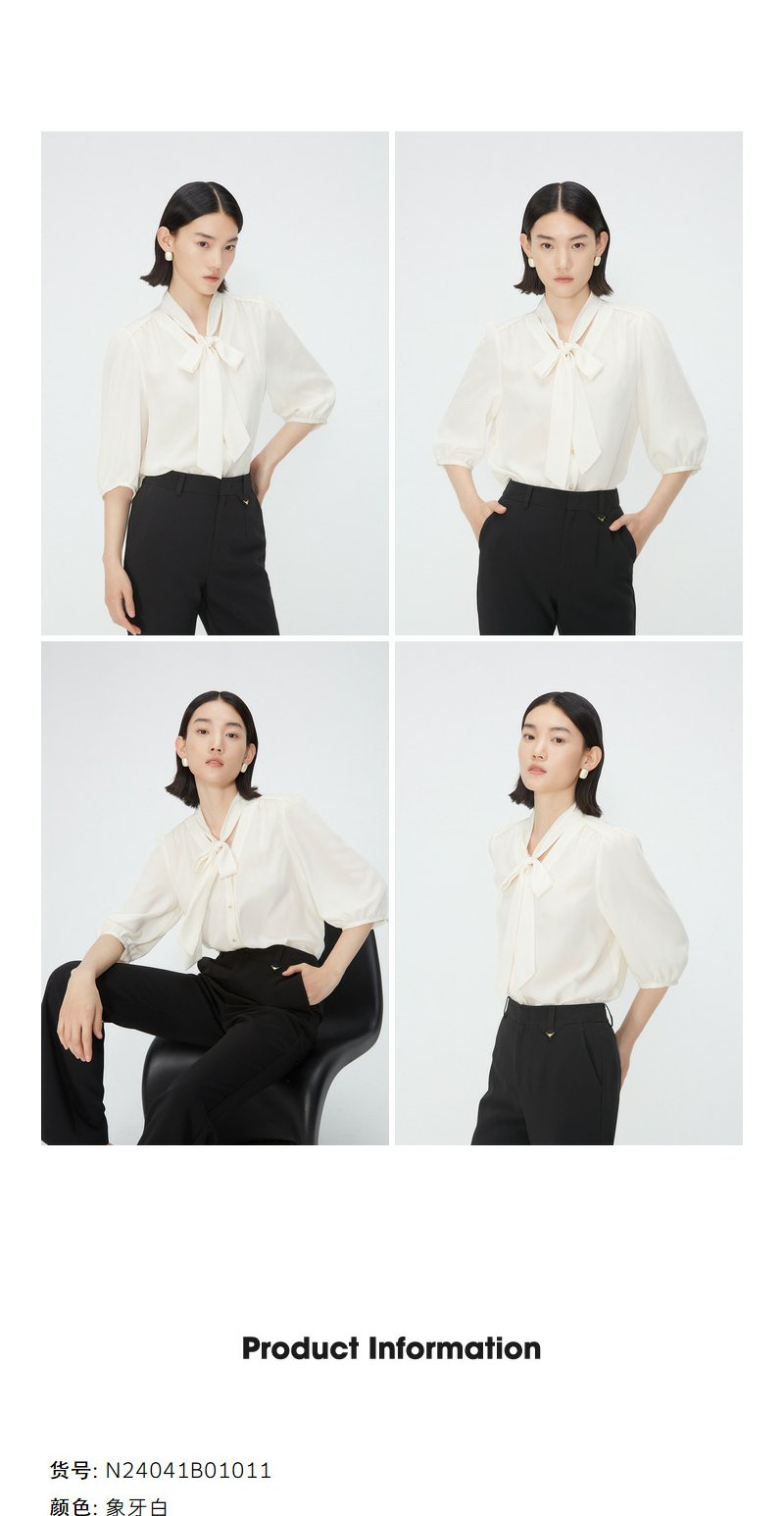 NEELLY纳俪商场同款优雅飘带领衬衫女通勤五分袖宽松别致雪纺上衣 N24041B01011