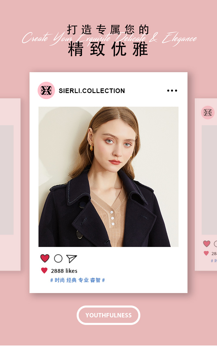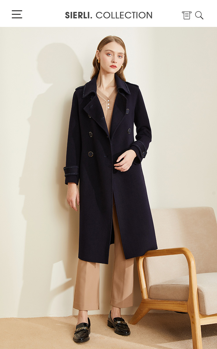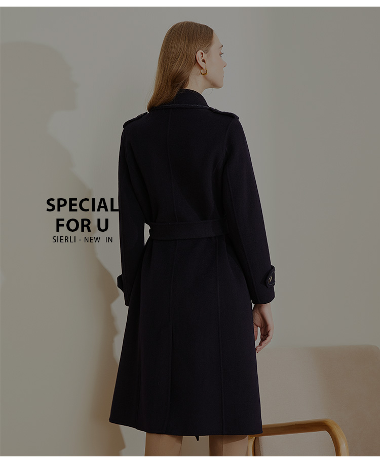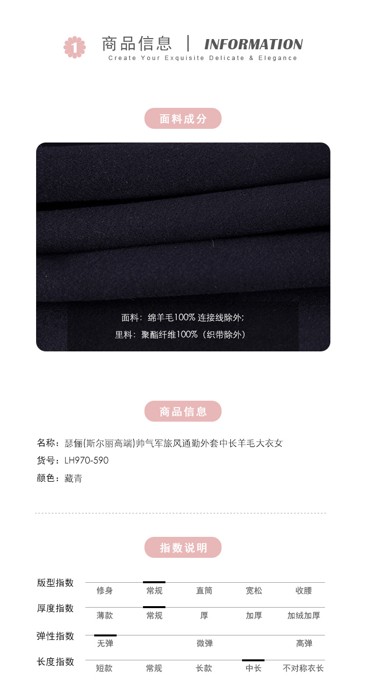 LH970斯尔丽瑟俪专柜同款2021冬新款帅气军旅风通勤外套中长羊毛大衣女