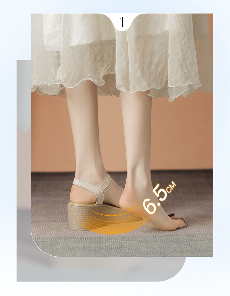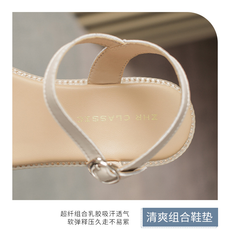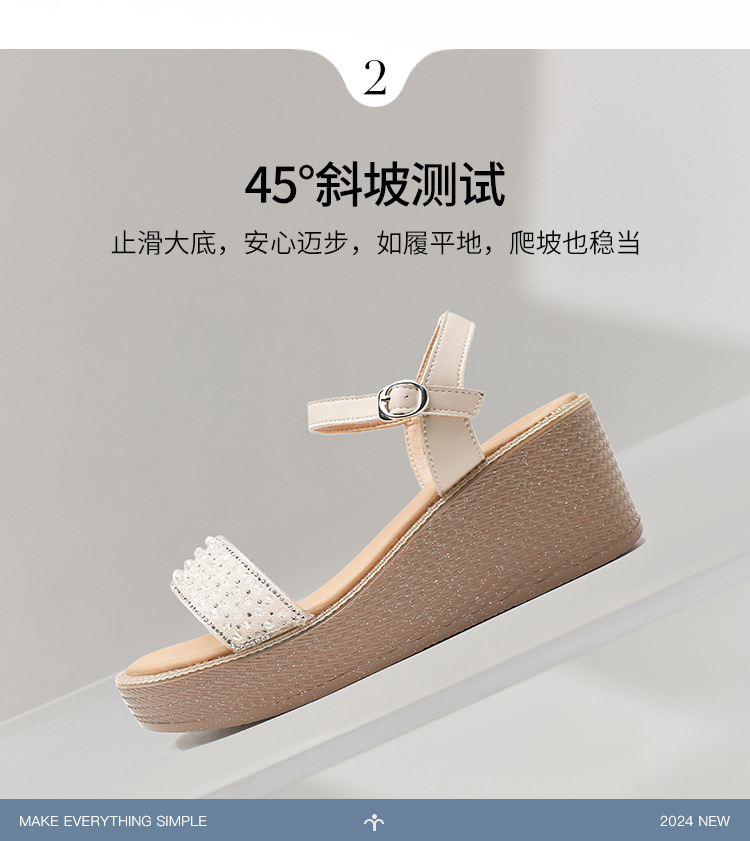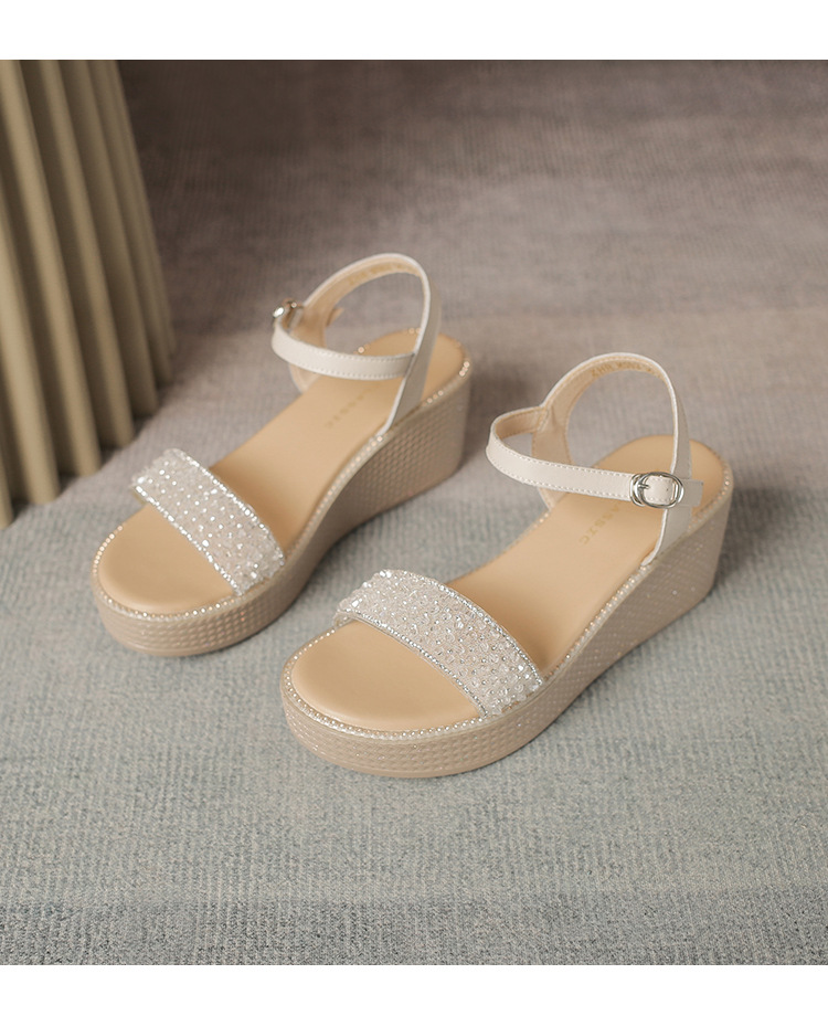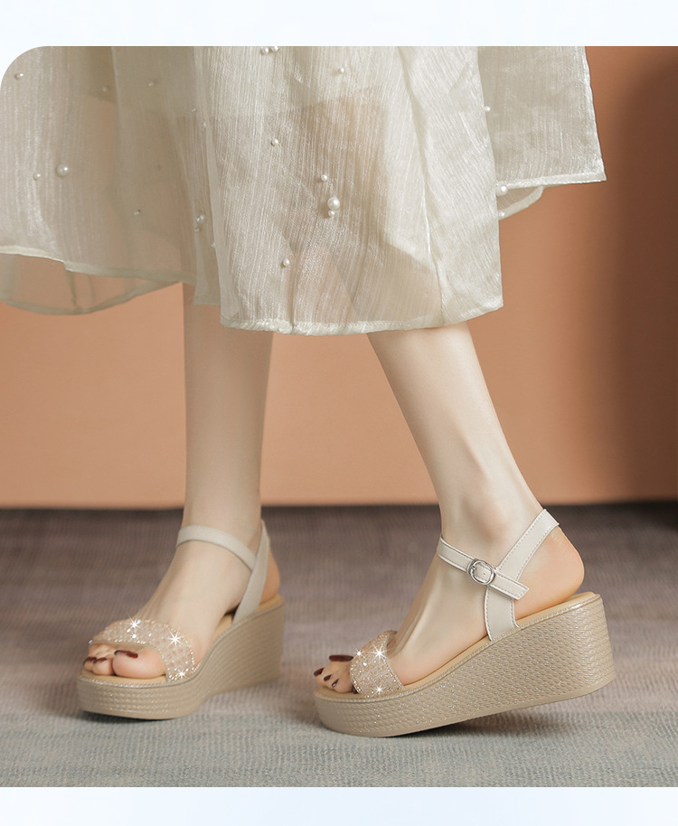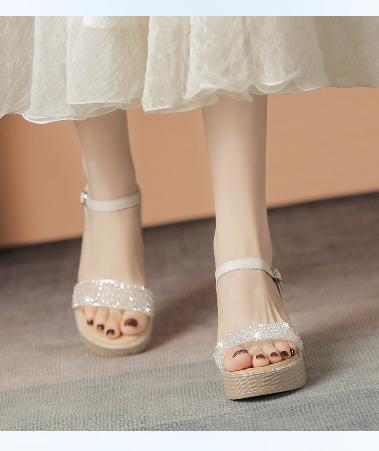 ZHR坡跟带水钻高跟鞋2024夏季新款外穿厚底小个子增高女鞋配裙子