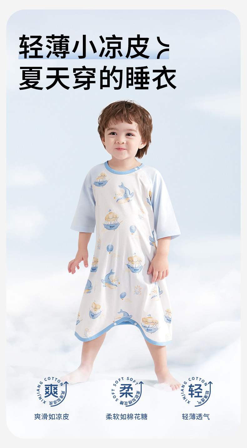 婴儿睡袋春夏季纯棉四季通用款幼儿童宝宝连体睡衣春秋睡裙防踢被★爱贝迪拉