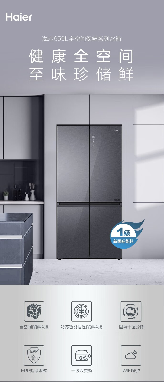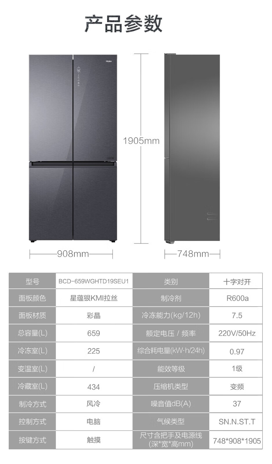 海尔十字门冰箱 BCD-659WGHTD19SEU1