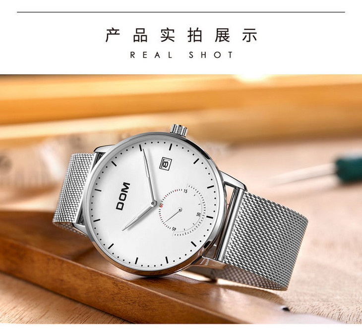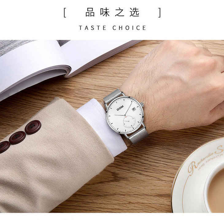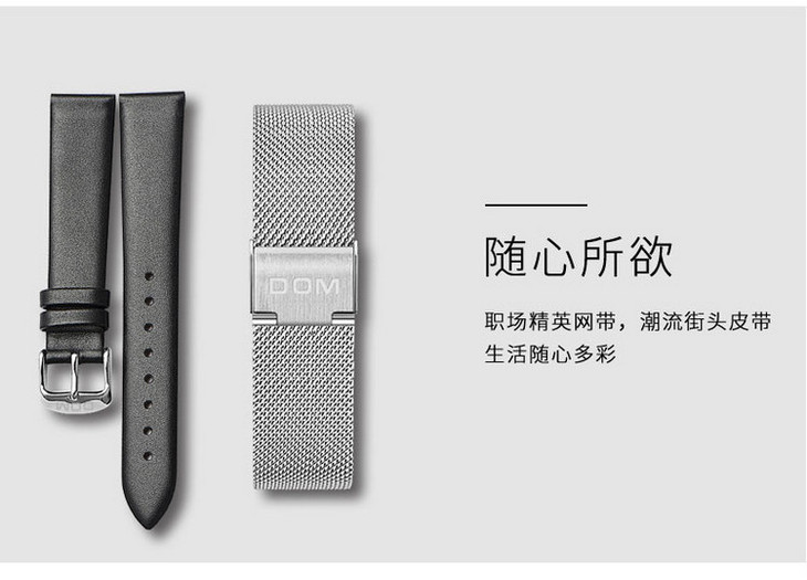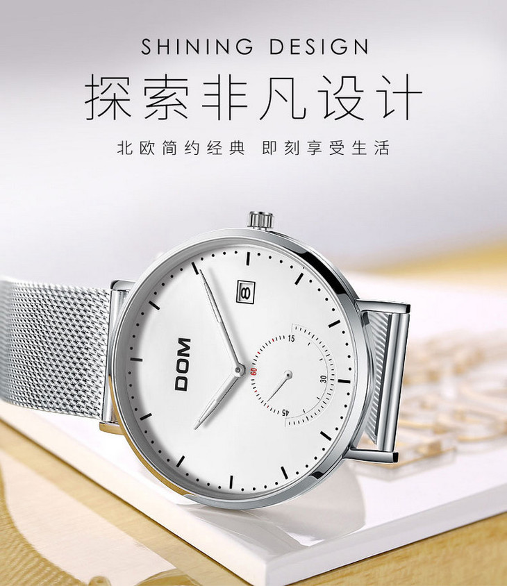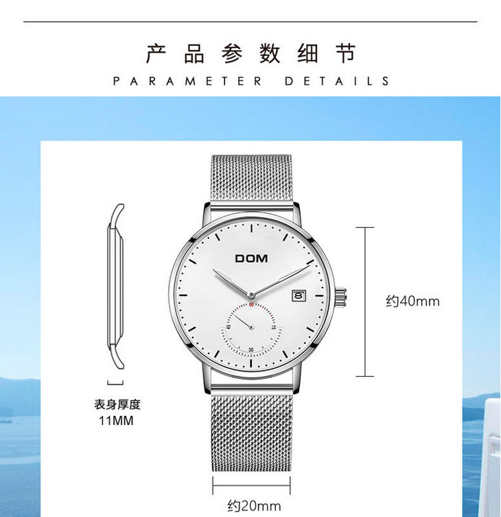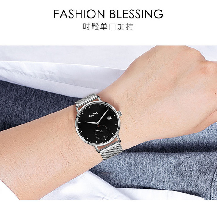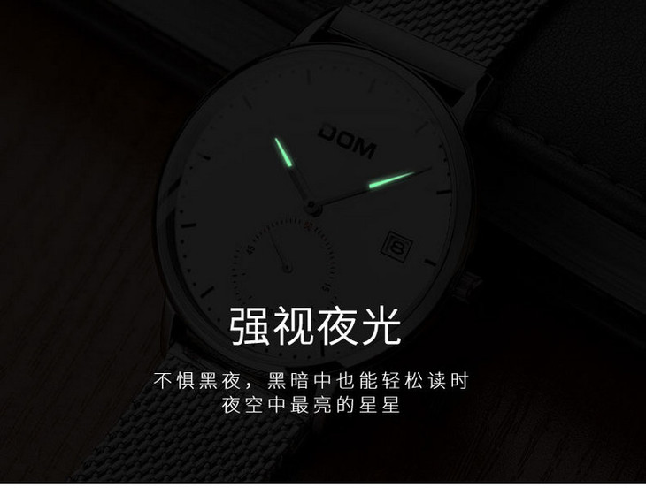 【一般贸易】多姆(DOM)手表男士超薄简约多功能运动夜光石英手表M-307L-1M黑盘黑皮带