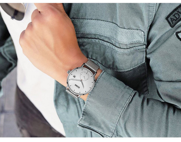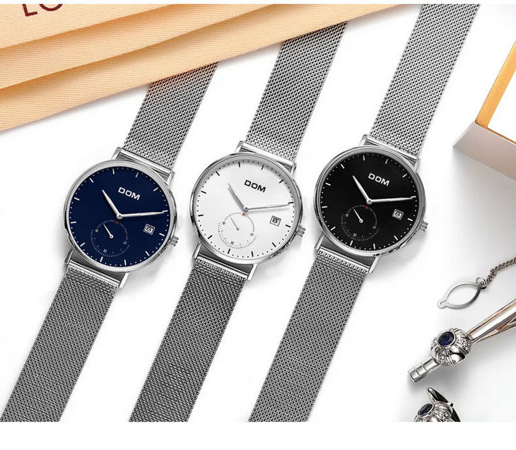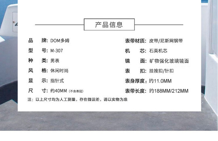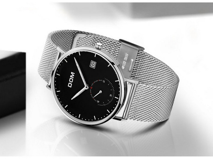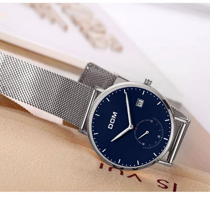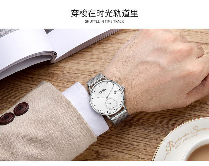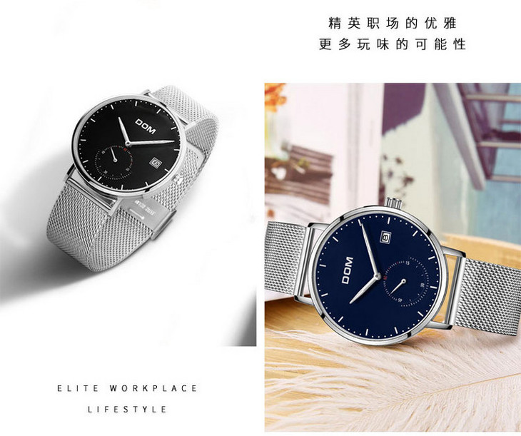 【一般贸易】多姆(DOM)手表男士超薄简约多功能运动夜光石英手表M-307L-1M黑盘黑皮带