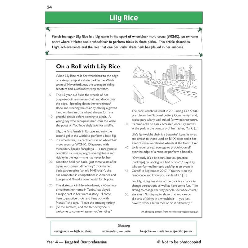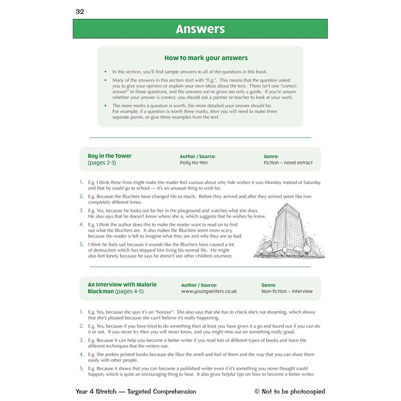 Our brilliant Targeted Question Book 2 for Year 4 pupils is jam-packed with even more Reading Comprehension practice! It contains more engaging texts (at the same level as Book 1) — including fiction, non-fiction and poetry — that cover a diverse range of styles and eras, from well-known classics to modern authors. Each text is accompanied by practice questions to help build pupils’ comprehension skills, and there are full answers at the back. There are also handy online extras, including a pupil progress chart.