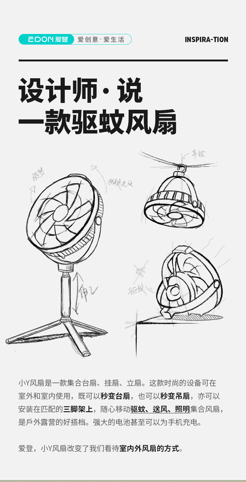 【低至89元!】Edon爱登E908收纳净化扇 E813桌面usb宿舍学生电风扇 E708无线风扇