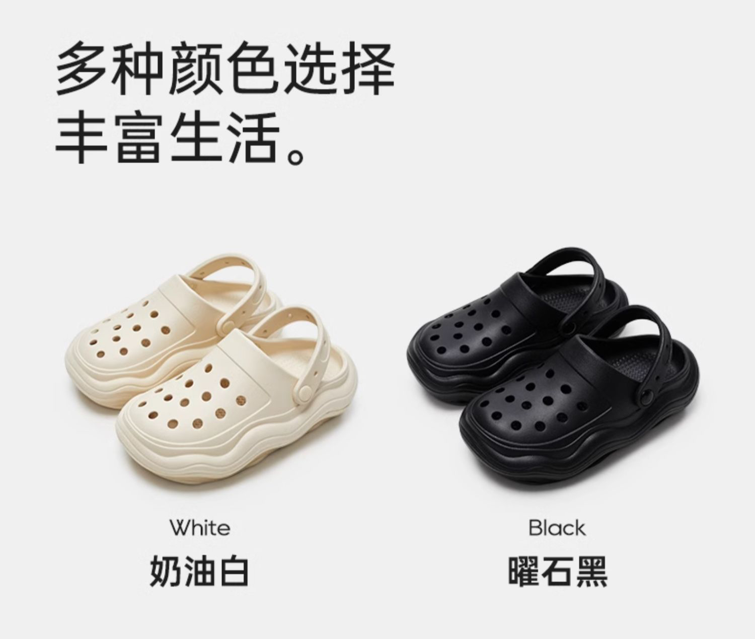 注意:关于洞洞鞋磨脚情况,脚部出汗后与鞋内材质摩擦会导致磨脚情况发生,可以穿袜子几天或者贴防磨贴(贴创可贴)来解决;新鞋出厂后材质都有些偏硬,日常穿着行走时摩擦力会大一些,穿一段时间后鞋子材质变软后也不会有磨脚的情况发生了,此类情况不做售后,下单请知悉!