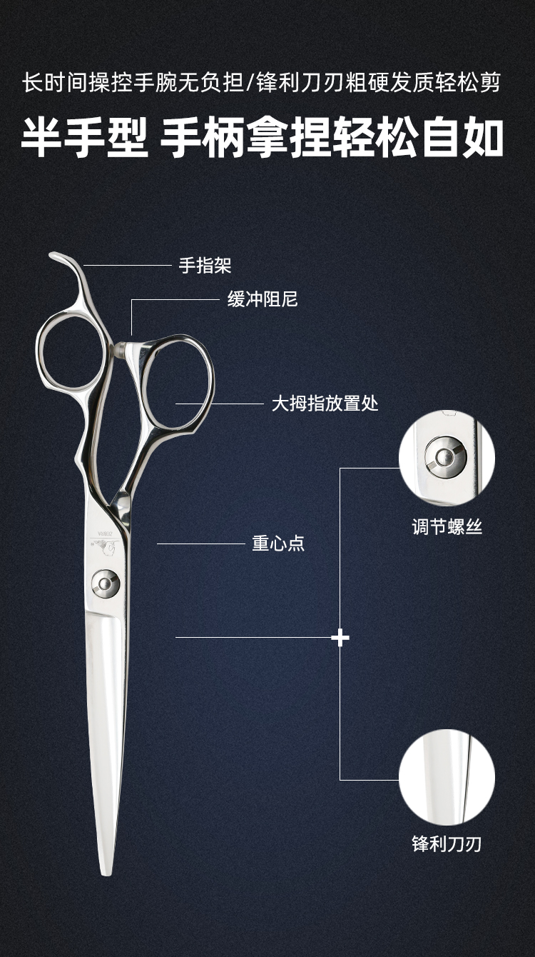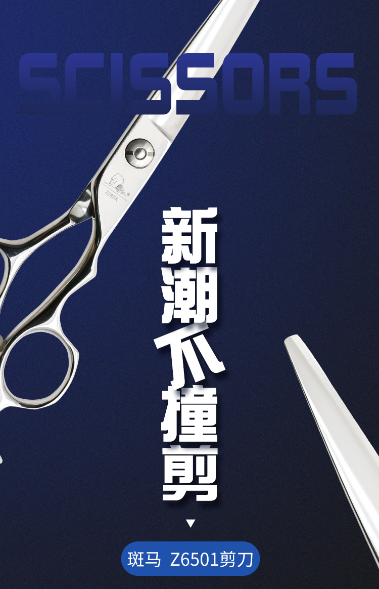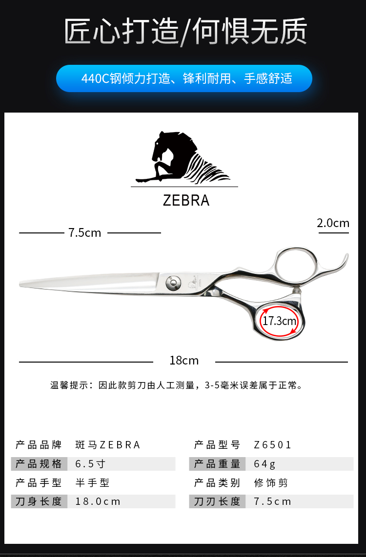 ZEBRA斑马 剪刀 Z6501 锋利/修饰剪/ 大切口/ 平剪/直剪/大干剪/纹理/半手型/6.5寸