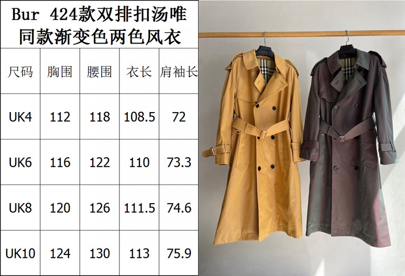 924-7 渠道圆正 高端顾客入 BBR双排扣汤唯同款渐变色两色风衣 167-136穿8码/理想宽松度