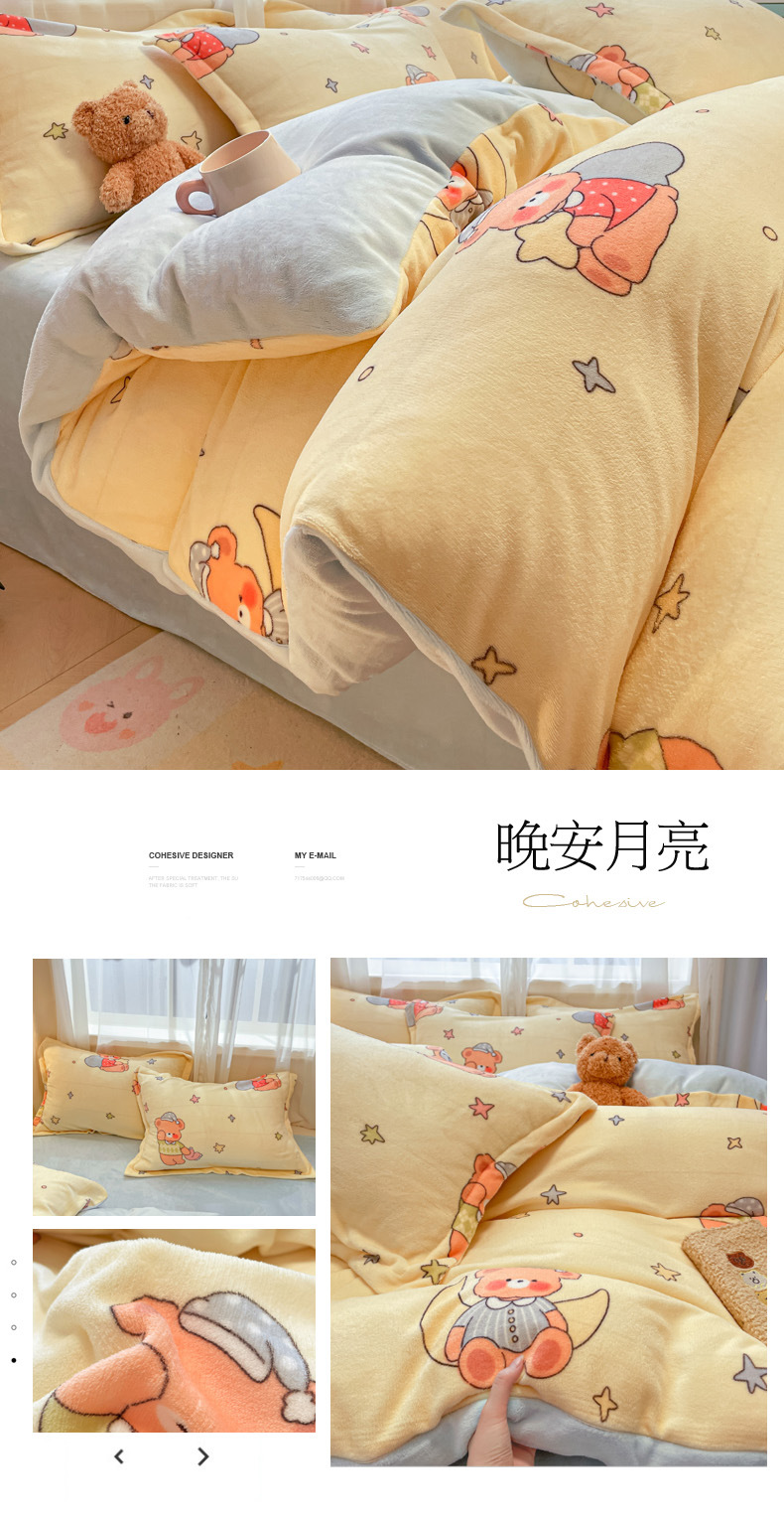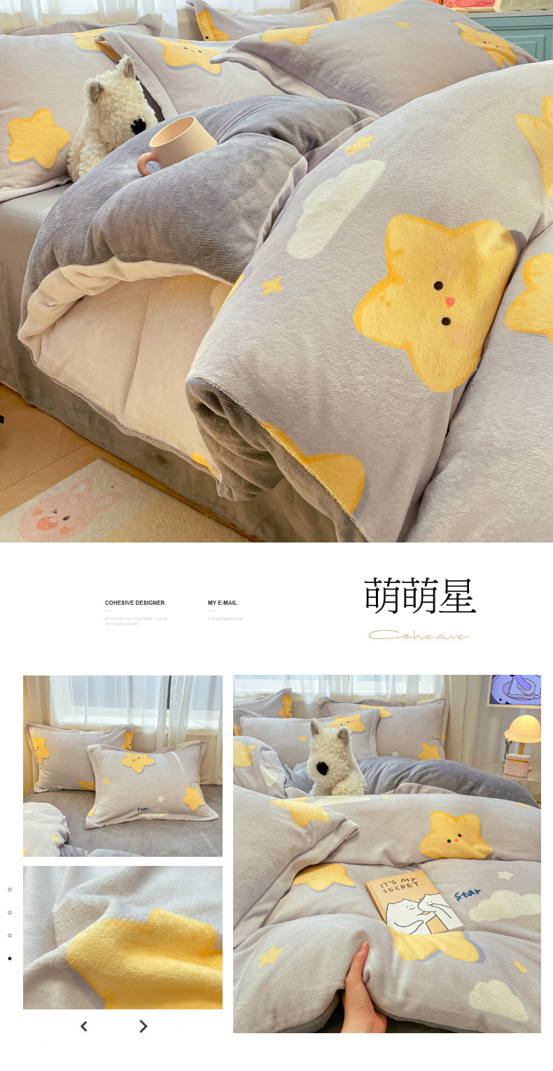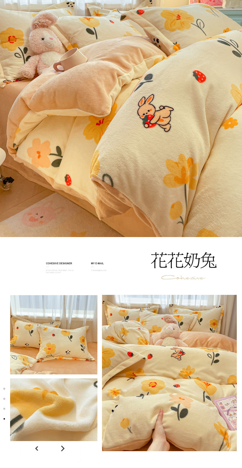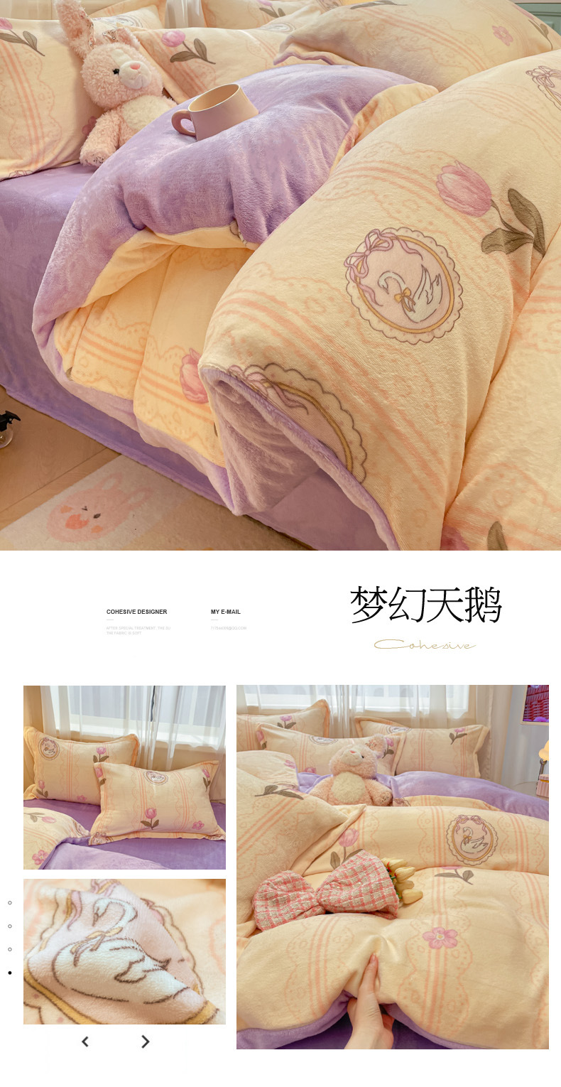 【冬日告别冷被窝!一个人也可以暖暖哒】冬季A类牛奶绒四件套双面加绒保暖单品被套家用床笠,水洗机洗无忧,解放双手。ry