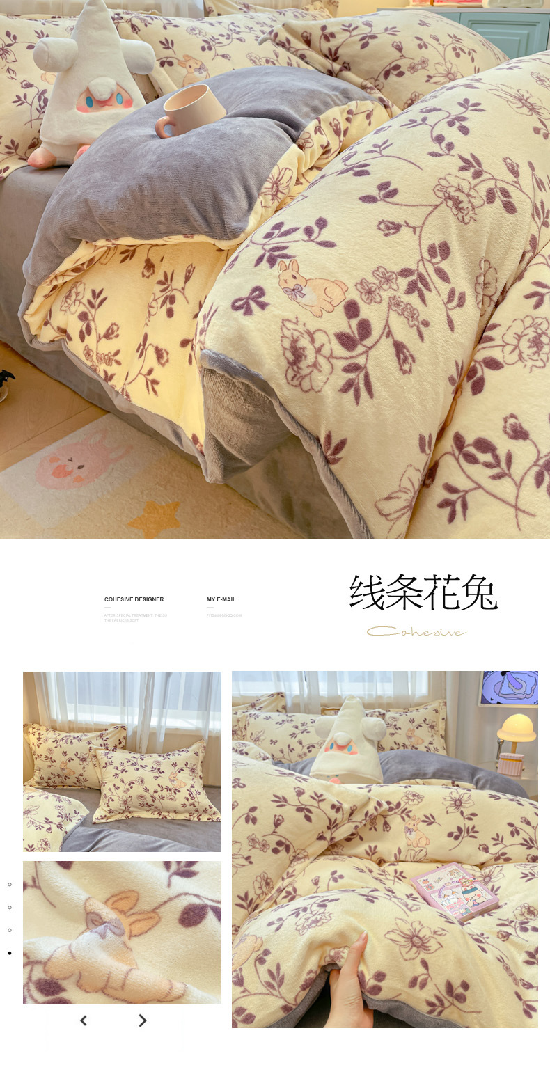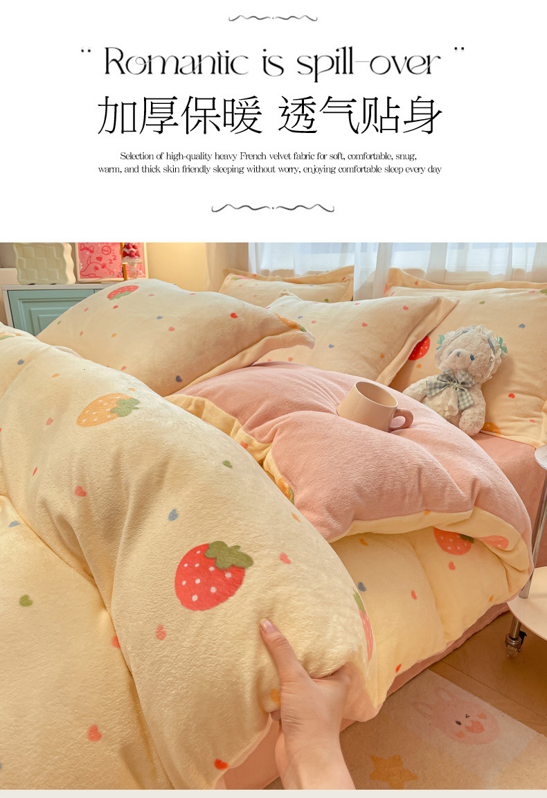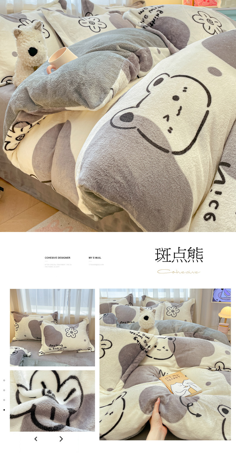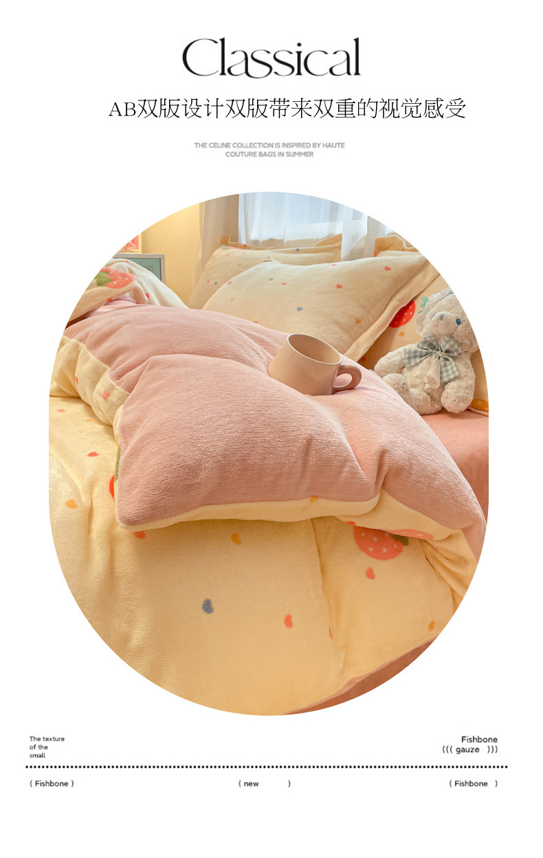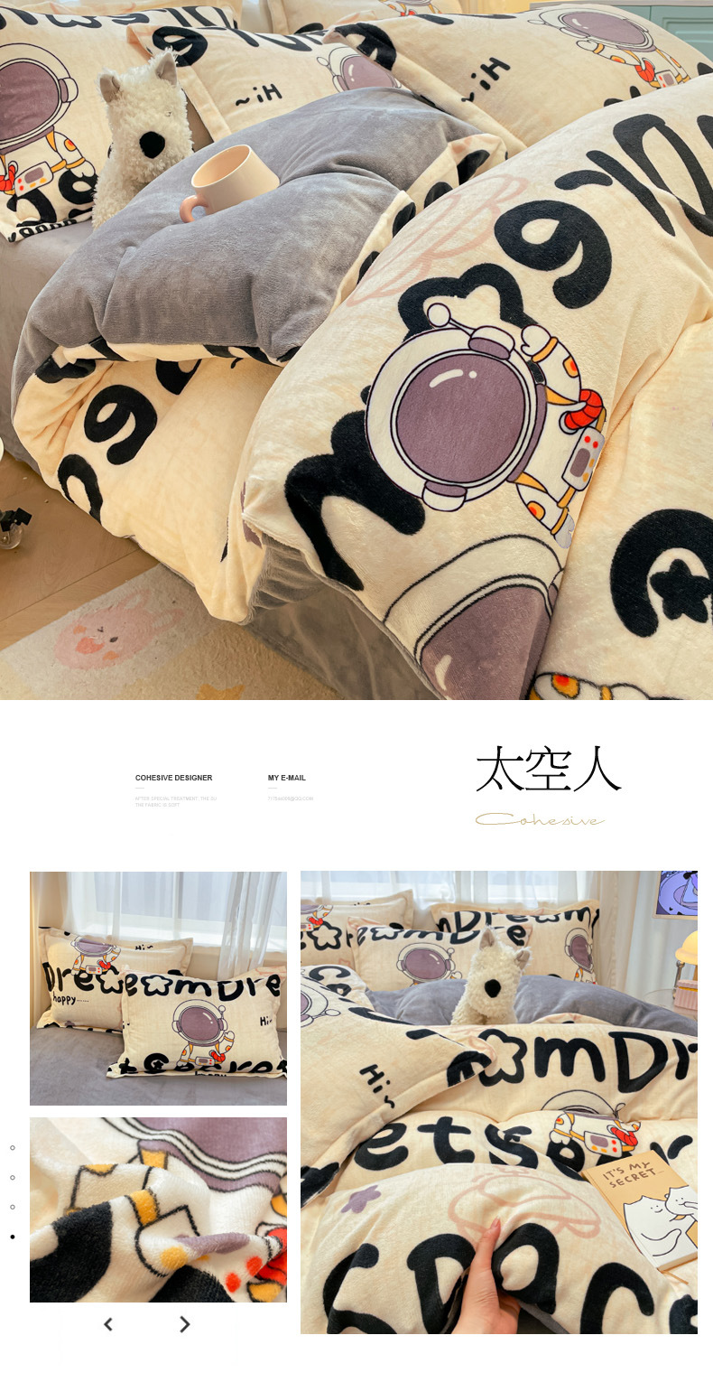 【冬日告别冷被窝!一个人也可以暖暖哒】冬季A类牛奶绒四件套双面加绒保暖单品被套家用床笠,水洗机洗无忧,解放双手。ry
