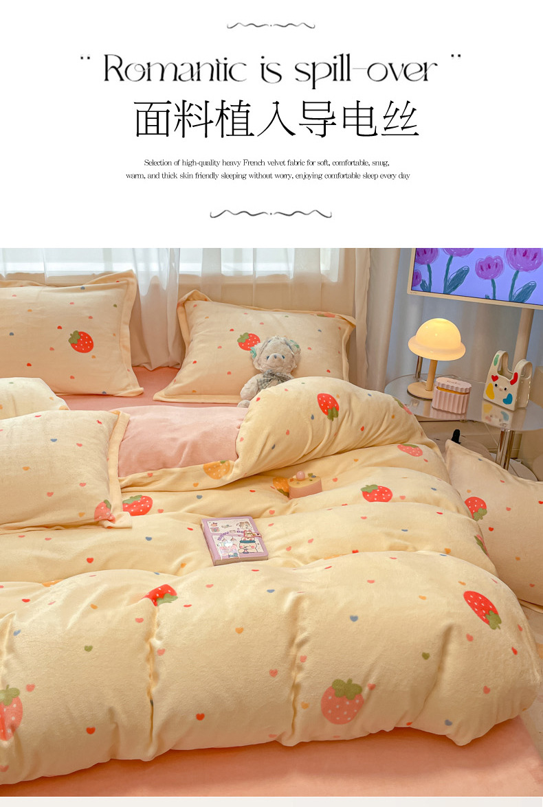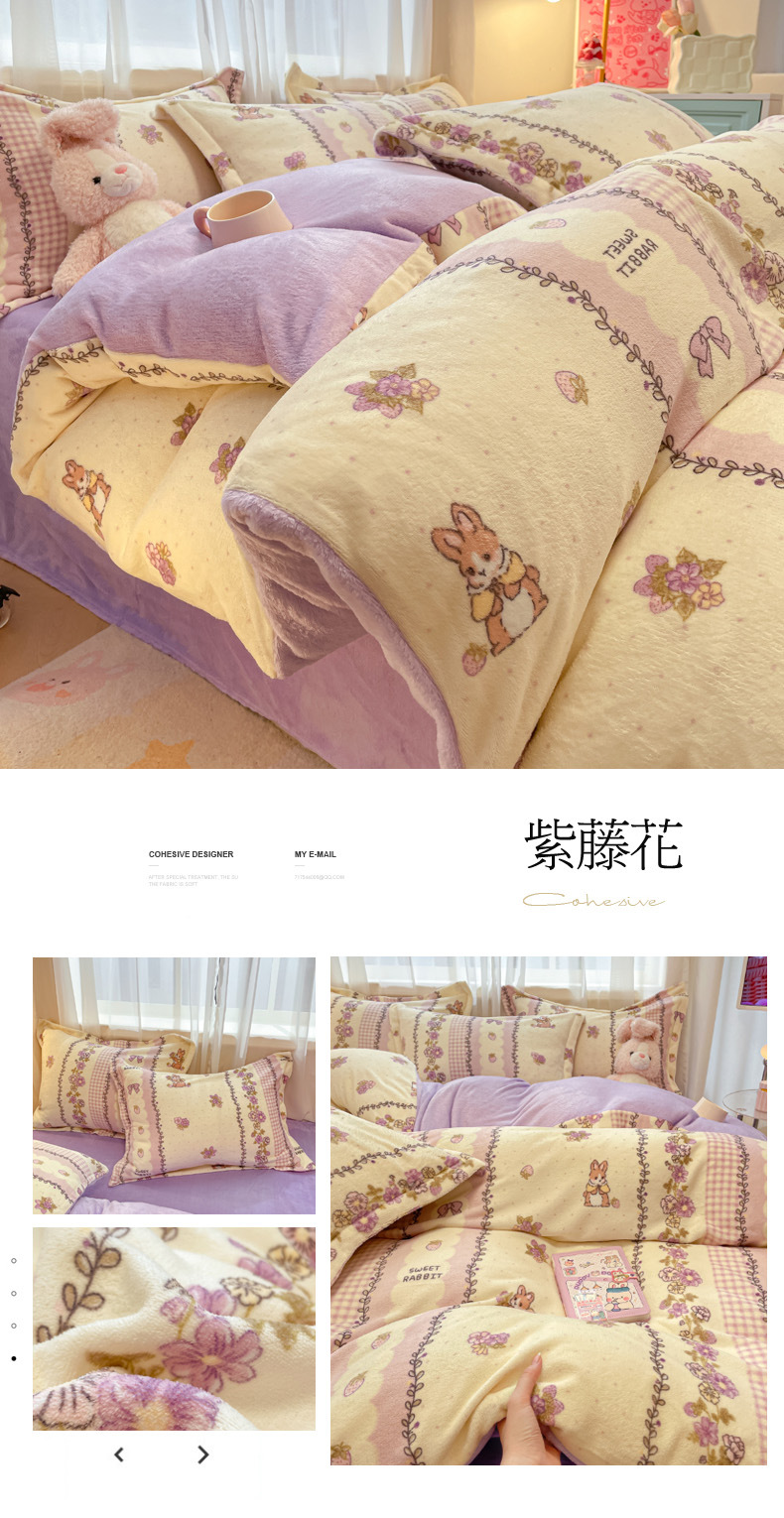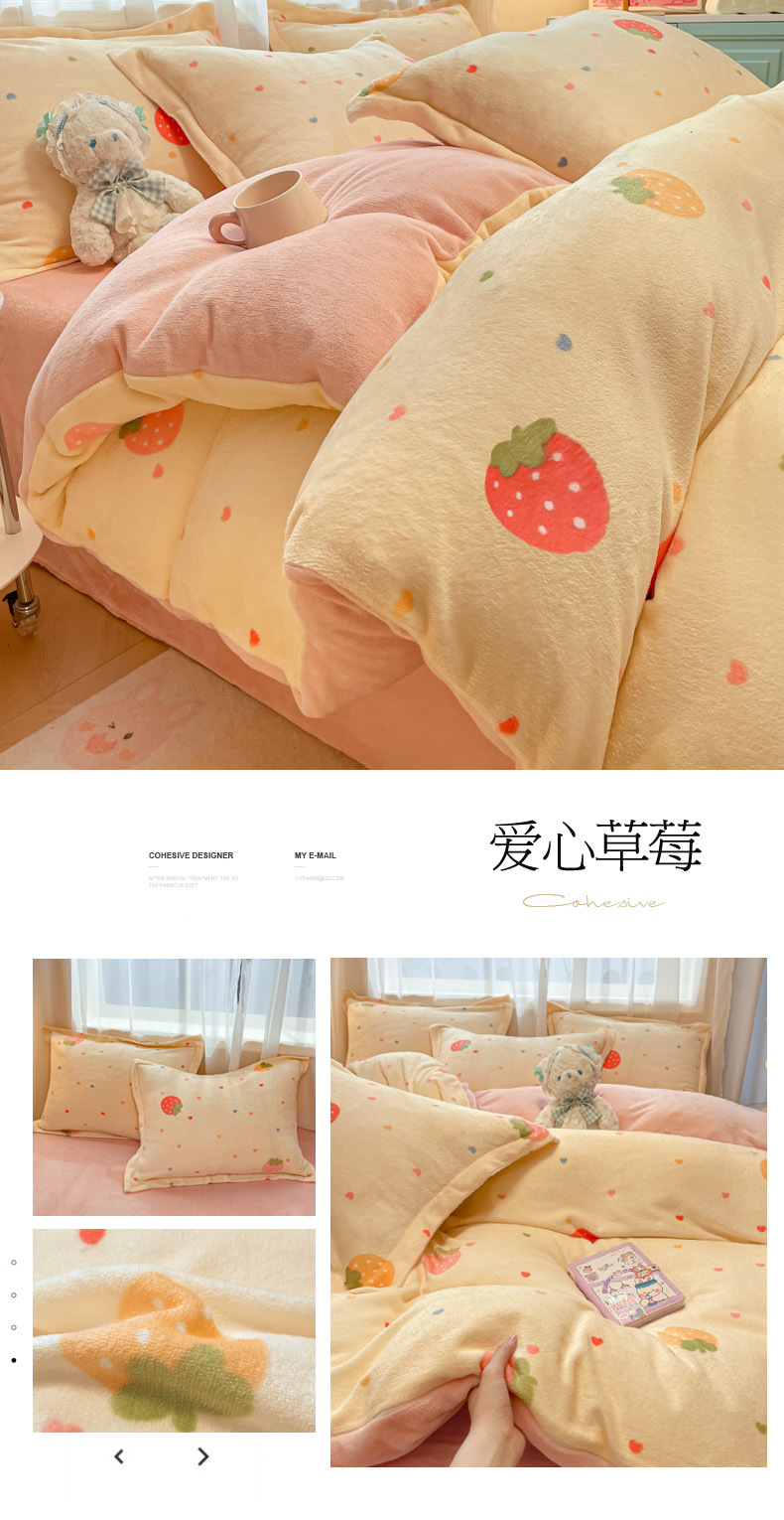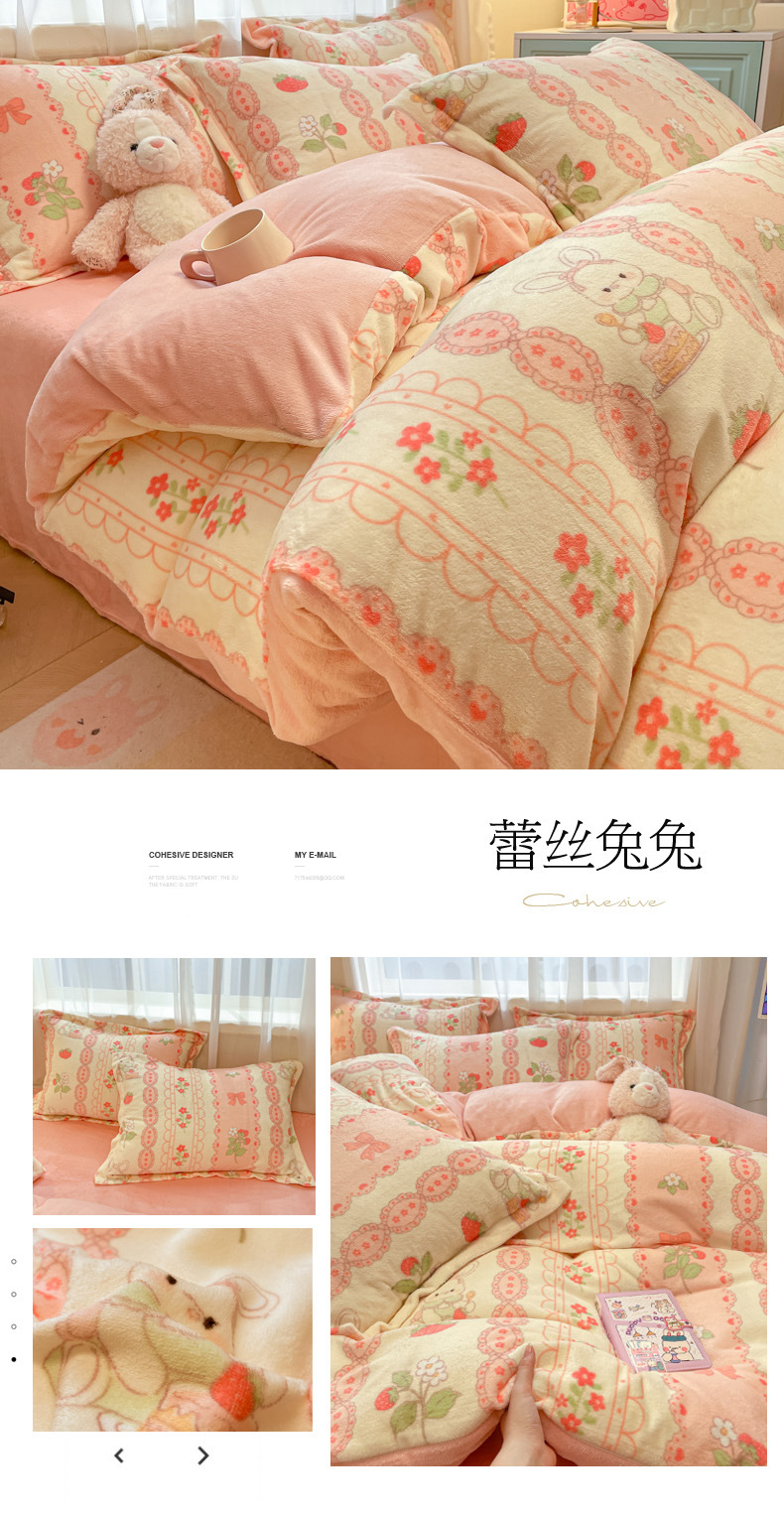 【冬日告别冷被窝!一个人也可以暖暖哒】冬季A类牛奶绒四件套双面加绒保暖单品被套家用床笠,水洗机洗无忧,解放双手。ry
