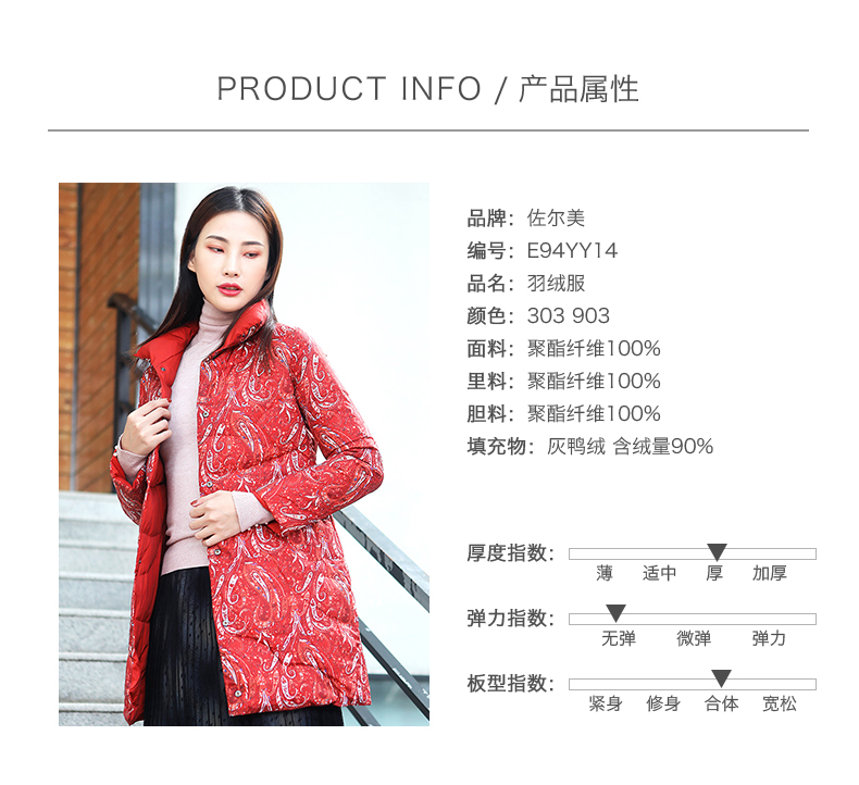 佐尔美冬季新款时尚双穿加厚短款羽绒服女立领E94YY14