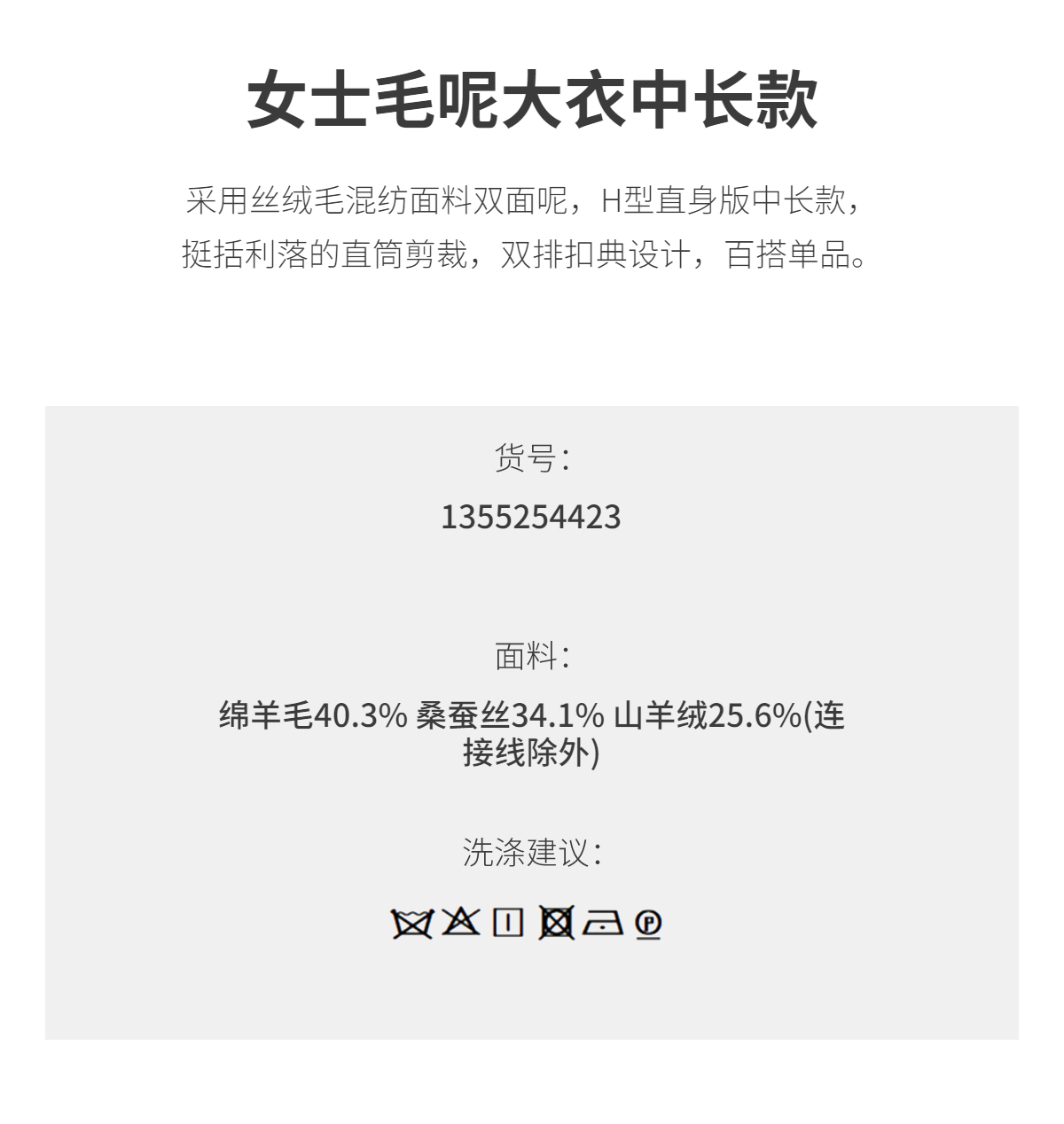 商场同款PURE TOUCH女装25秋冬新款丝绒毛混纺双面呢大衣H型毛呢