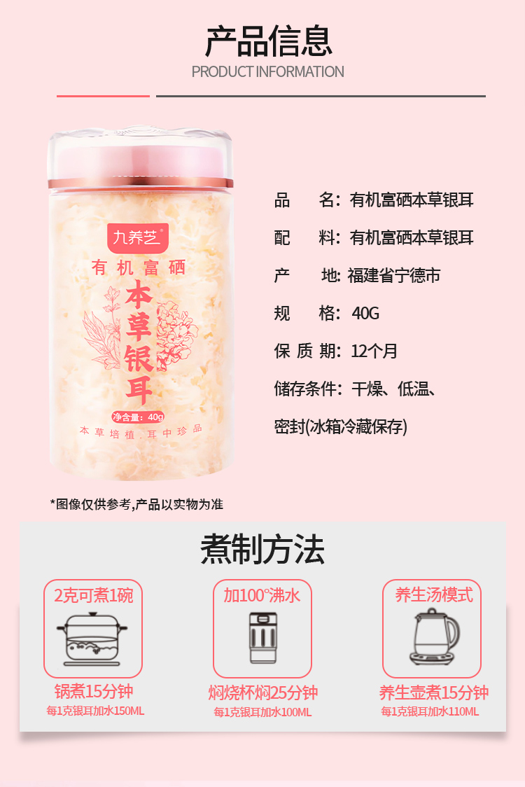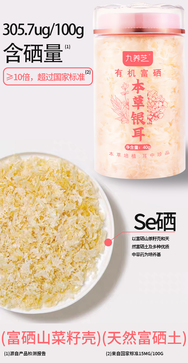 九养芝有机富硒本草银耳 双有机认证含富硒 配料干净更健康 商品图0