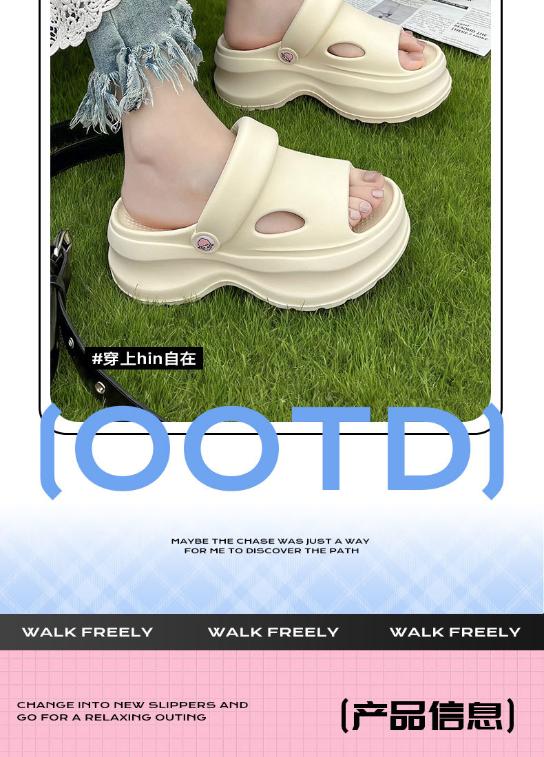 蚂蚁之恋夏季新品时尚潮系透气轻尚纯色女款居家外穿厚底凉拖鞋