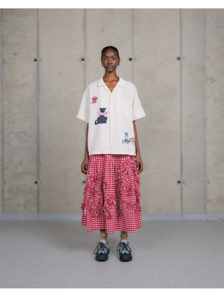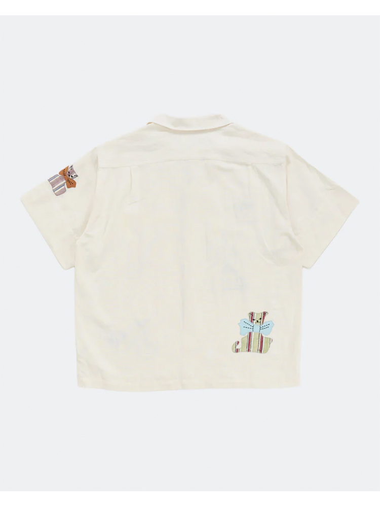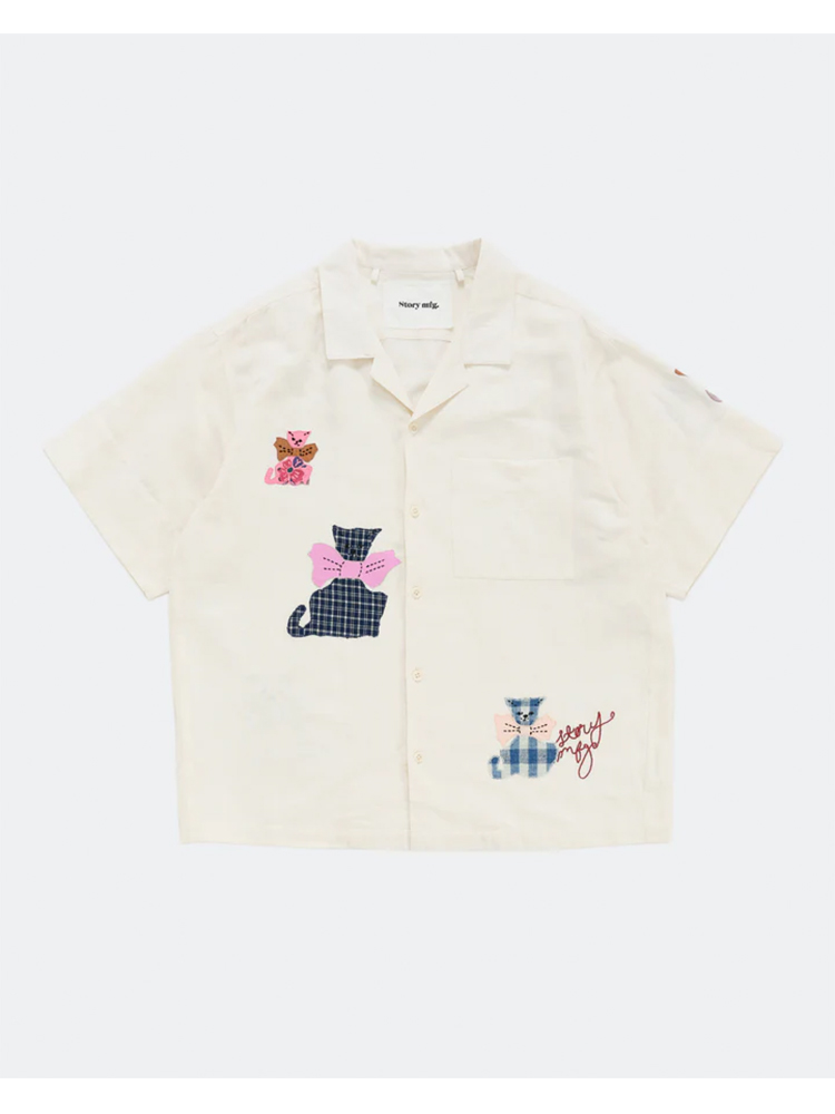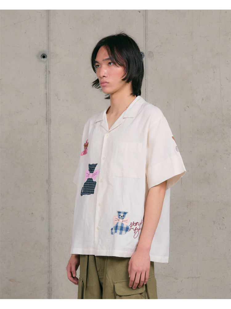 Story mfg GREETINGS SHIRT 男女款手工刺绣拼贴宽松短袖衬衫