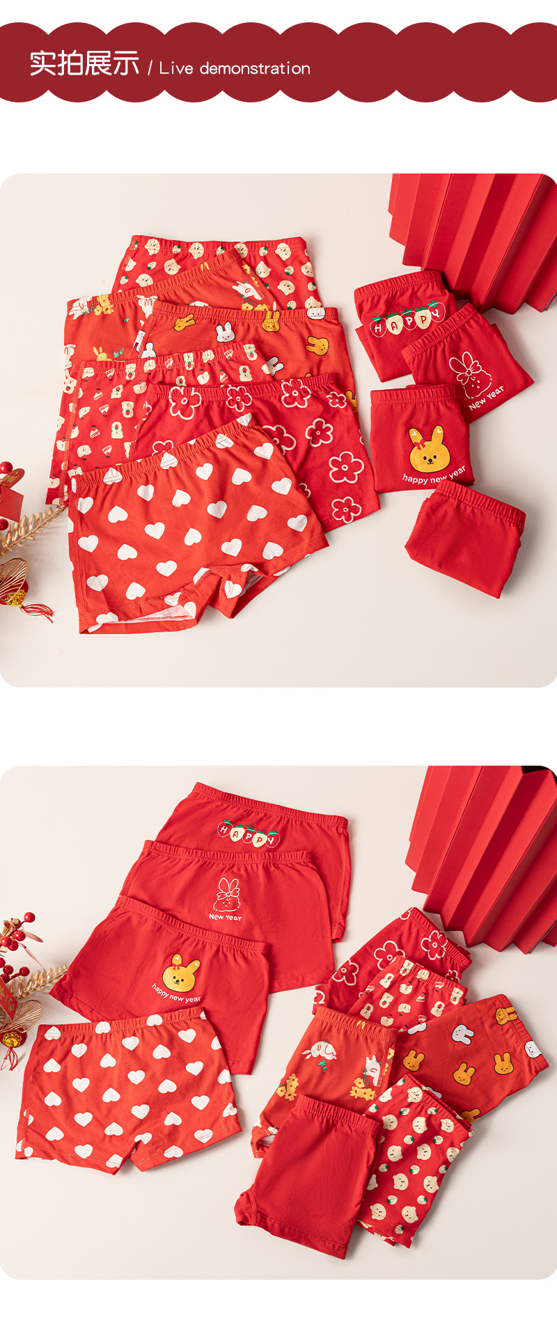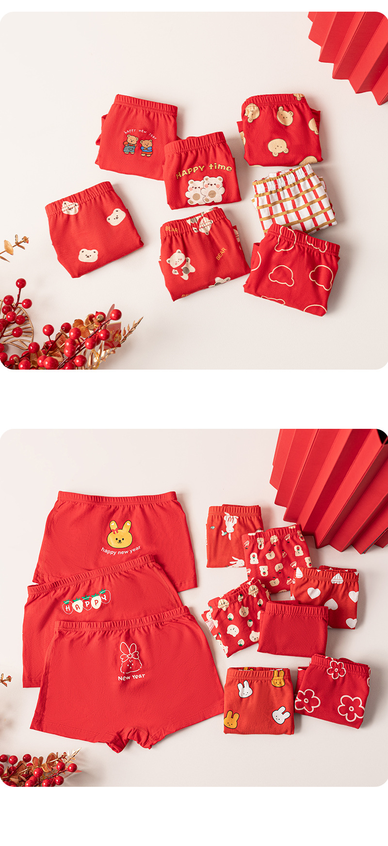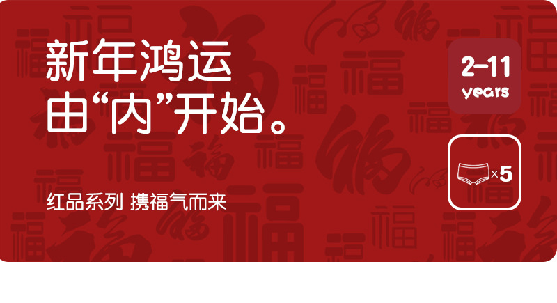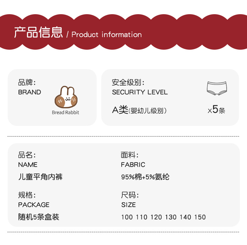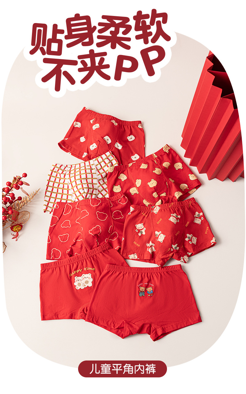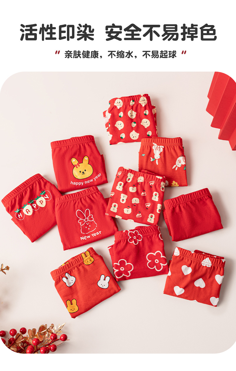 【39元5条盒装 】面包兔新年喜庆红色儿童A类纯棉内裤