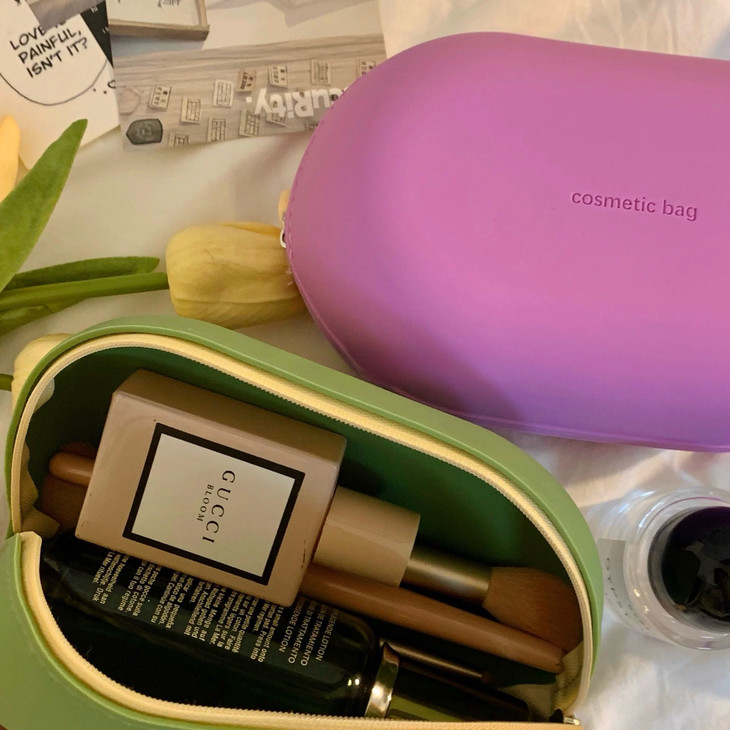 ✨硅胶包,旅行必备好物!最近去短途旅行 这款硅胶化妆包,真的太方便了‼️‼️ 手感柔软又耐用,防水效果也不错,洗漱用品放进去完全不用担心漏水。 🥁容量很大,化妆刷、护肤品、牙刷都能装下,手提设计也很方便,出门不用再背大包小包