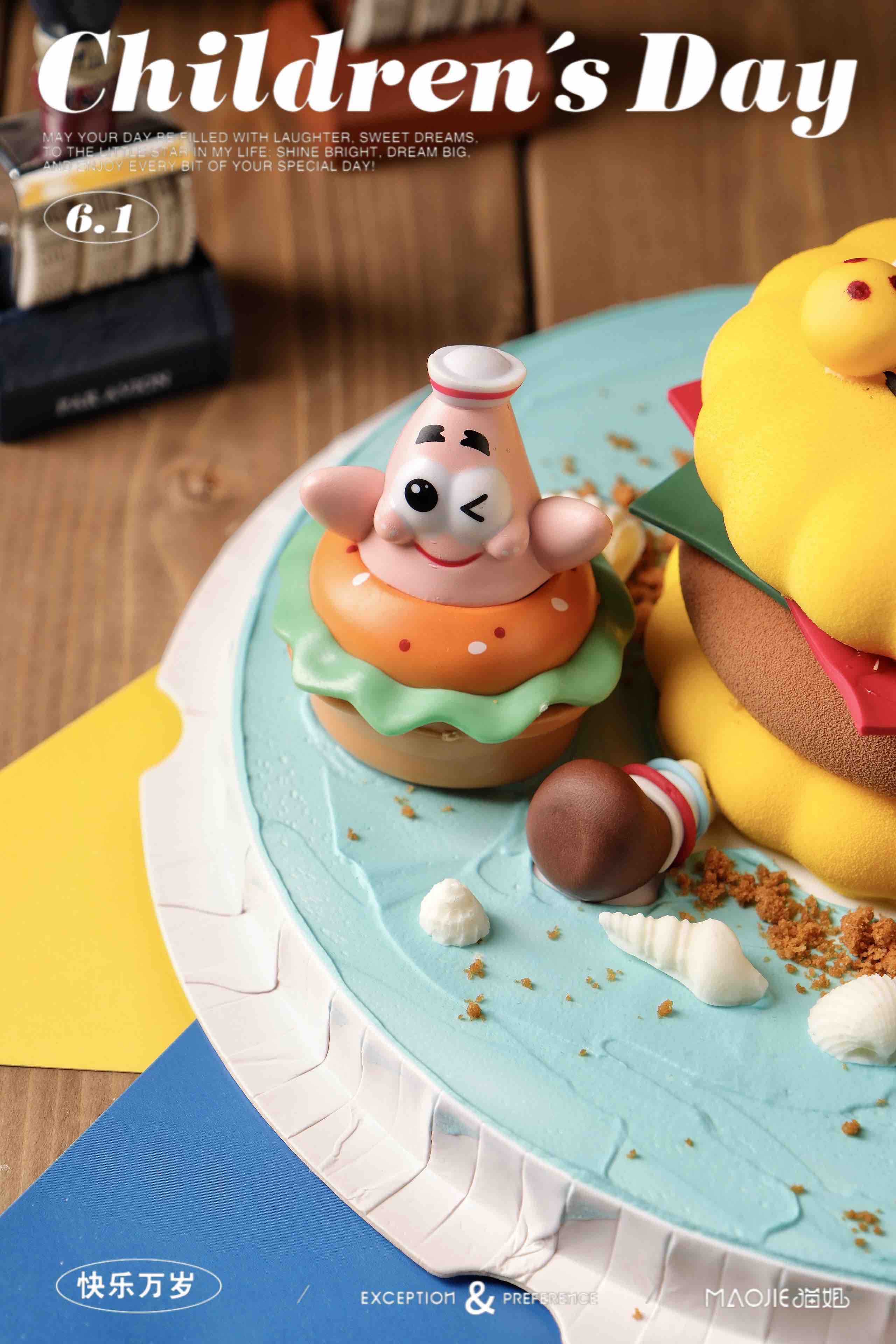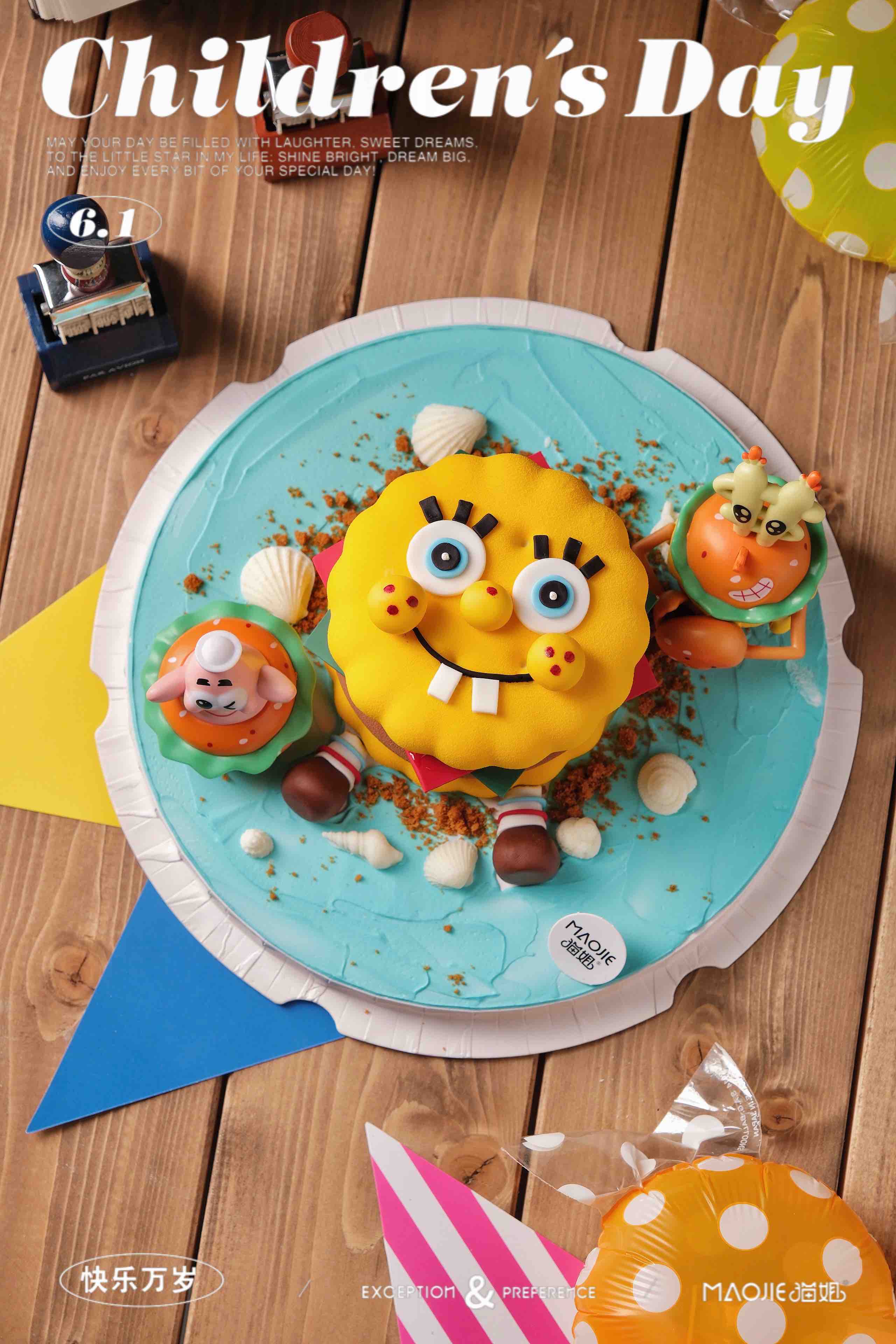 🌈把海绵宝宝从比奇堡搬到蛋糕上啦😍emoji造型萌化了,