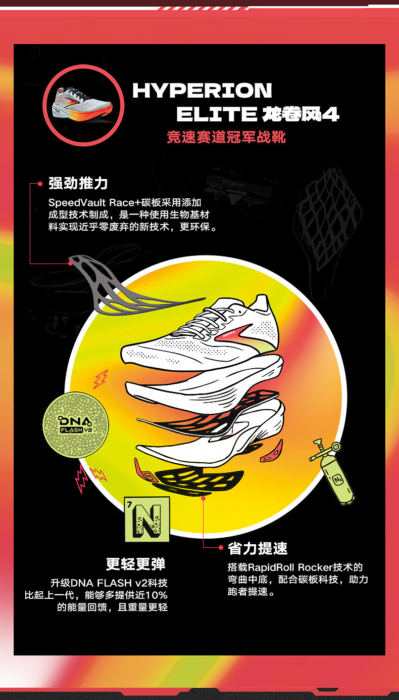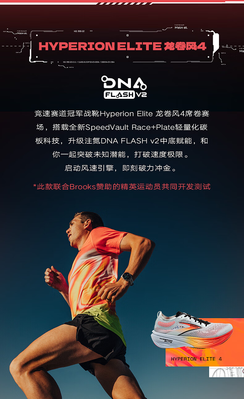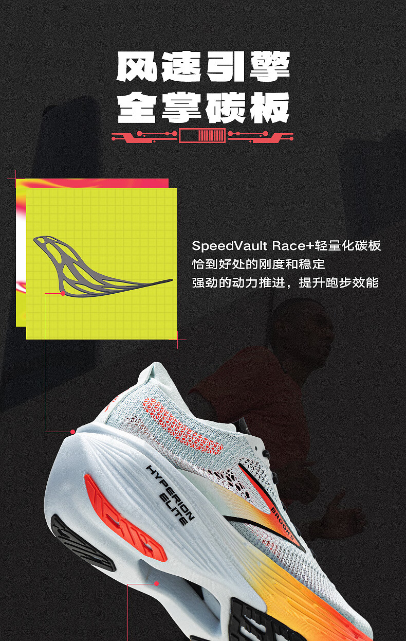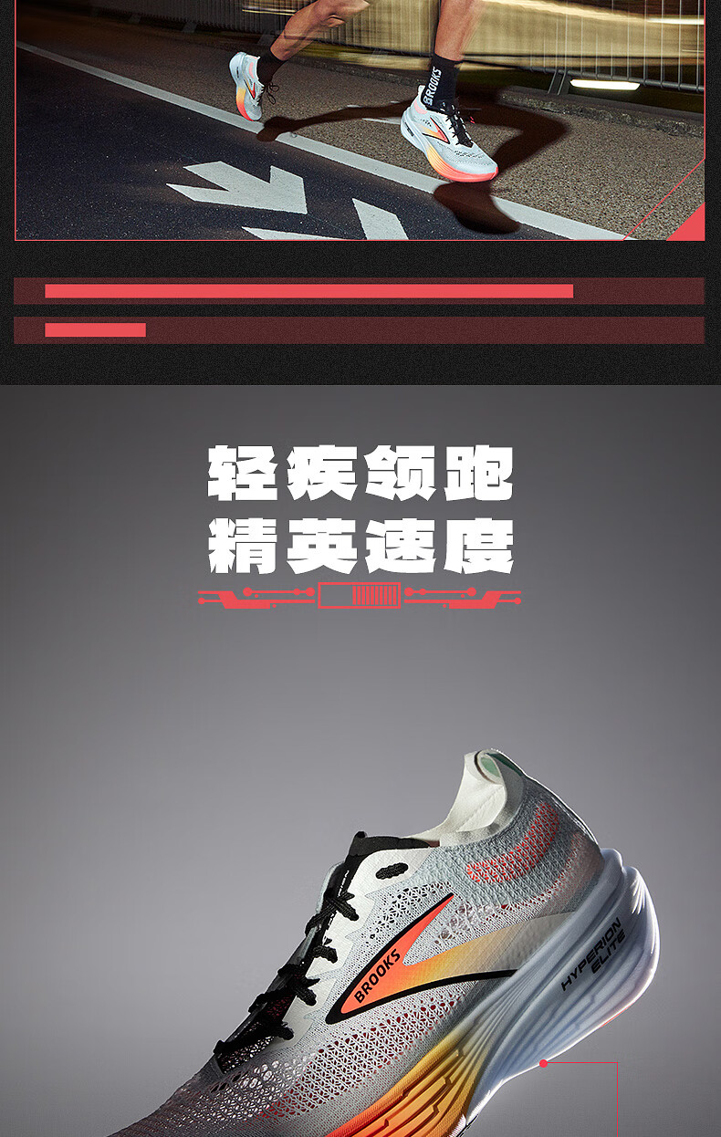 布鲁克斯 Brooks Hyperion Elite 4男女款轻量透气 马拉松竞速碳板 运动跑步鞋