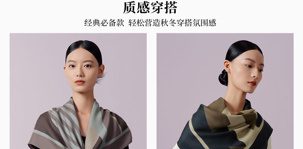 万事利双面印花丝羊毛围巾-曲的圣礼