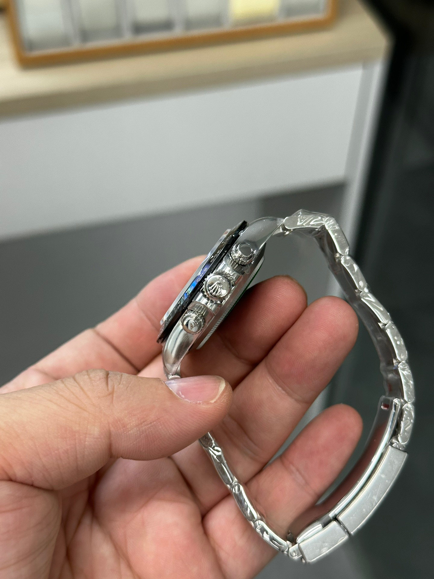 (严选)clean大名鼎鼎C厂劳力士迪通拿系列,熊猫迪!出厂自带专柜品质!ar厂的表带,头粒与表壳配合紧致,不会像之前n厂壳装ar厂表带一样头粒松垮!c厂陶瓷圈,铂金刻度!(严选)劳力士迪通拿系列,熊猫迪!出厂自带专柜品质!ar厂的表带,头粒与表壳配合紧致,不会像之前n厂壳装ar厂表带一样头粒松垮!c厂陶瓷圈,铂金刻度!buff指针,弥补了n厂之前毛糙感!c厂表盘,刻度丁均有打磨,超强夜光!蓝宝石玻璃做了沉降,高清镀膜!整体腕表加海绵宝宝贴纸量起来厚度是12.4mm,把悟空撕了,加上玻璃做了沉降厚度是12.2mm到12.1mm,真正是专柜厚度!搭载丹东4130机芯,出厂空白机芯,c厂做了和专柜一样劳力士4130机芯logo,而且比之前n厂刻字要清晰很多!出厂就省了众多改装费,妥妥的性价比高,专柜相似度极高!clean厂出品