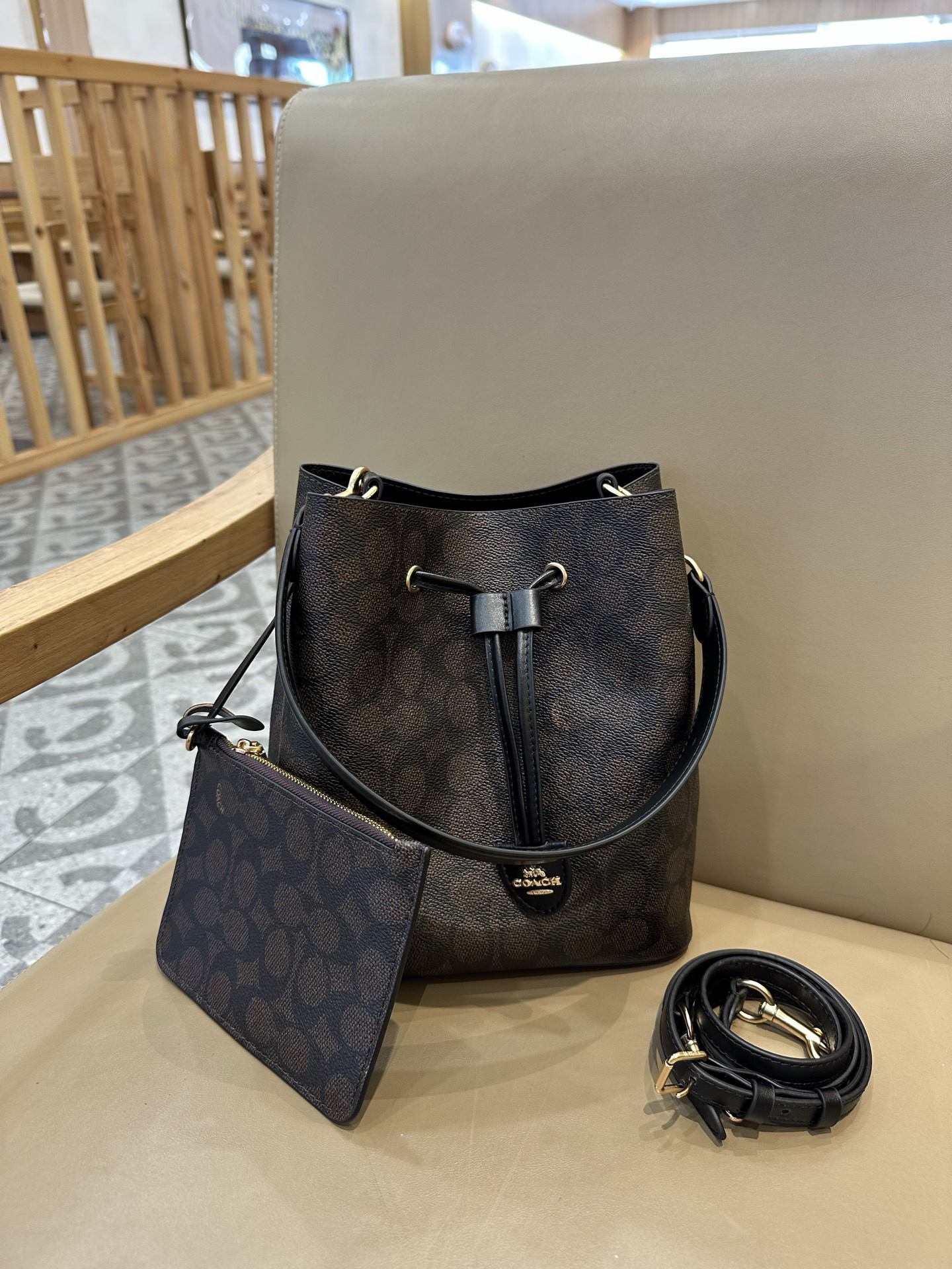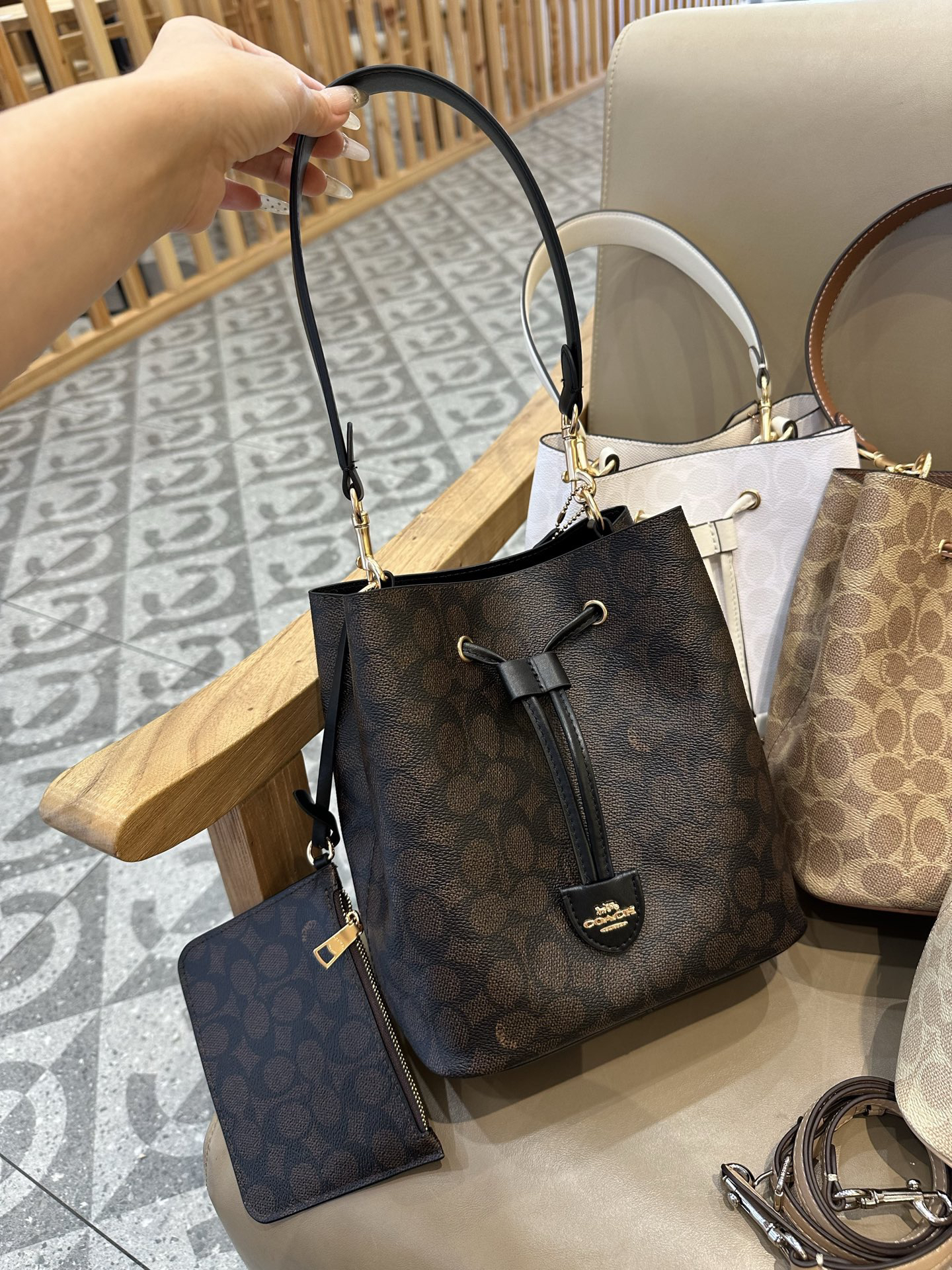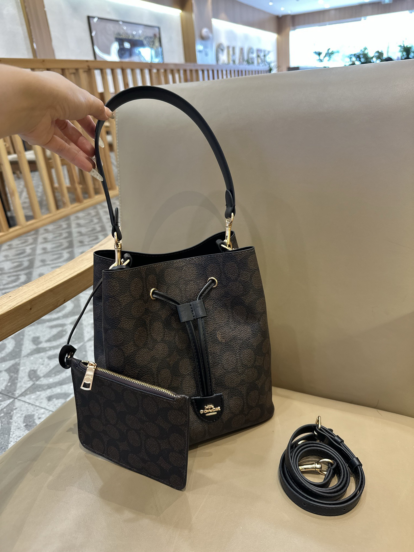 秋冬特惠💰540 蔻驰CBH07 CBH06 经典老花Rowan抽绳单肩斜挎水桶包 子母包 商品图7