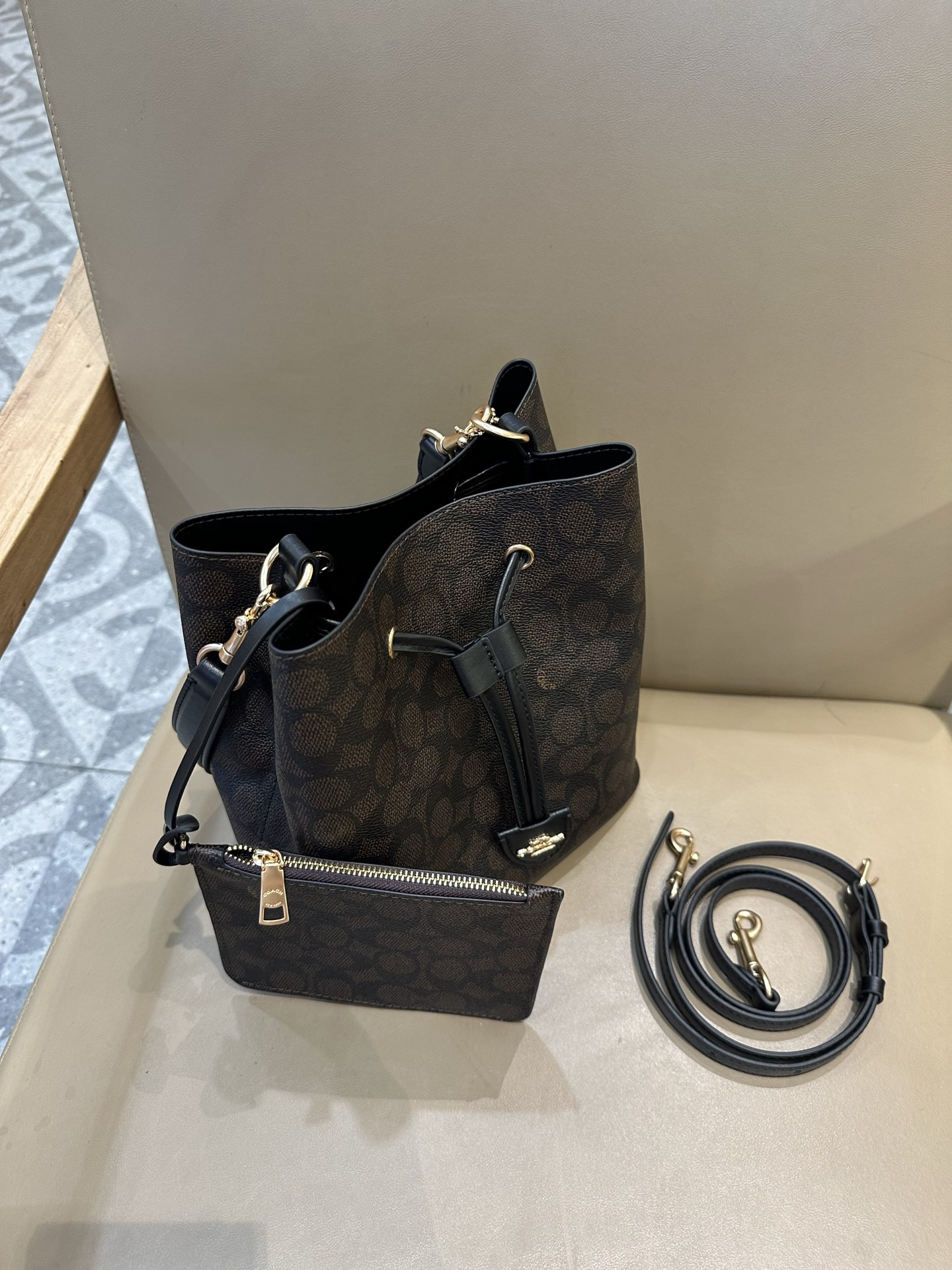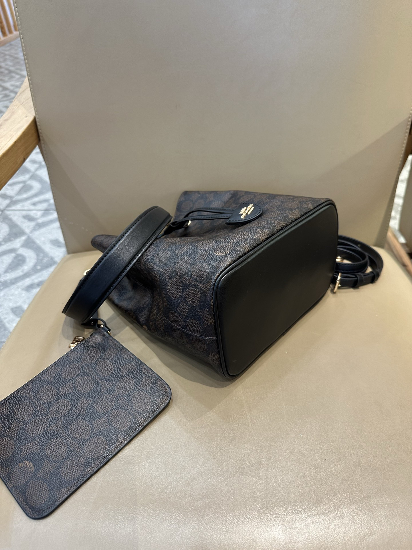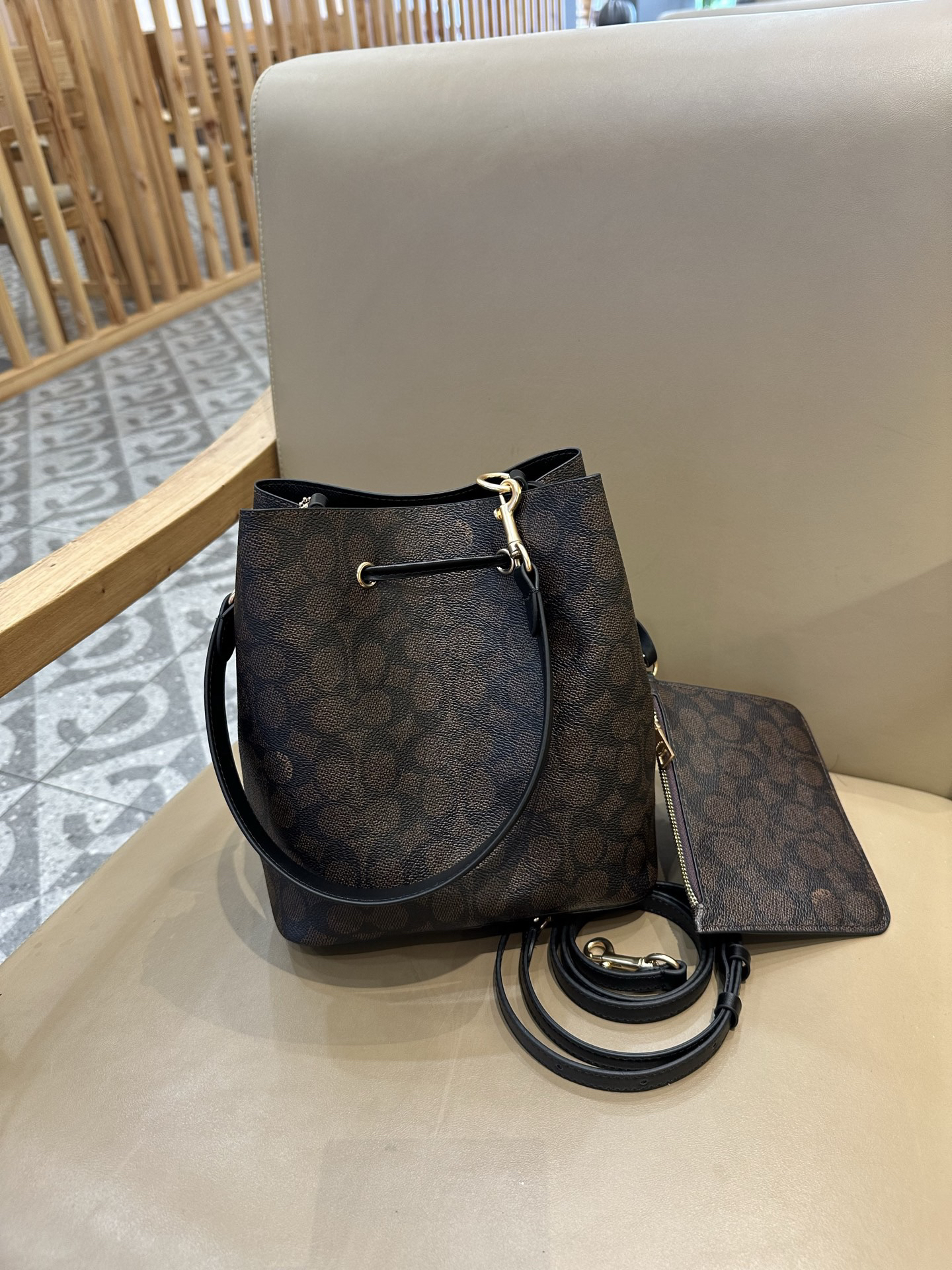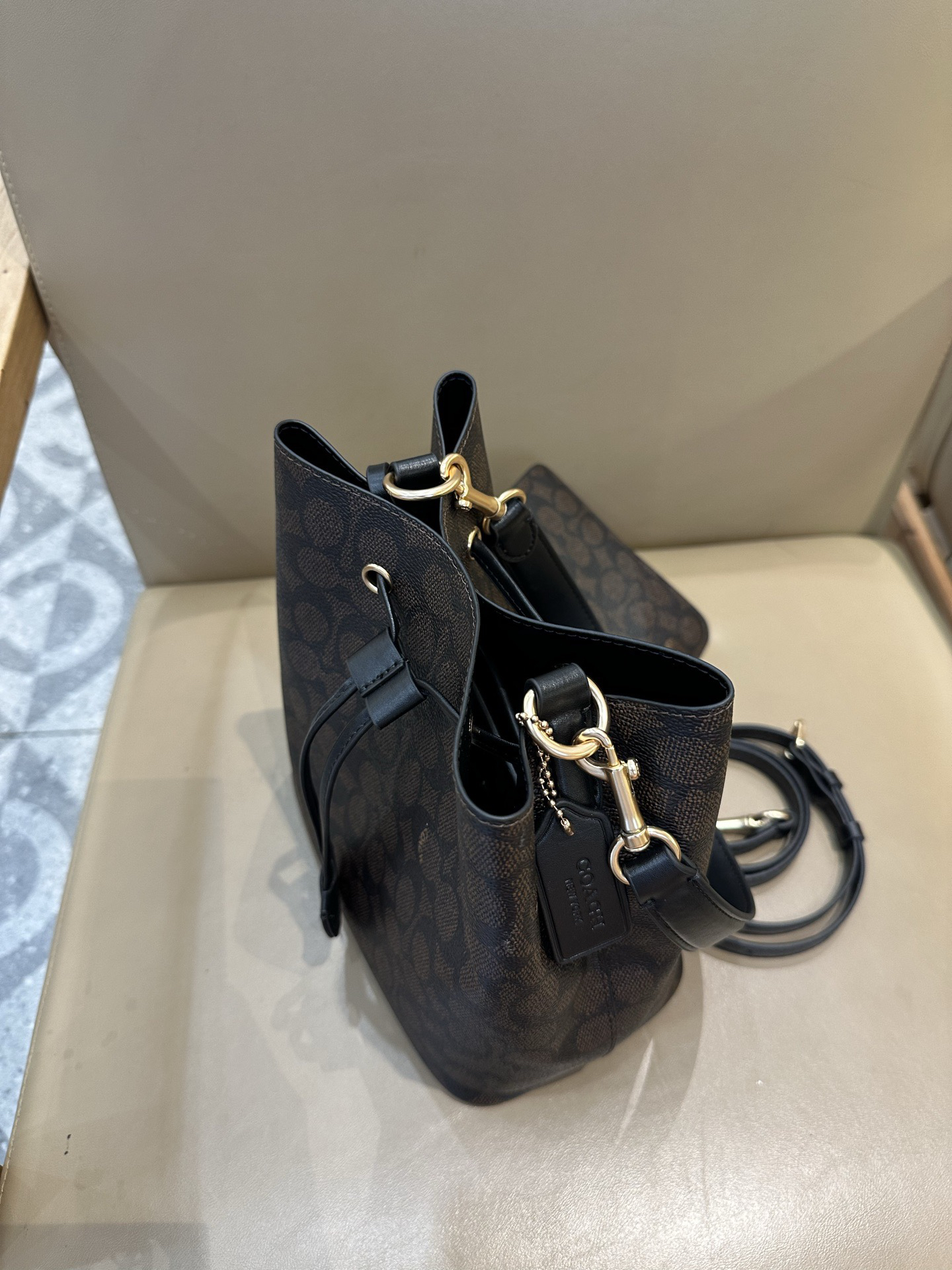 秋冬特惠💰540 蔻驰CBH07 CBH06 经典老花Rowan抽绳单肩斜挎水桶包 子母包 商品图7