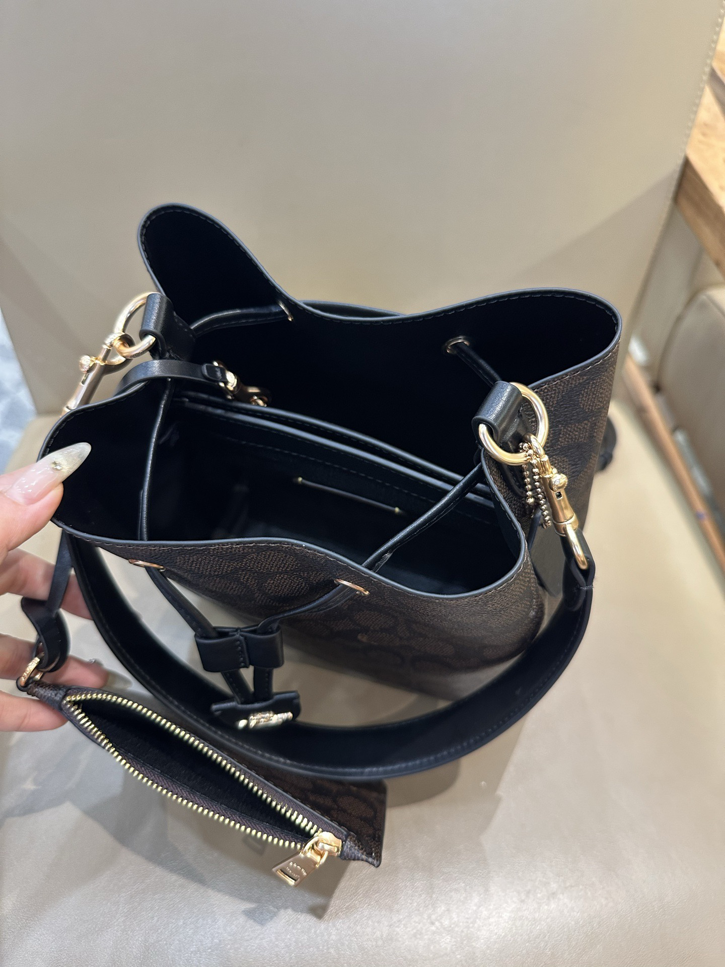 秋冬特惠💰540 蔻驰CBH07 CBH06 经典老花Rowan抽绳单肩斜挎水桶包 子母包 商品图8