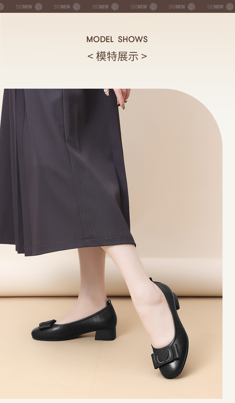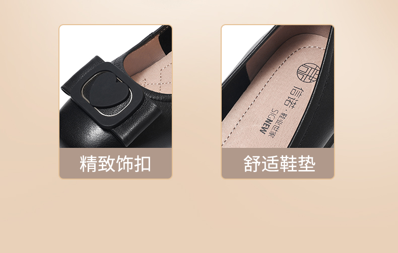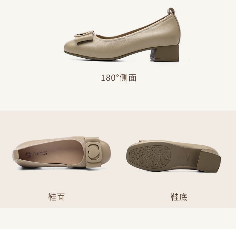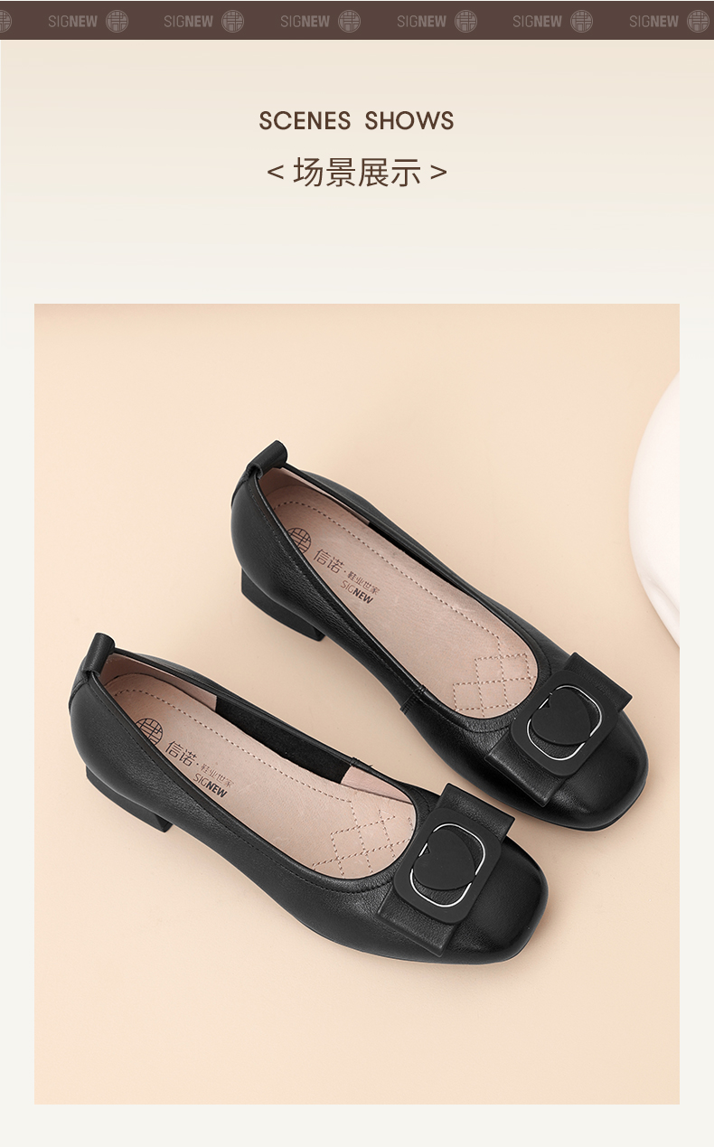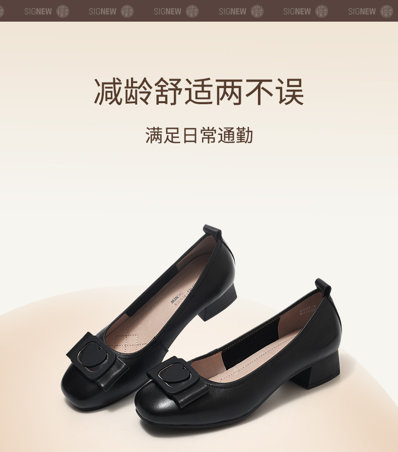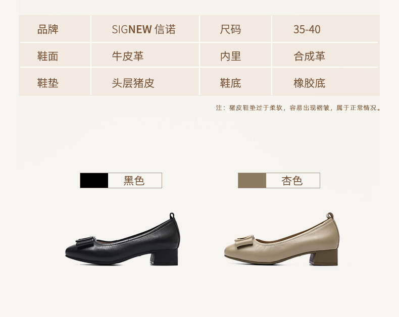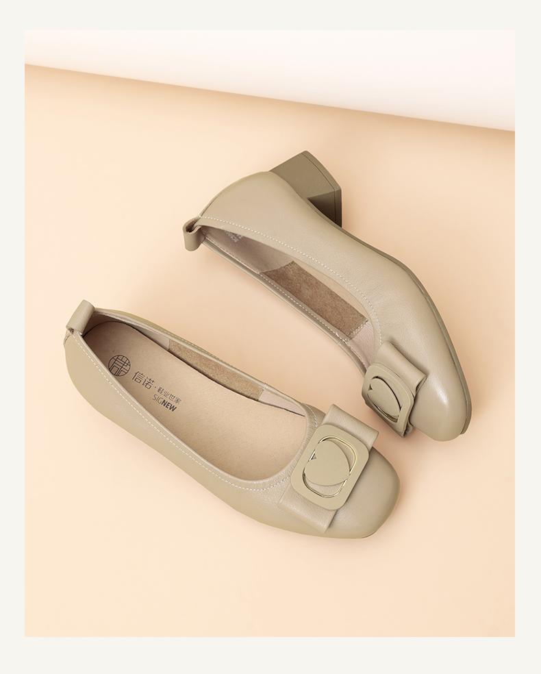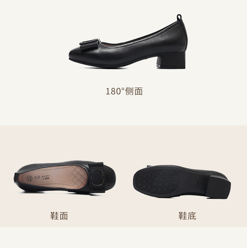 信诺真皮女鞋软底舒适中老年皮鞋2025春季新款粗跟通勤单鞋妈妈鞋5C5009-19