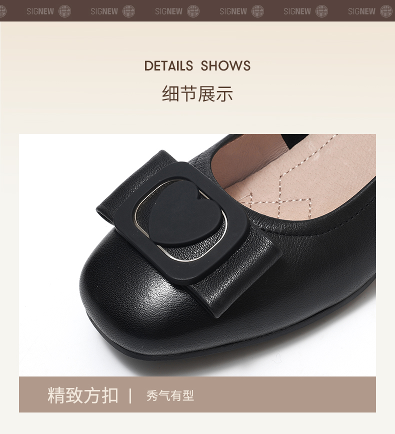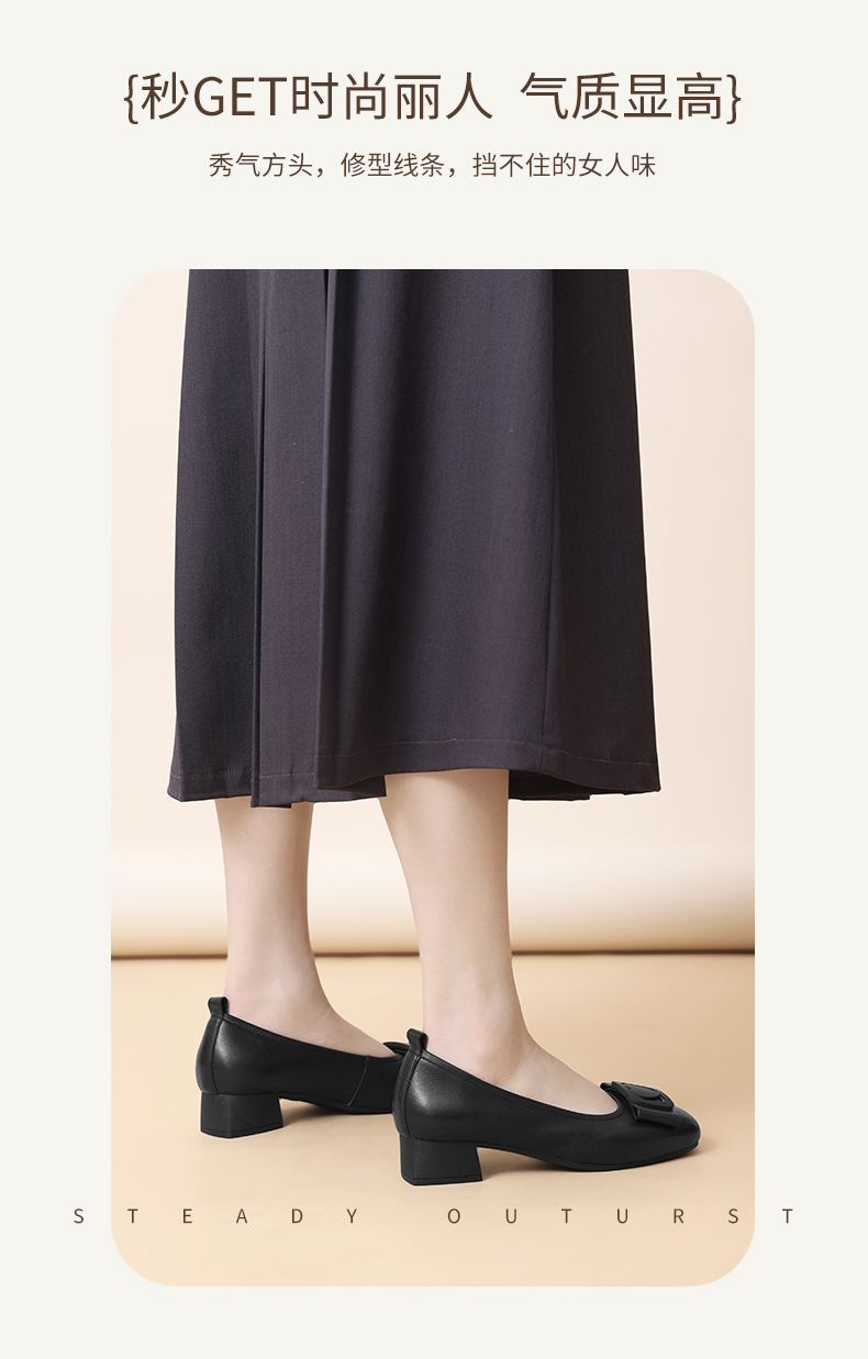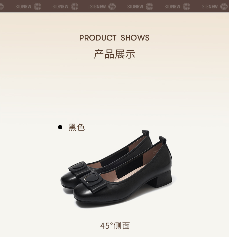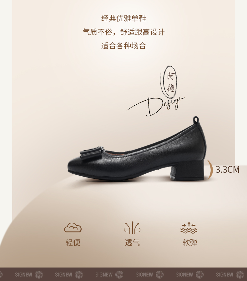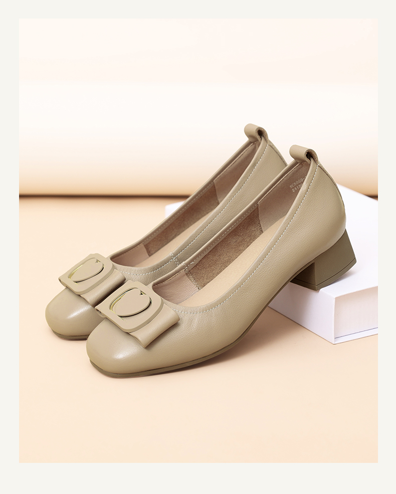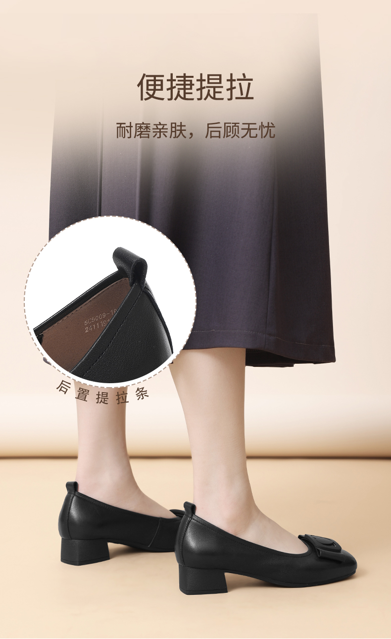 信诺真皮女鞋软底舒适中老年皮鞋2025春季新款粗跟通勤单鞋妈妈鞋5C5009-19