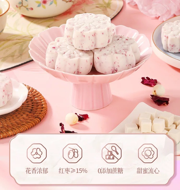 【花香馥郁❗玫瑰流心七白糕】甄选品质原料制作,杏仁/山药/百合/茯苓/芡实/莲子/银耳,颗颗红枣粒,多重口感更营养,花香馥口感细腻香甜红枣流心代餐,下午茶休闲零食糕点L