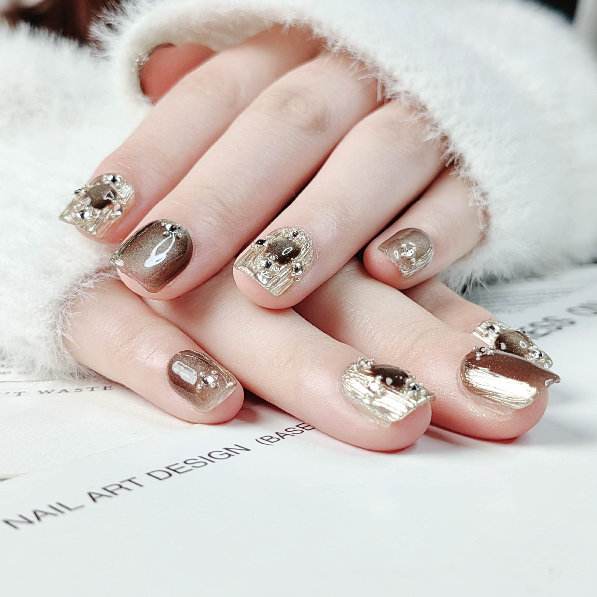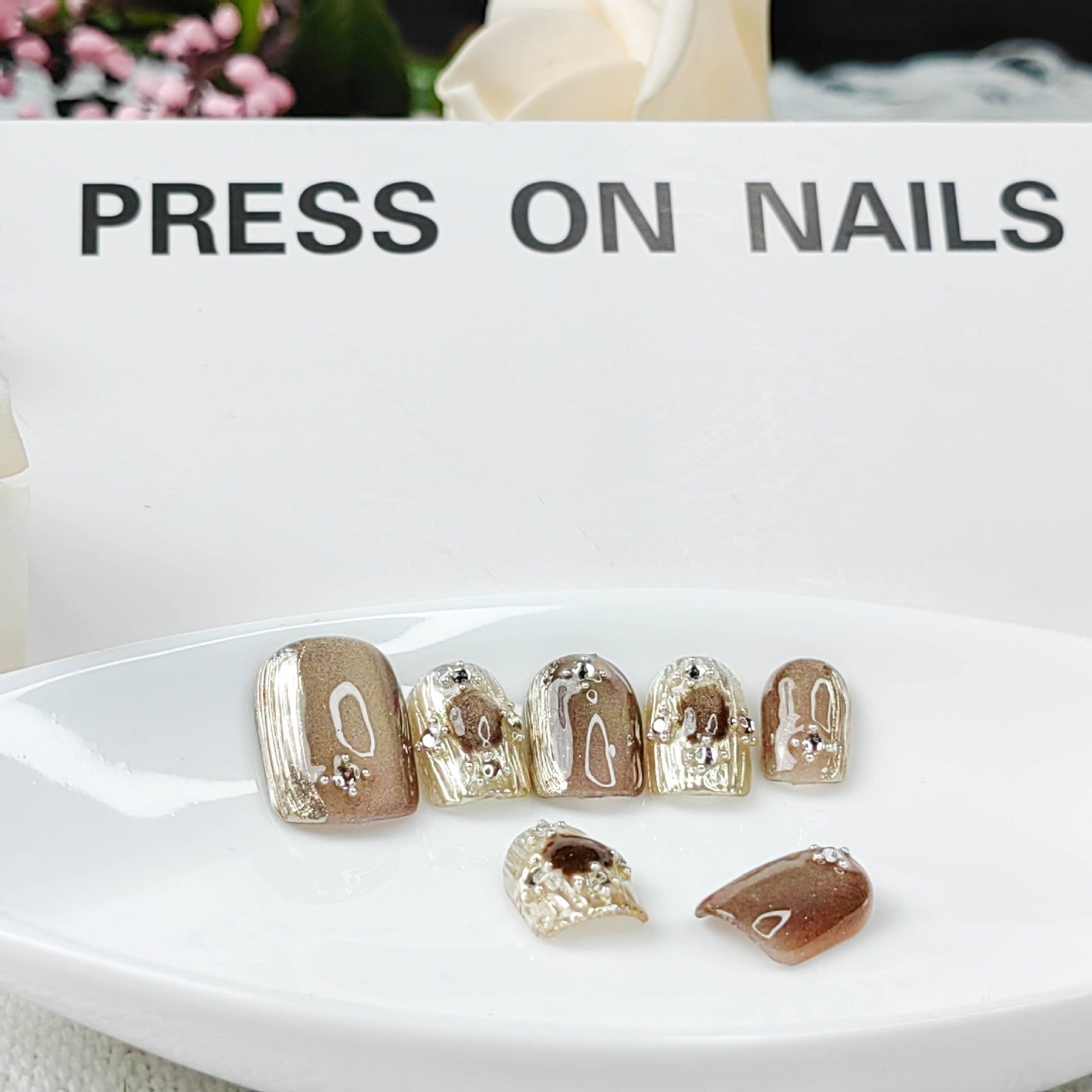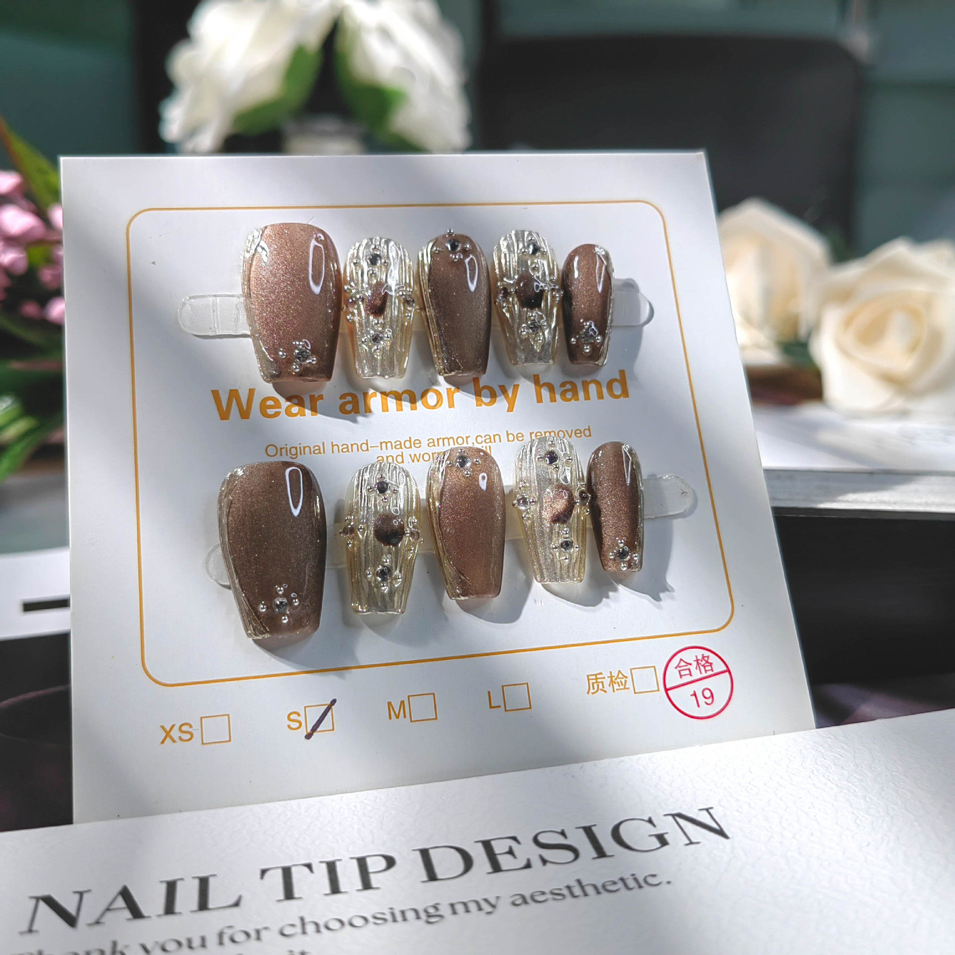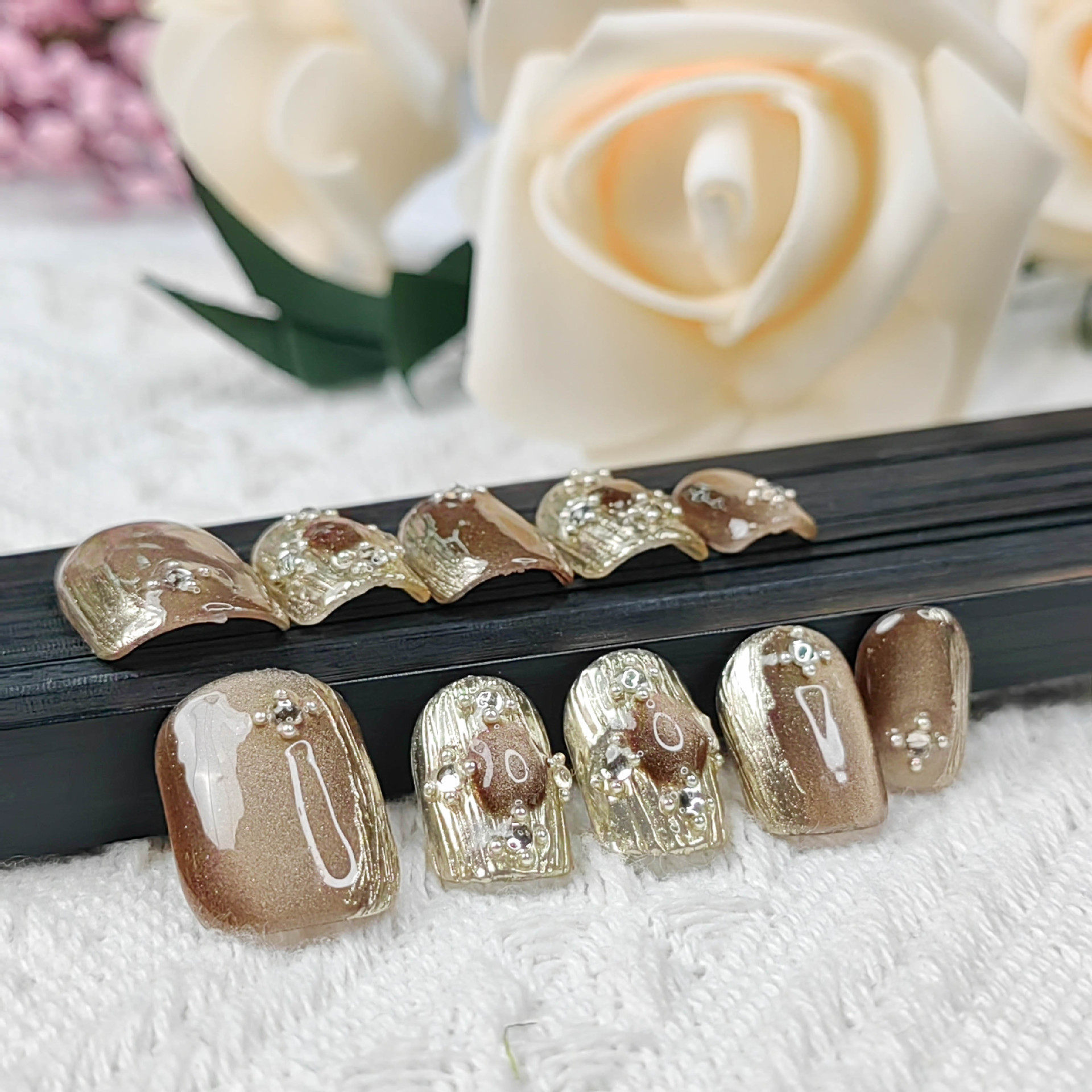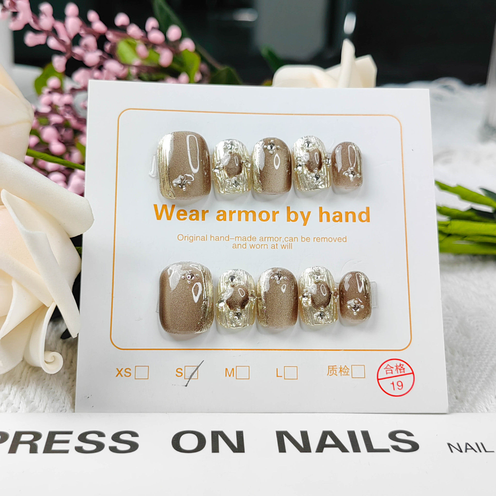 手作爆闪长猫眼美甲高级感手工甲片批发贴布契拉提指甲短款穿戴甲